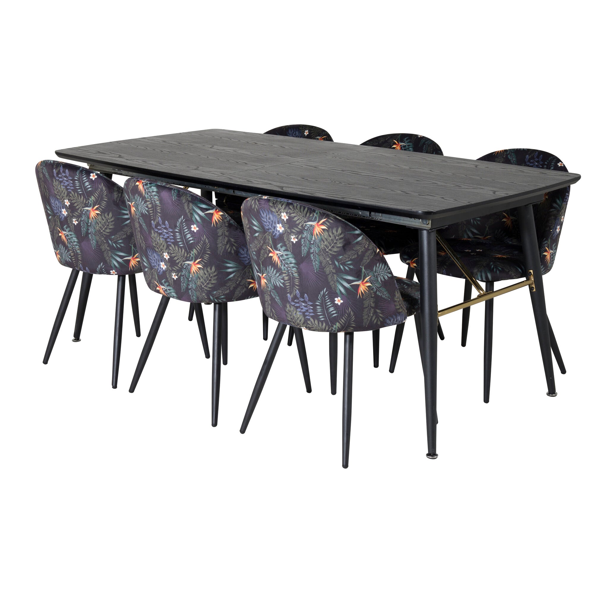 Jídelní stůl Dipp - 180*90 cm - Černá / Černá mosaz+Velvet Deluxe Jídelní židle - Černé nohy - Světle šedá látka_6