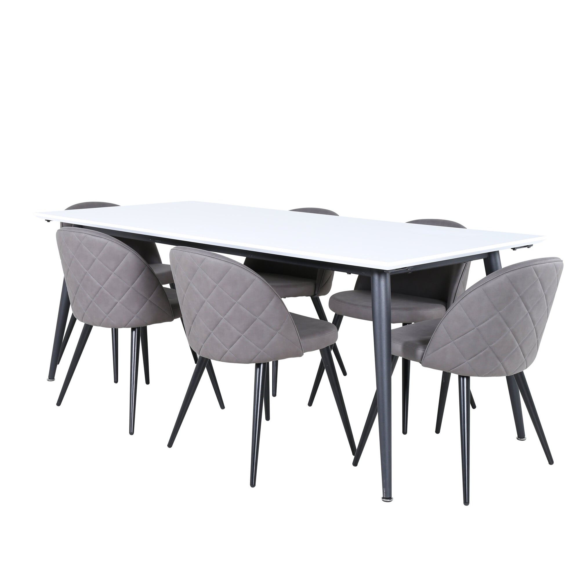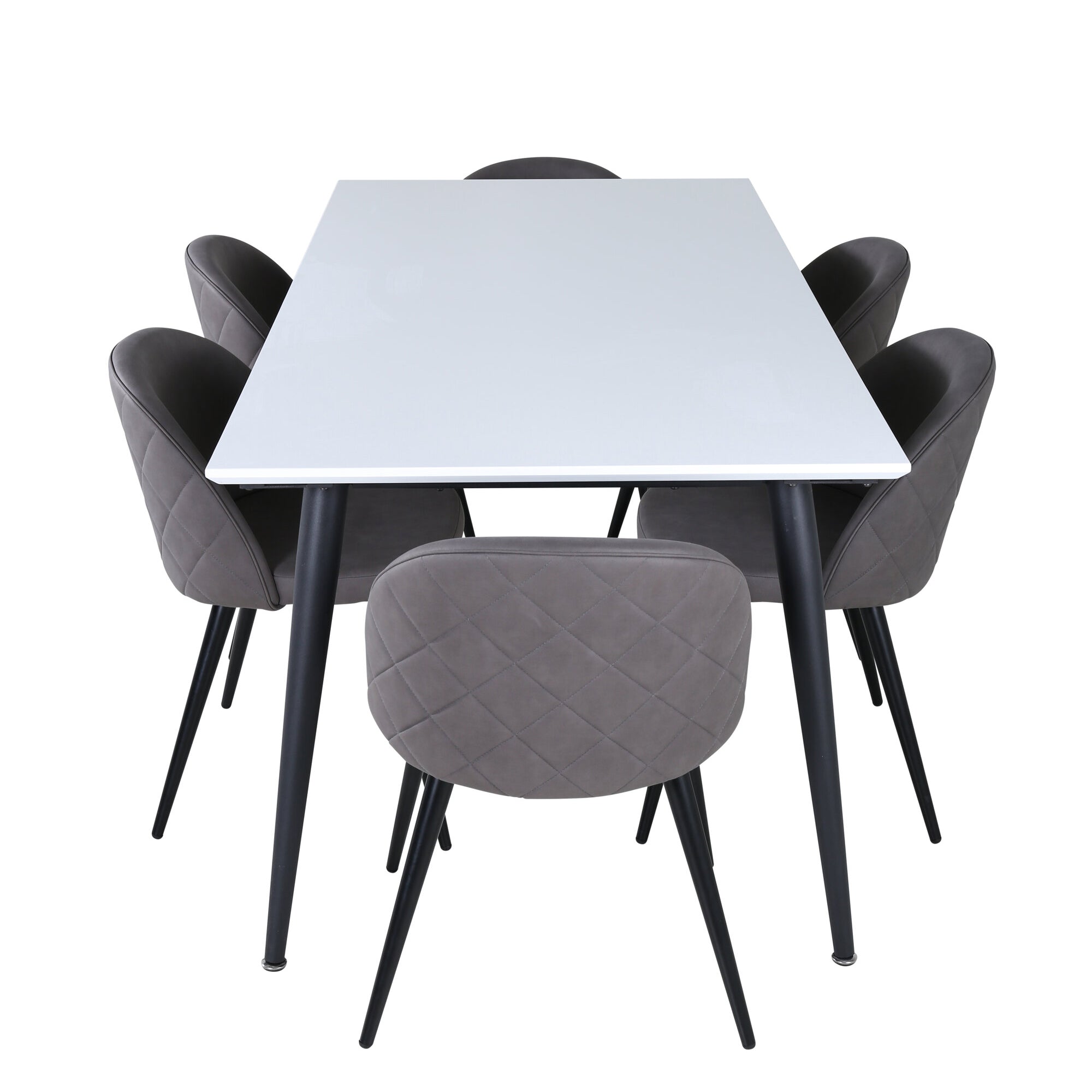 Jídelní stůl Jimmy – černá/bílá židle HPL+sametové stehy – černá/šedá mikrovlákno_6