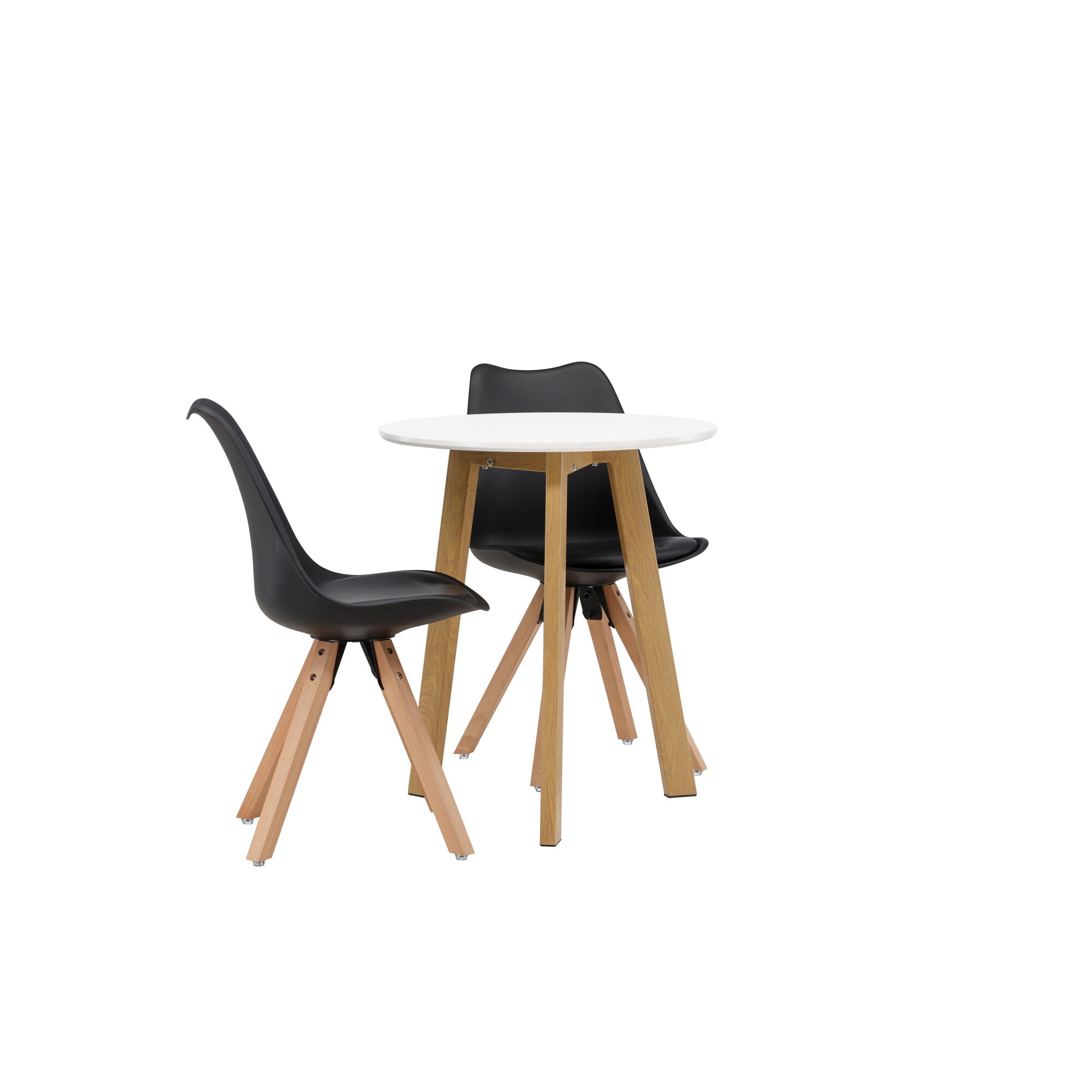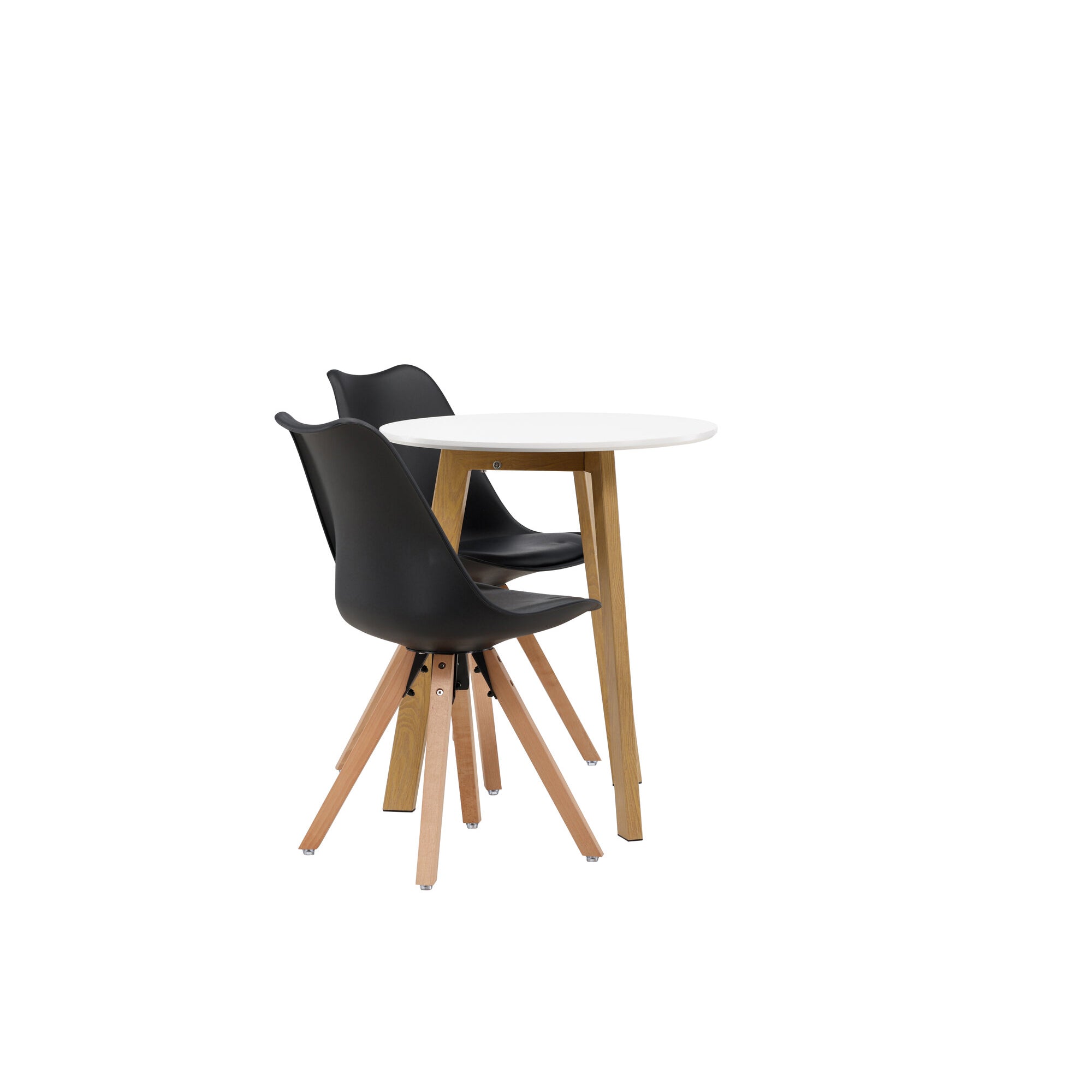 Leonora Jídelní stůl φ65 - Oaklook / Bílá MDF + Zeno Jídelní židle - Přírodní Woodlook / Černá PP _2