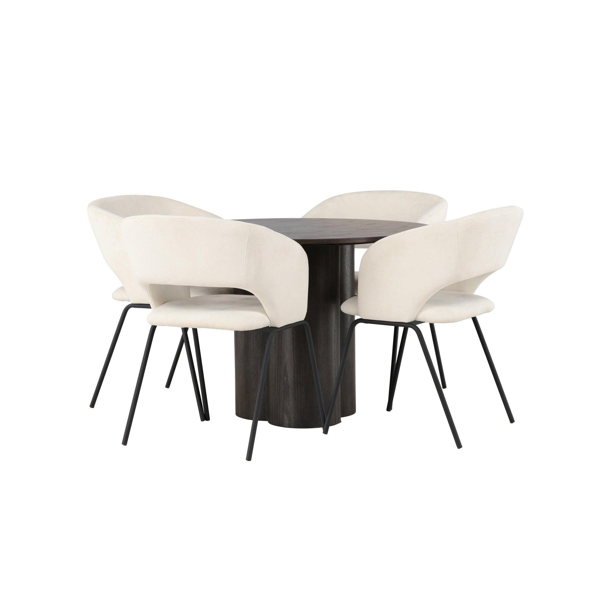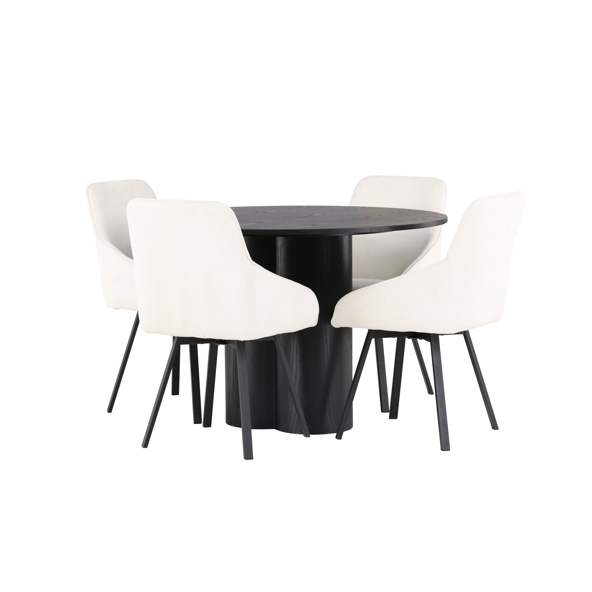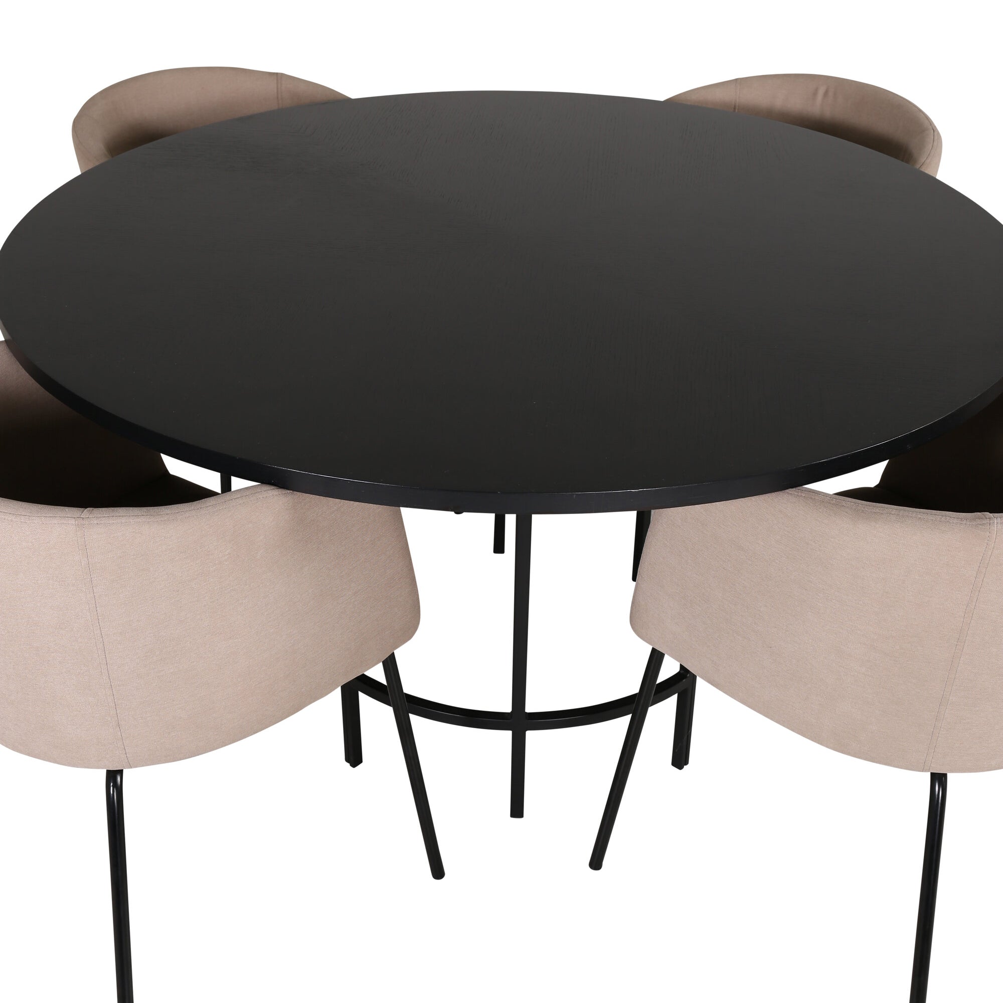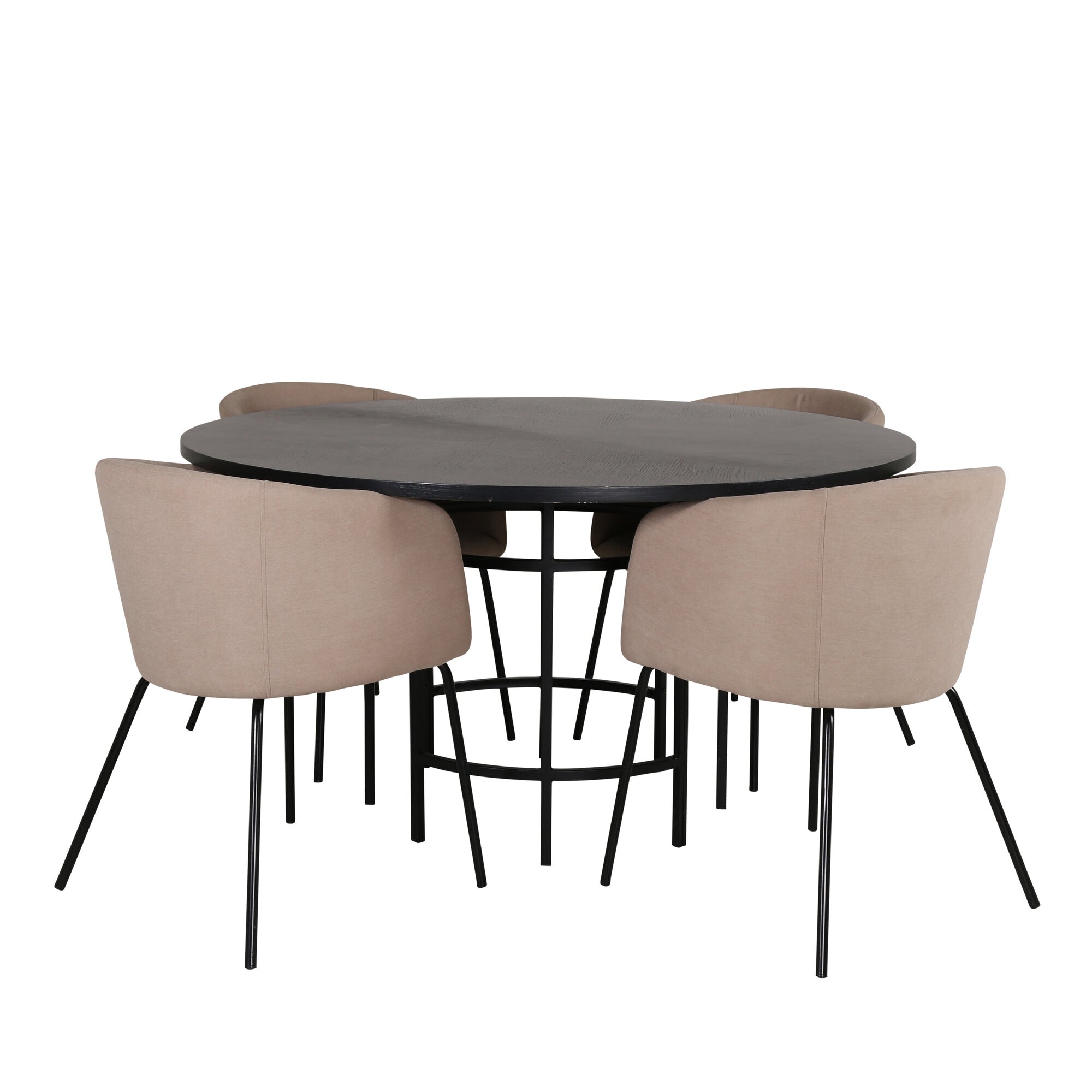 Copenhagen - Jídelní stůl kulatý - Černá / Černá + židle Berit - Černá / Béžová látka (polyesterové prádlo)_4