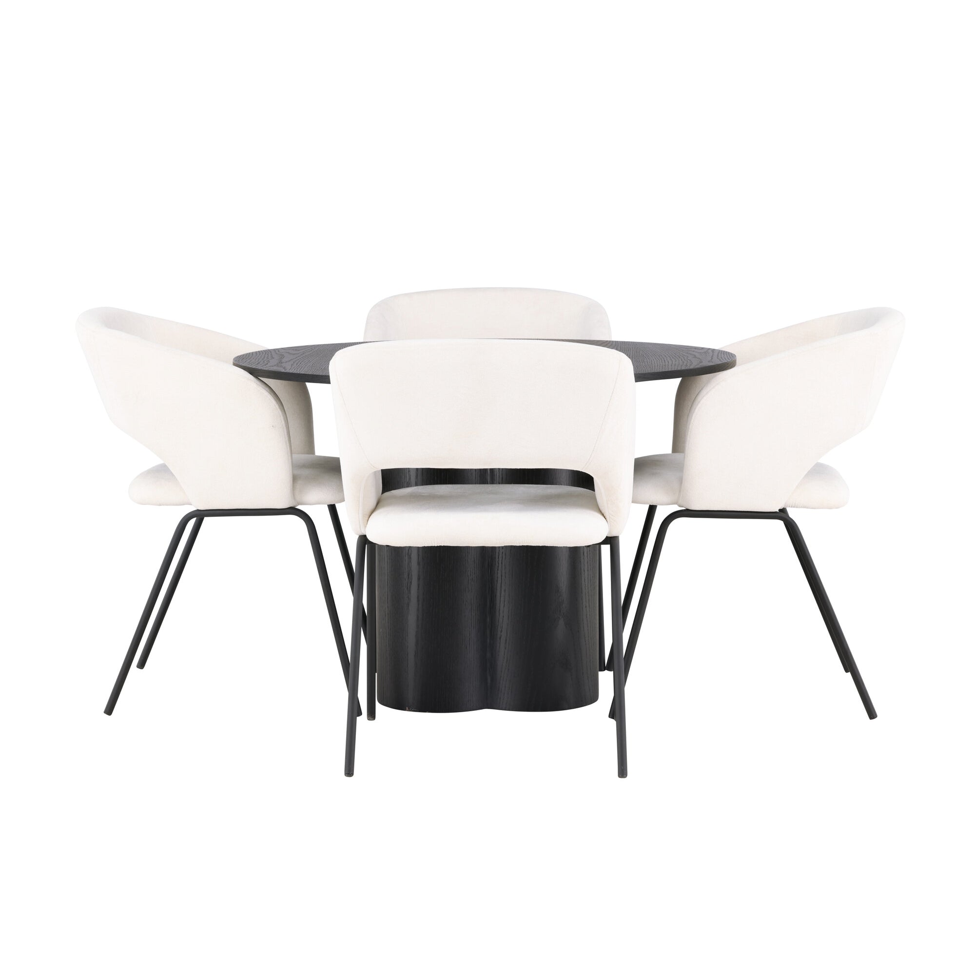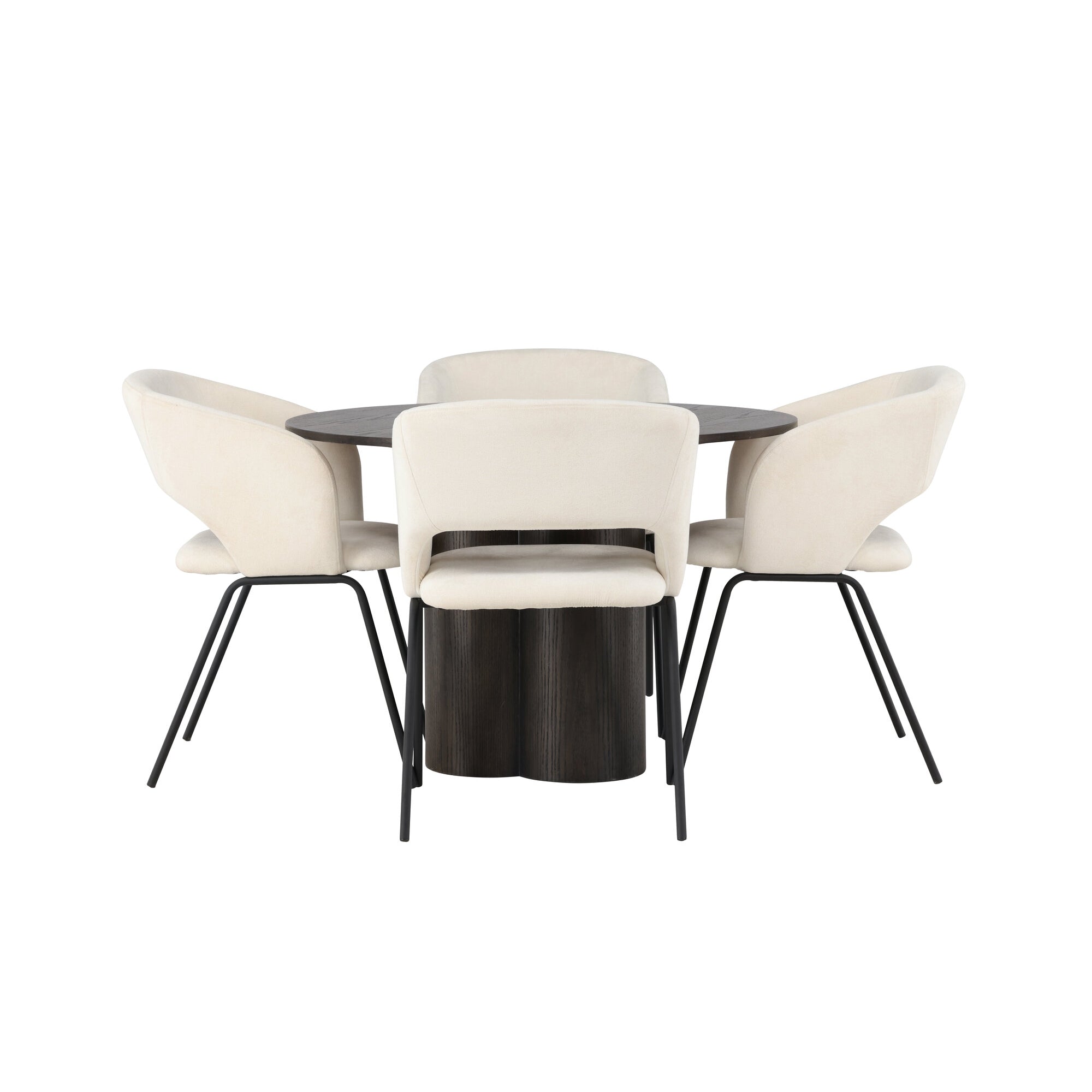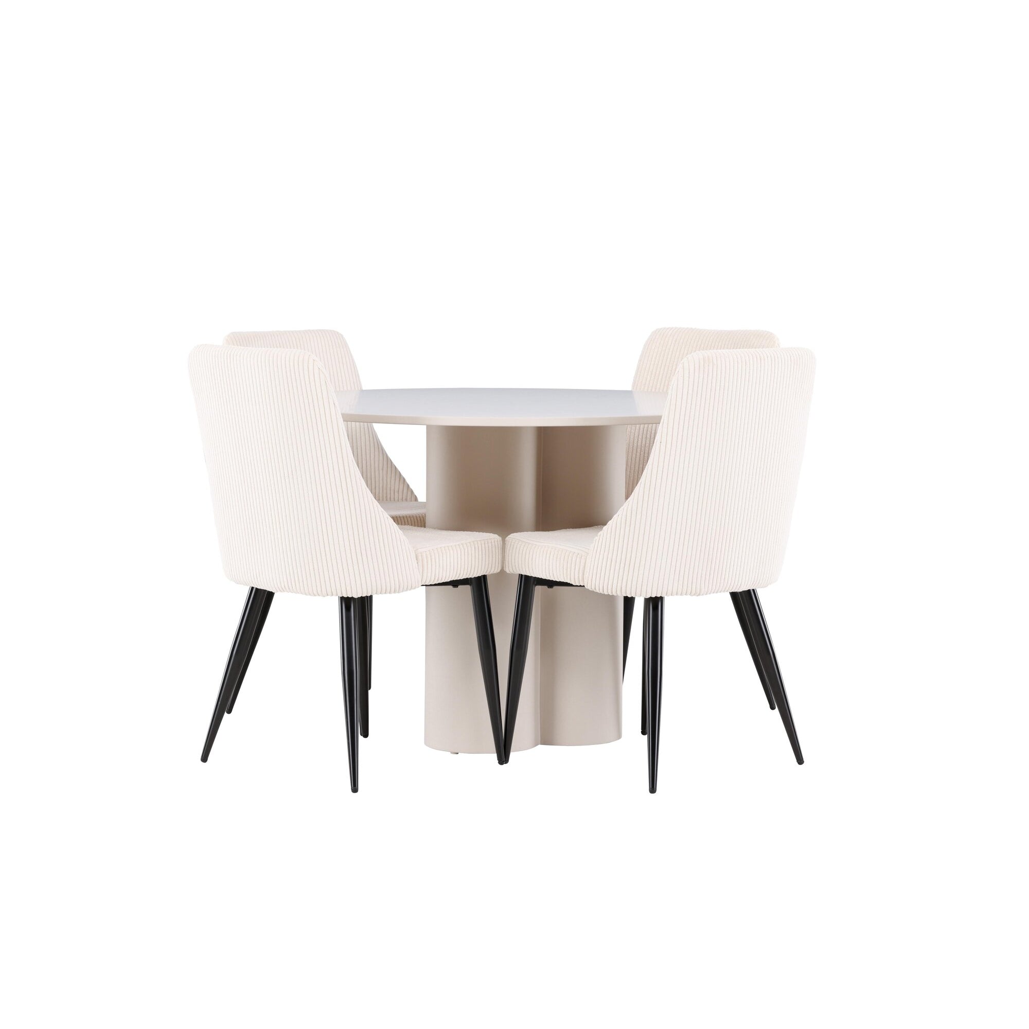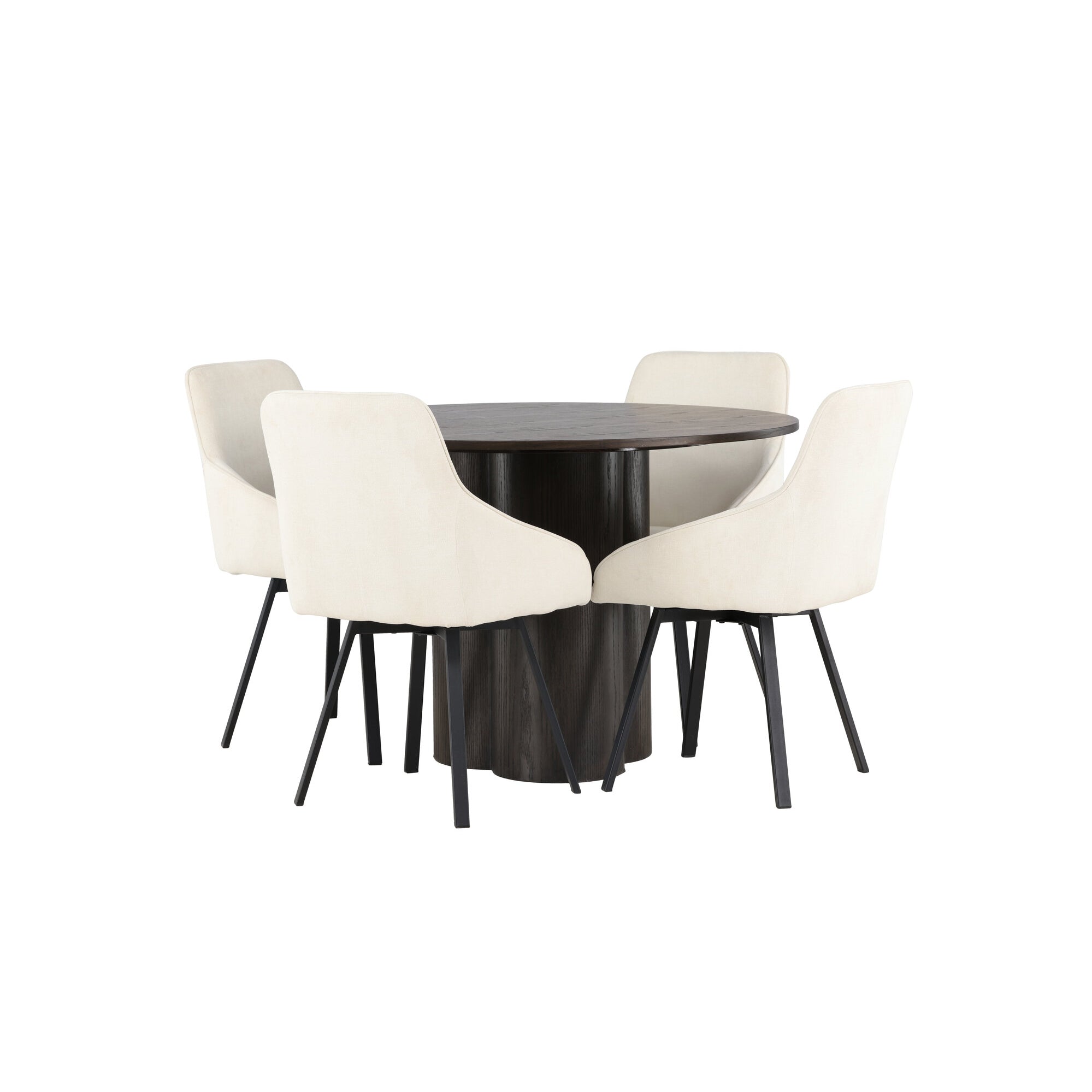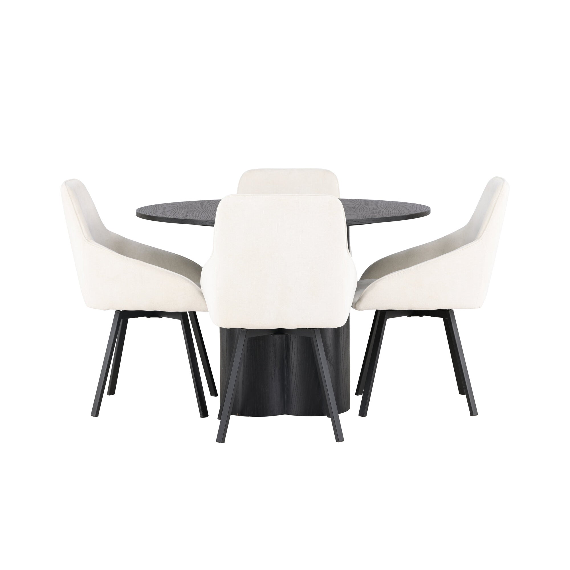 Copenhagen - Jídelní stůl kulatý - Černá / Černá + židle Berit - Černá / Béžová látka (polyesterové prádlo)_4