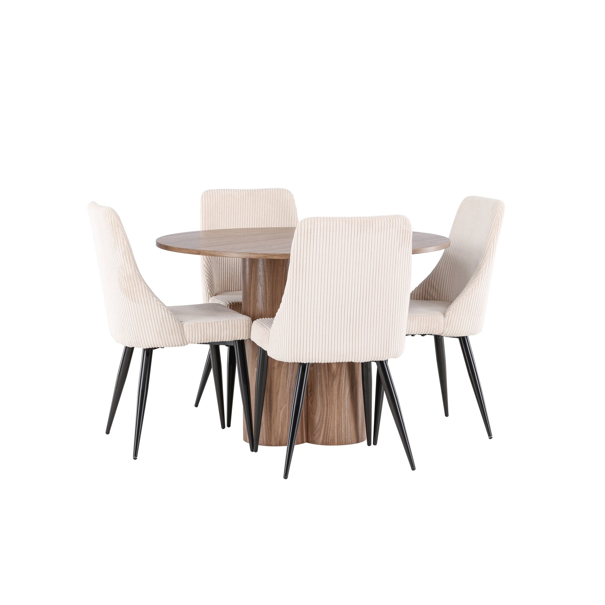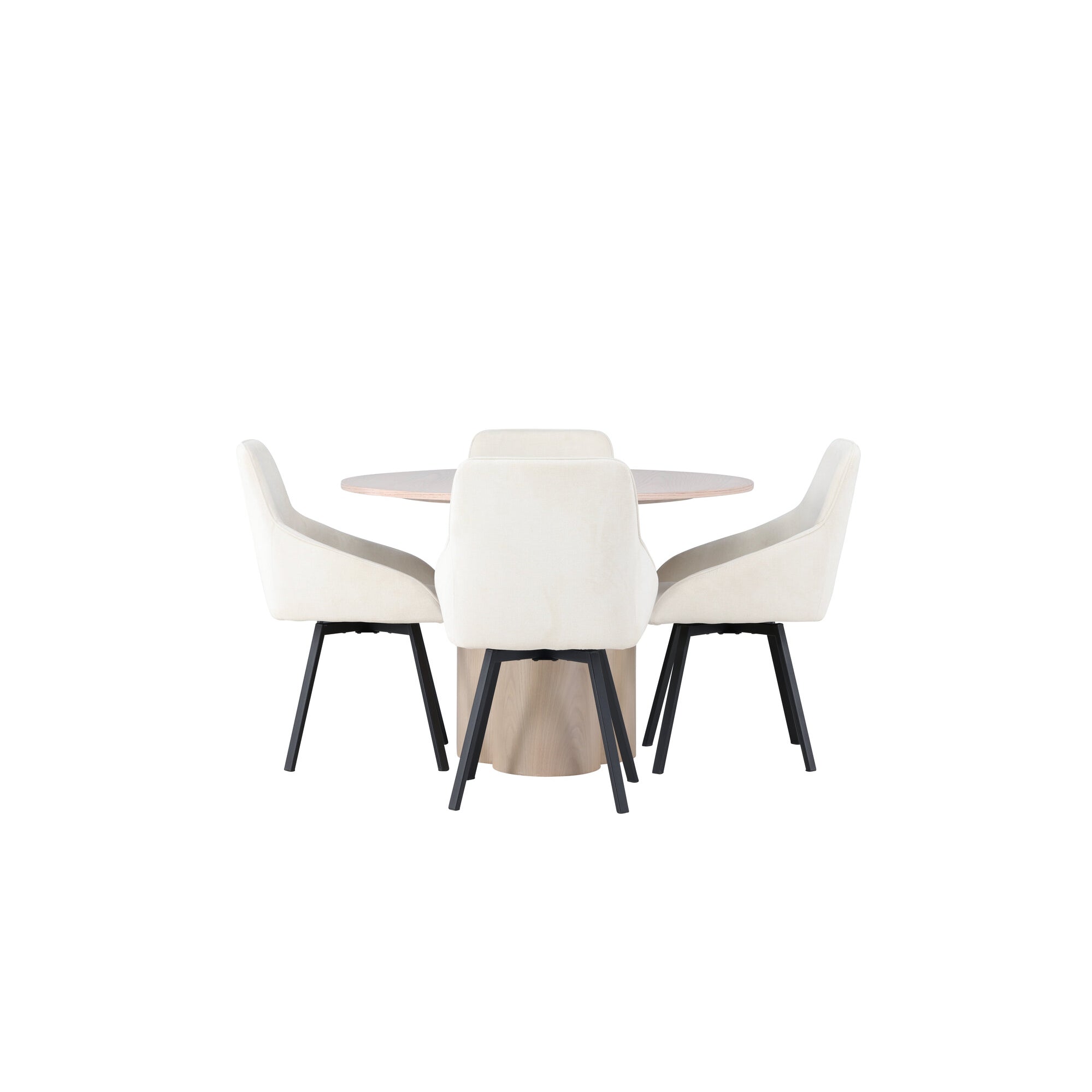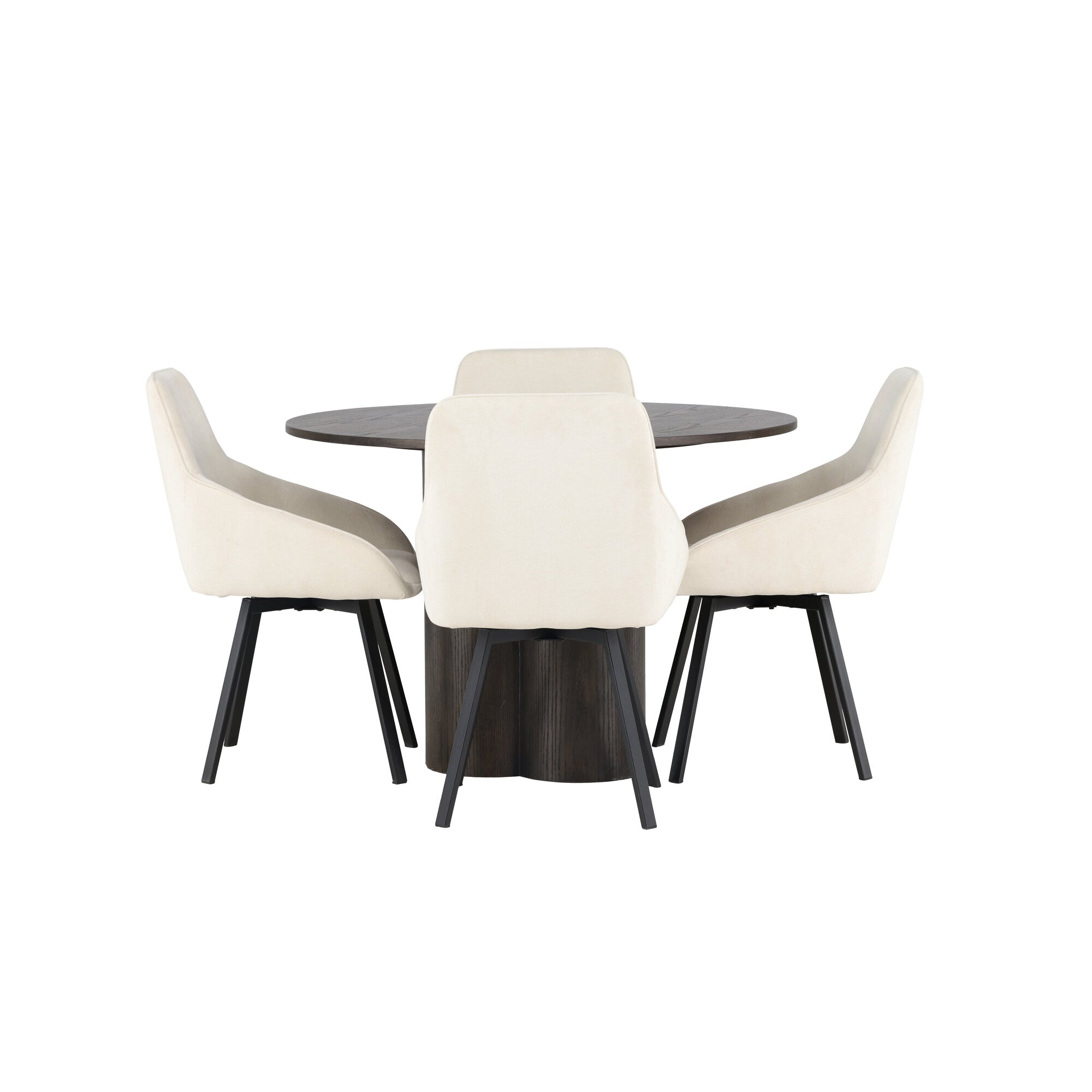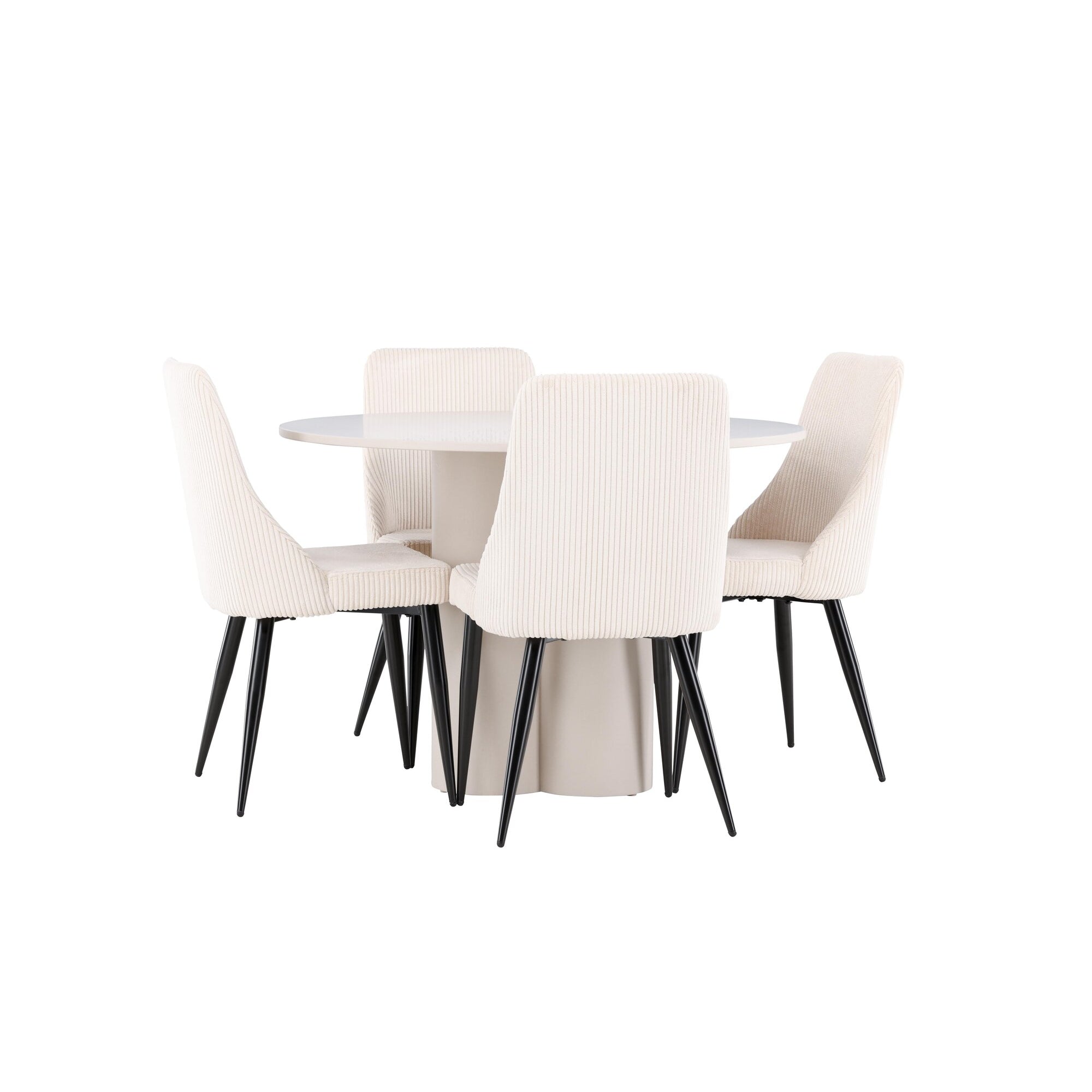 Copenhagen - Jídelní stůl kulatý - Černá / Černá + židle Berit - Černá / Béžová látka (polyesterové prádlo)_4