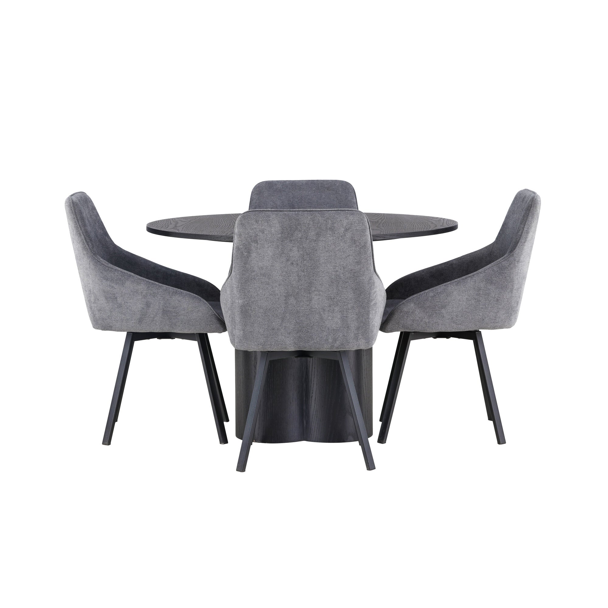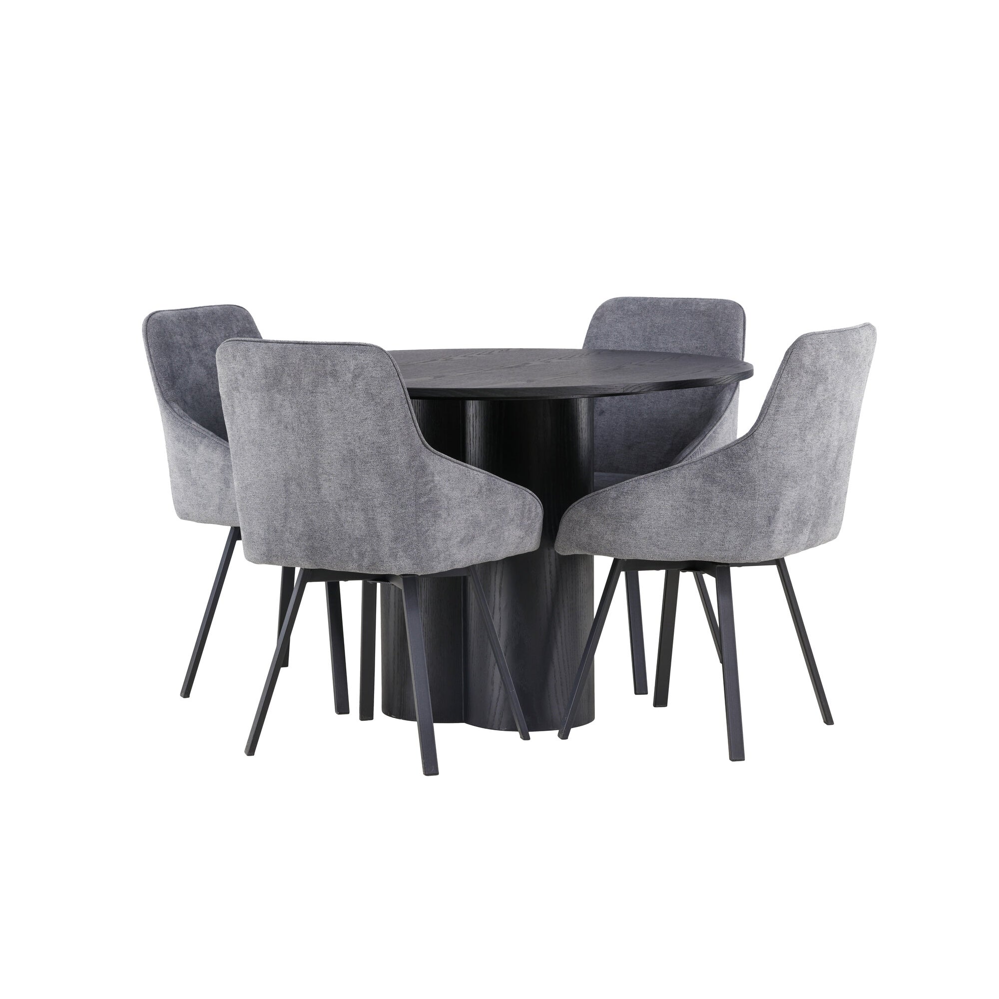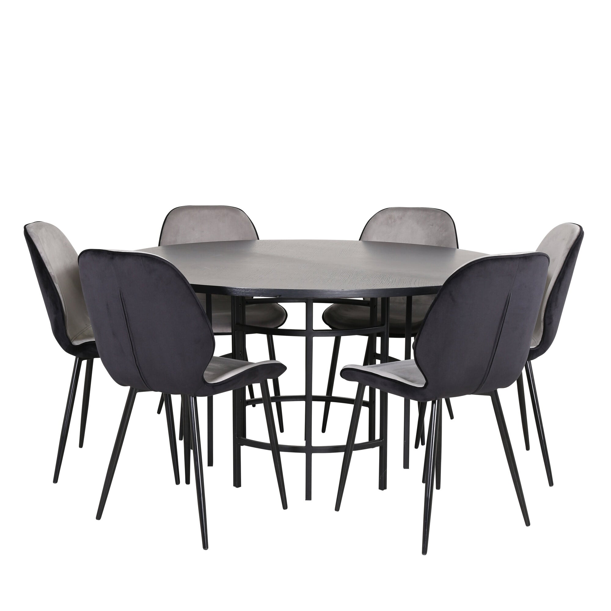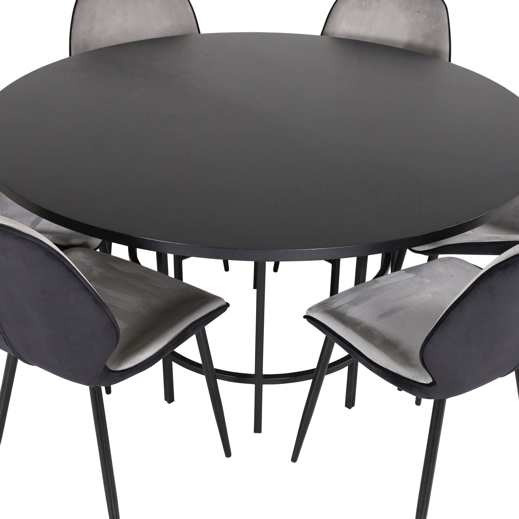 Copenhagen - Jídelní stůl kulatý - Černá / Černá + židle Emma - Černá / Černá a světle šedá Černý samet vzadu Šedý samet vpředu_6