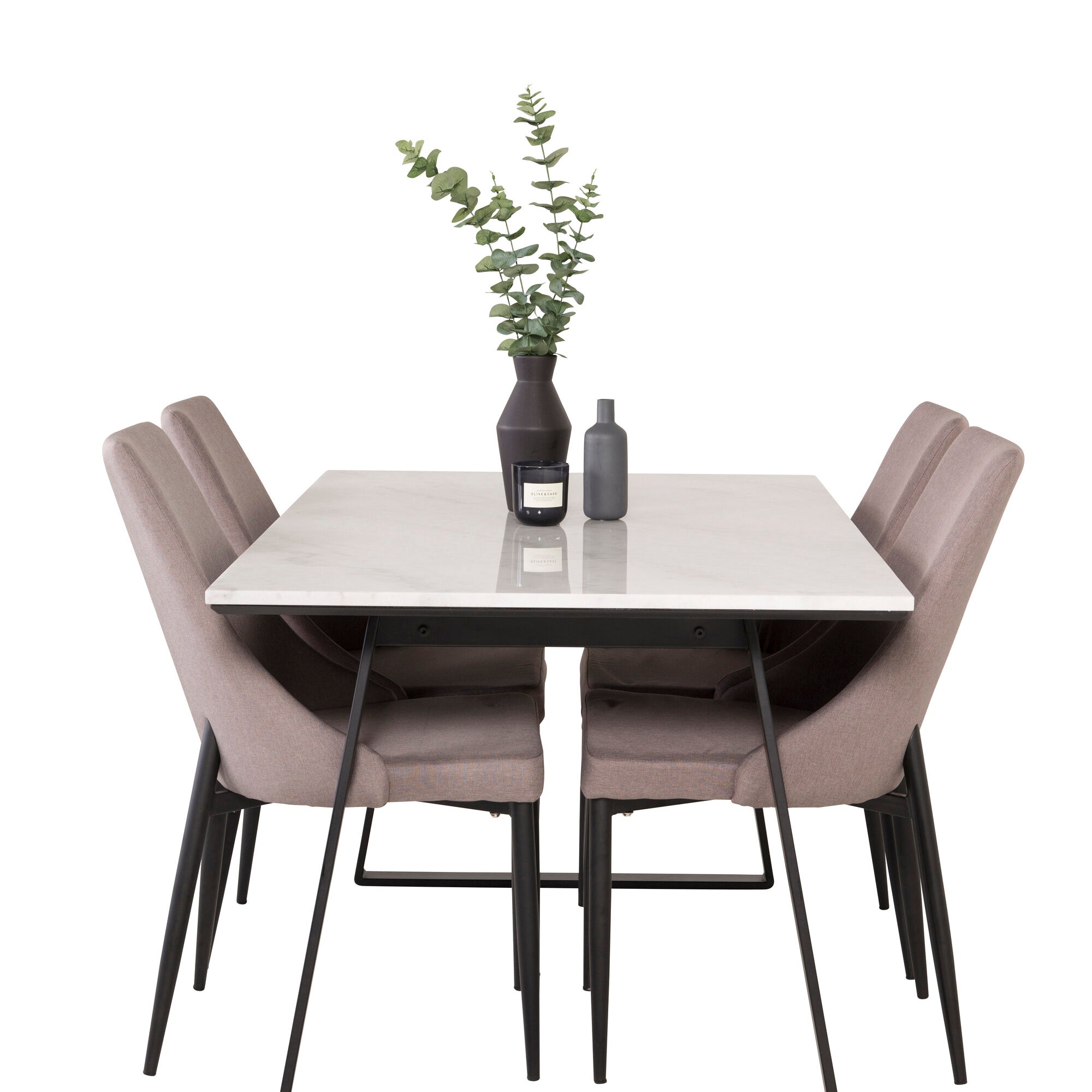 Jídelní stůl Olivia - Mocca / Mocca Dýha + Denní jídelní židle - Matná černá / Bílé prádlo _4