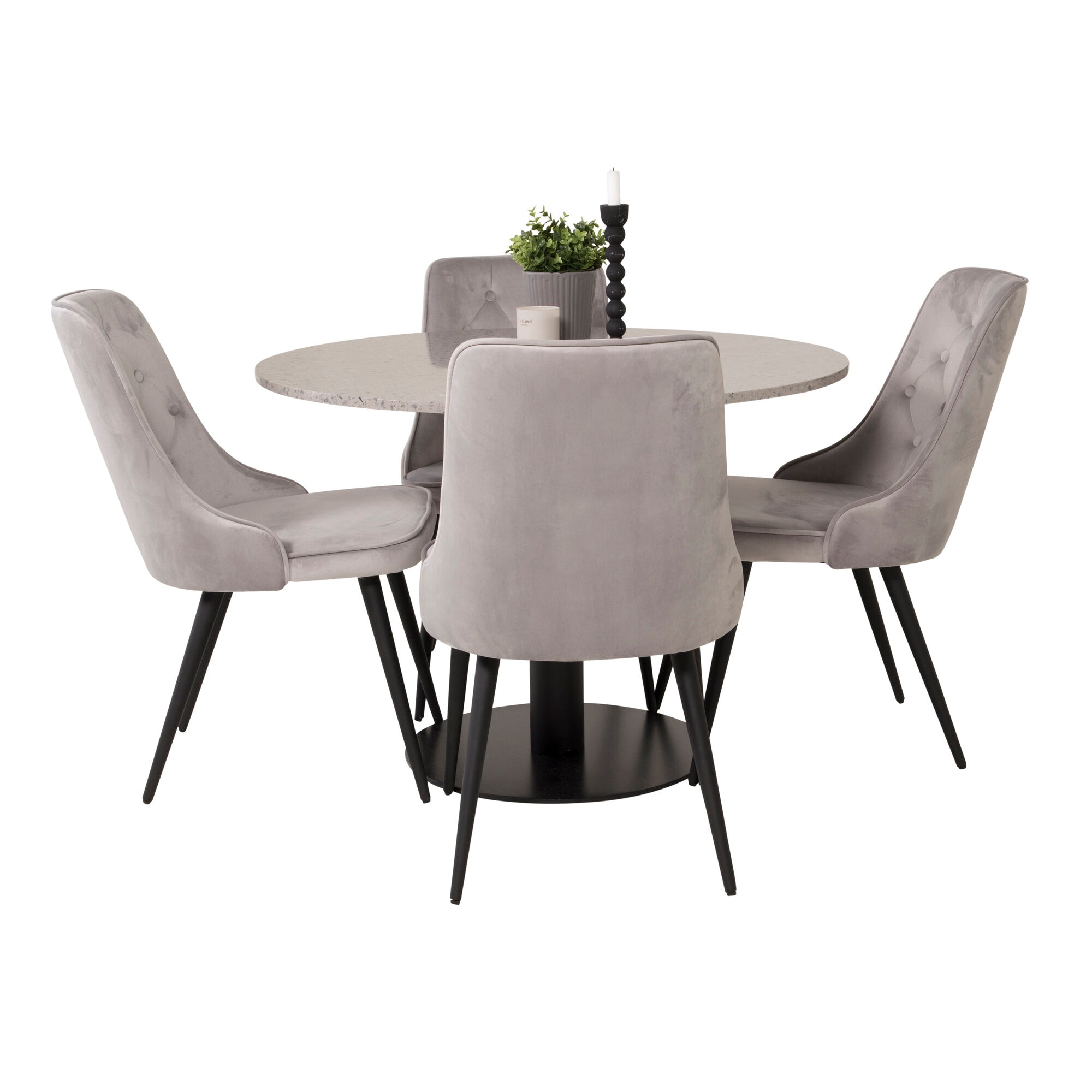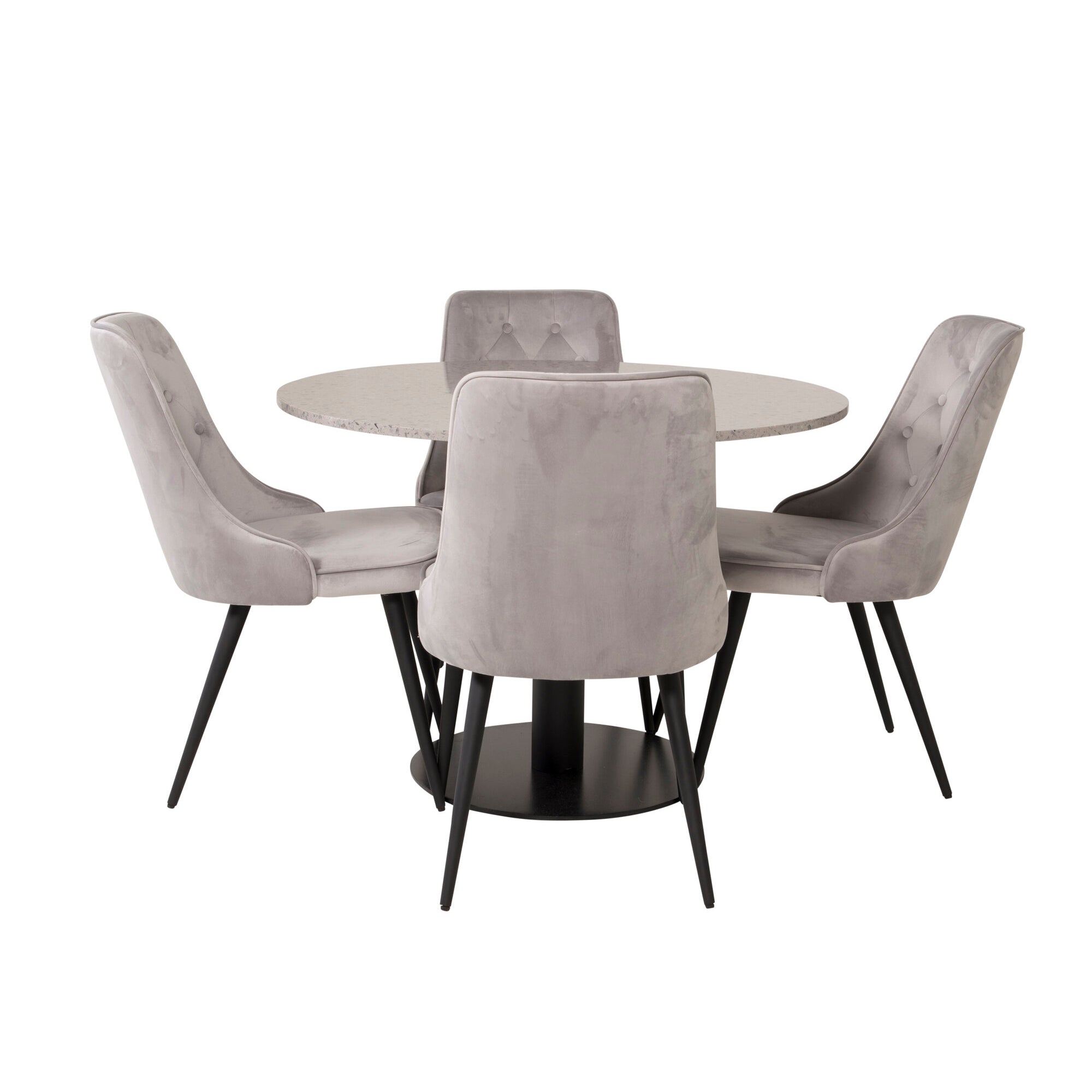 Razzia Jídelní stůl 106 cm - Šedá Terazzo / Černá - Velvet Deluxe Jídelní židle - Černé nohy / Světle Šedý samet 4