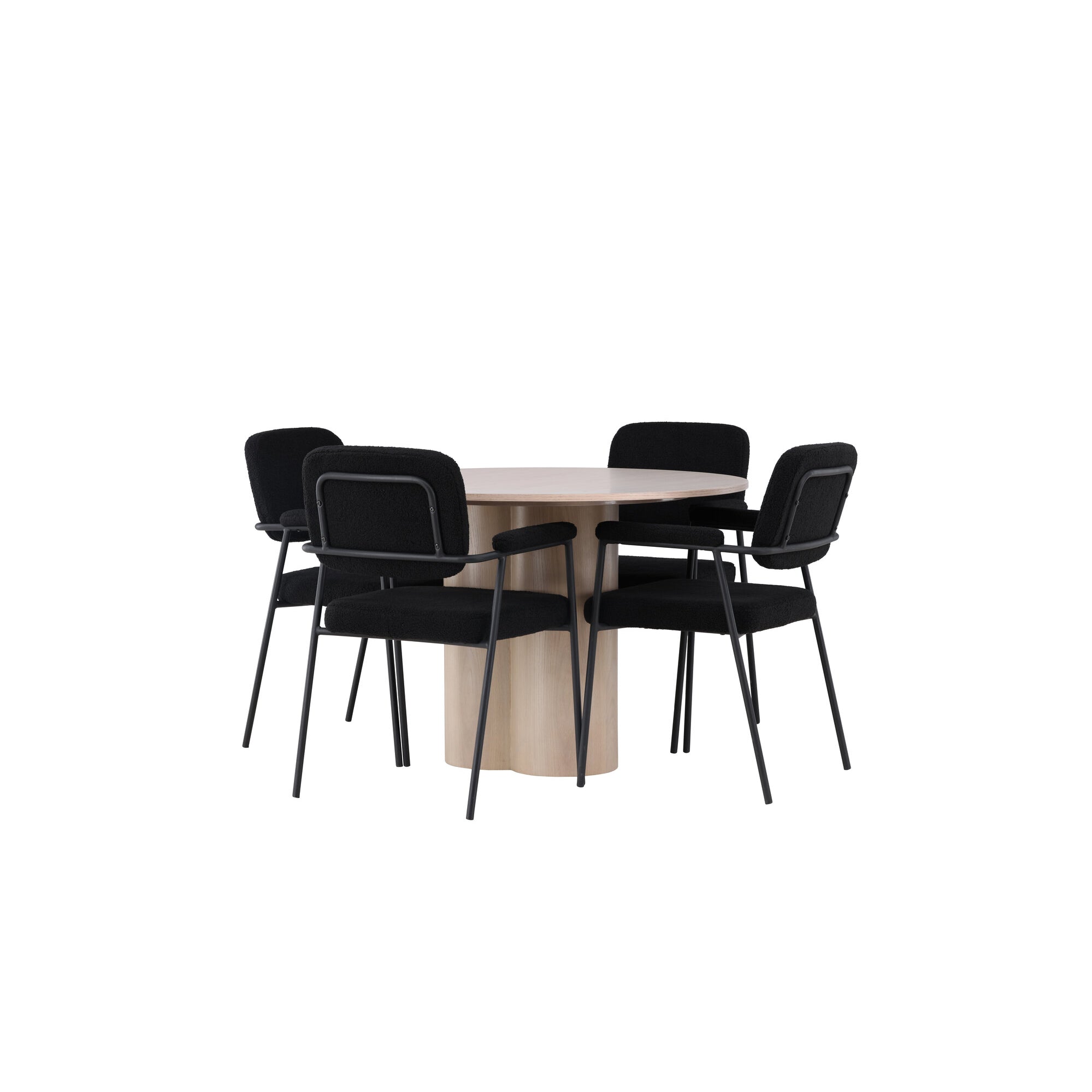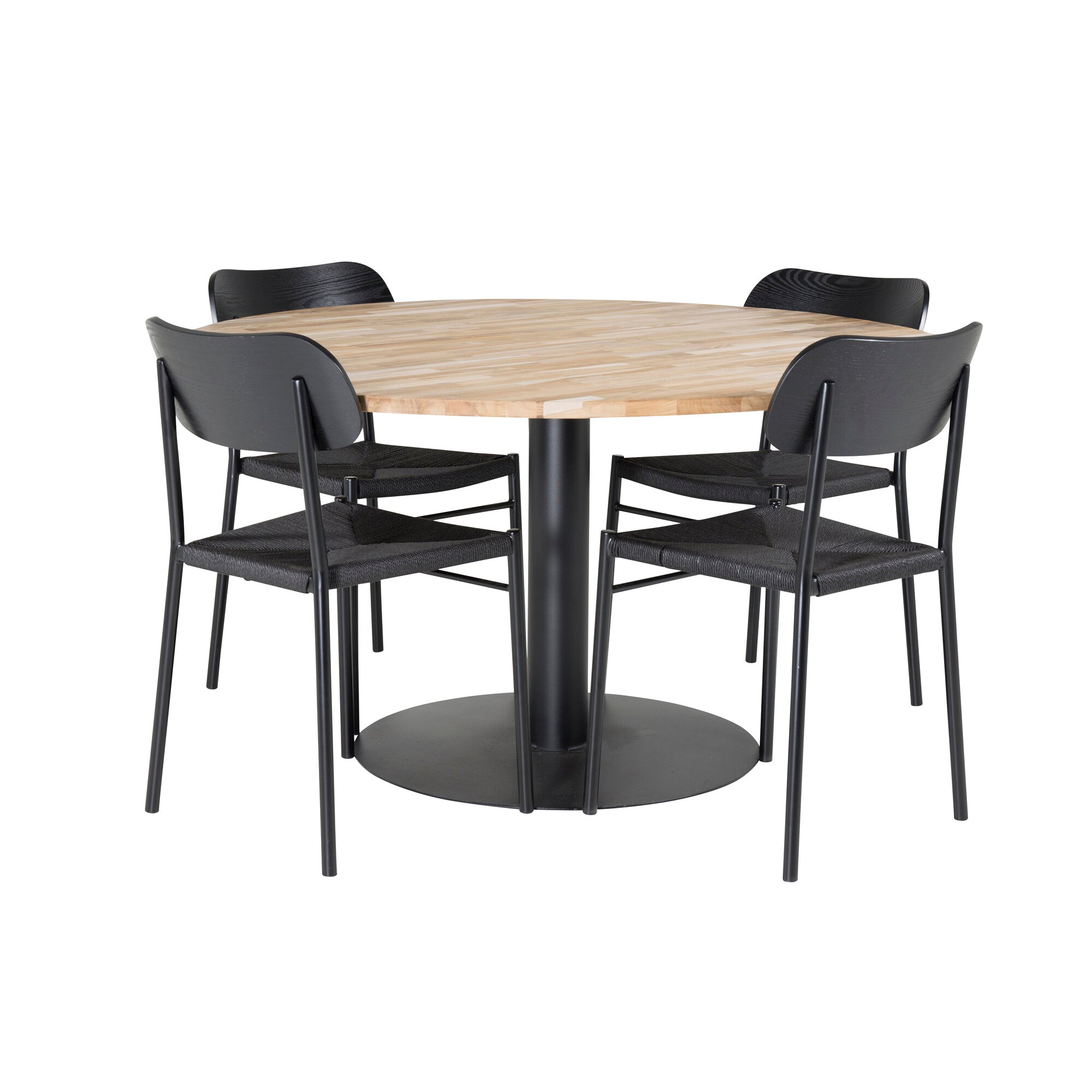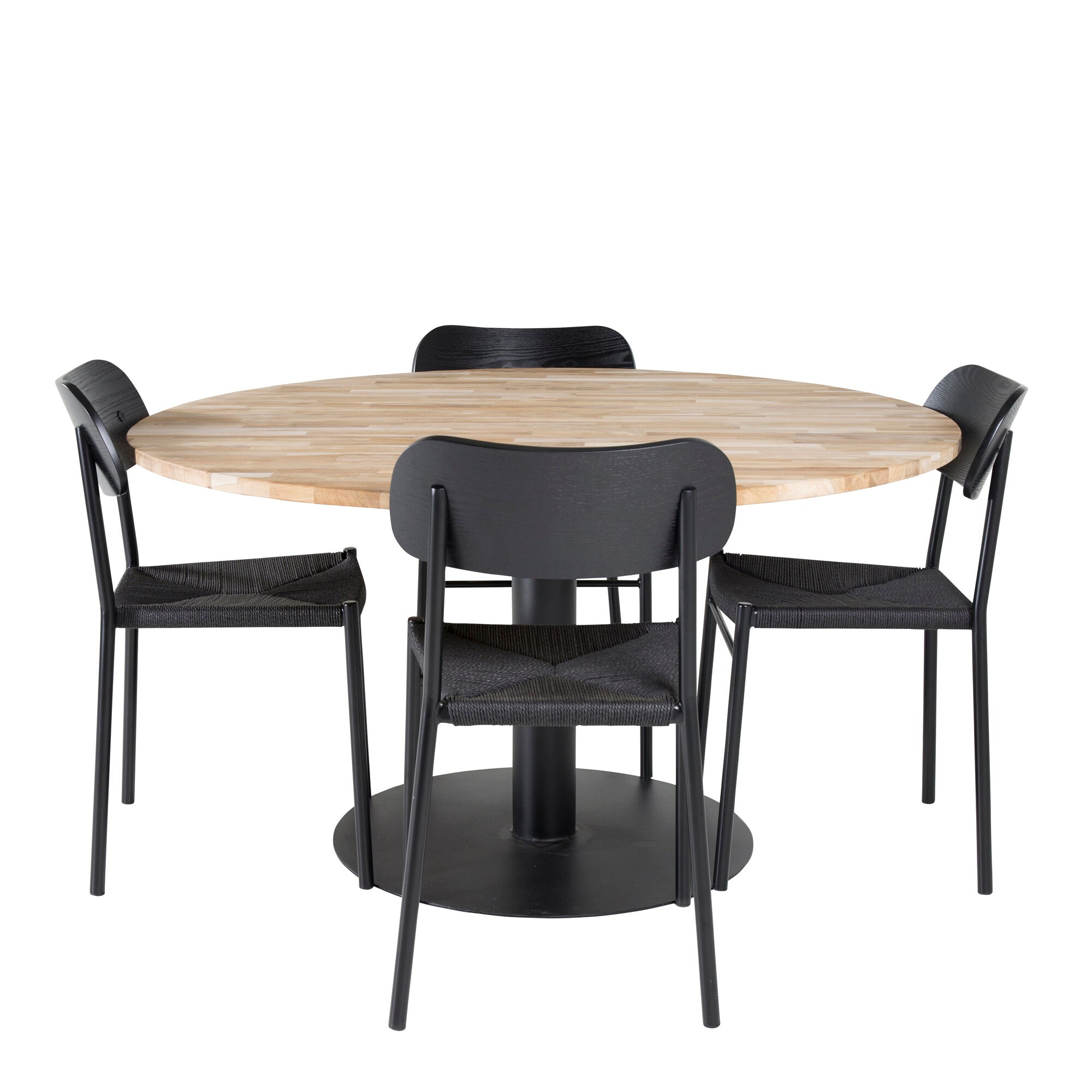 Kruhový stůl Cirebon - 140 cm - Teak / Černá + Jídelní židle Polly - Černá / Černá _4