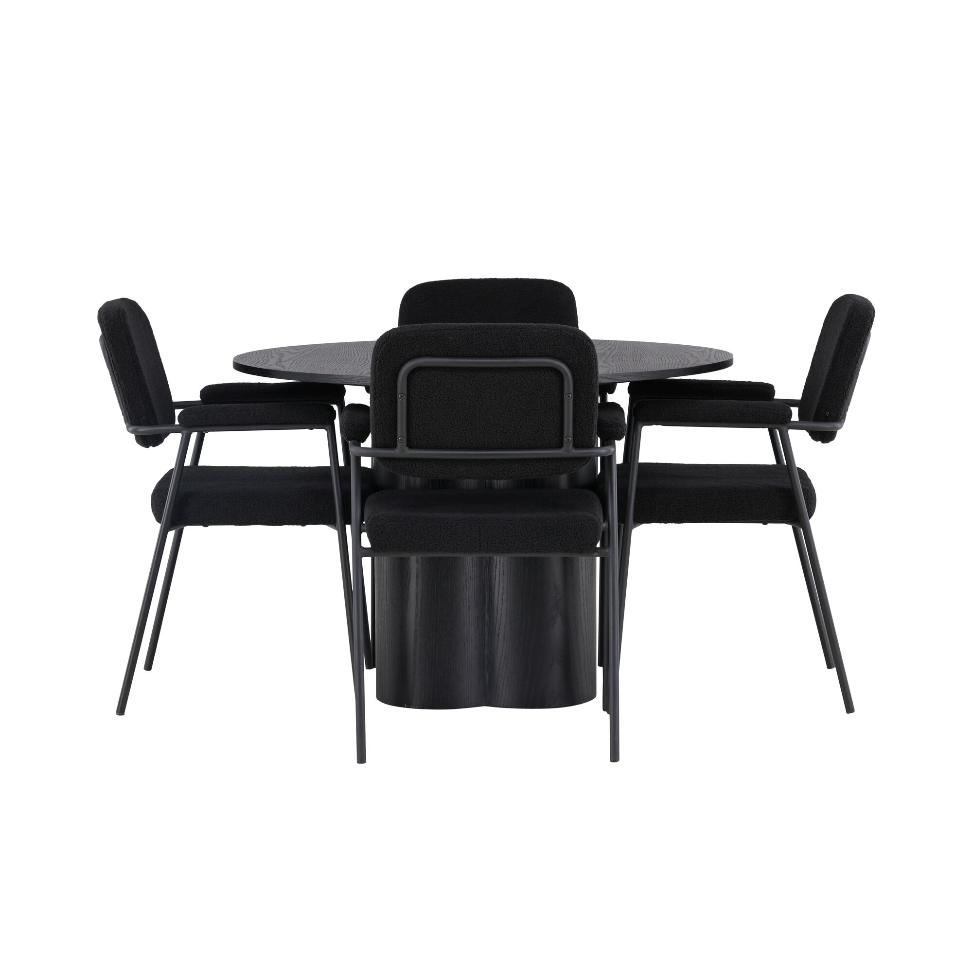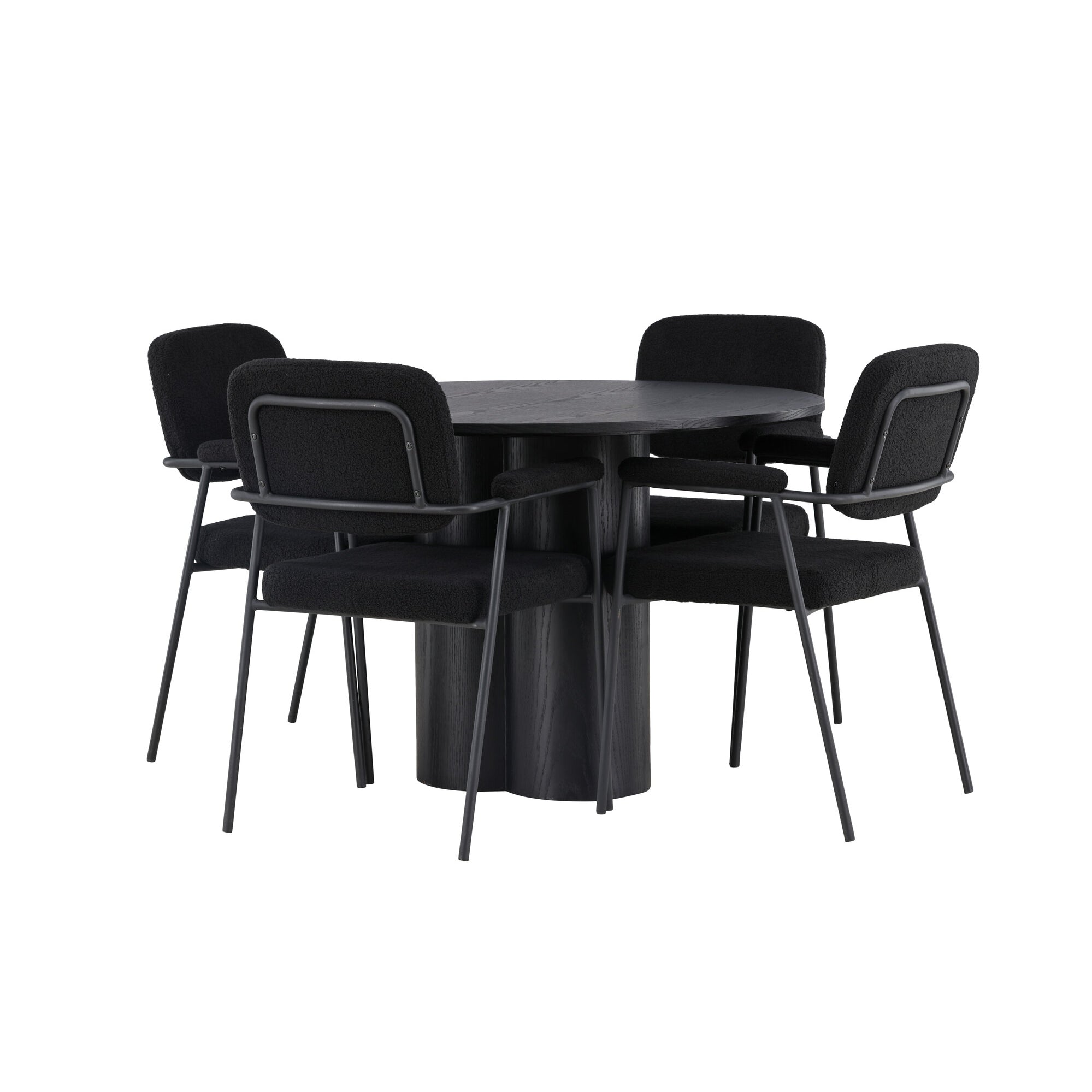 Kulatý jídelní stůl Marbs - Černá / Černá + Jídelní židle Polly - Černá / Černá _4