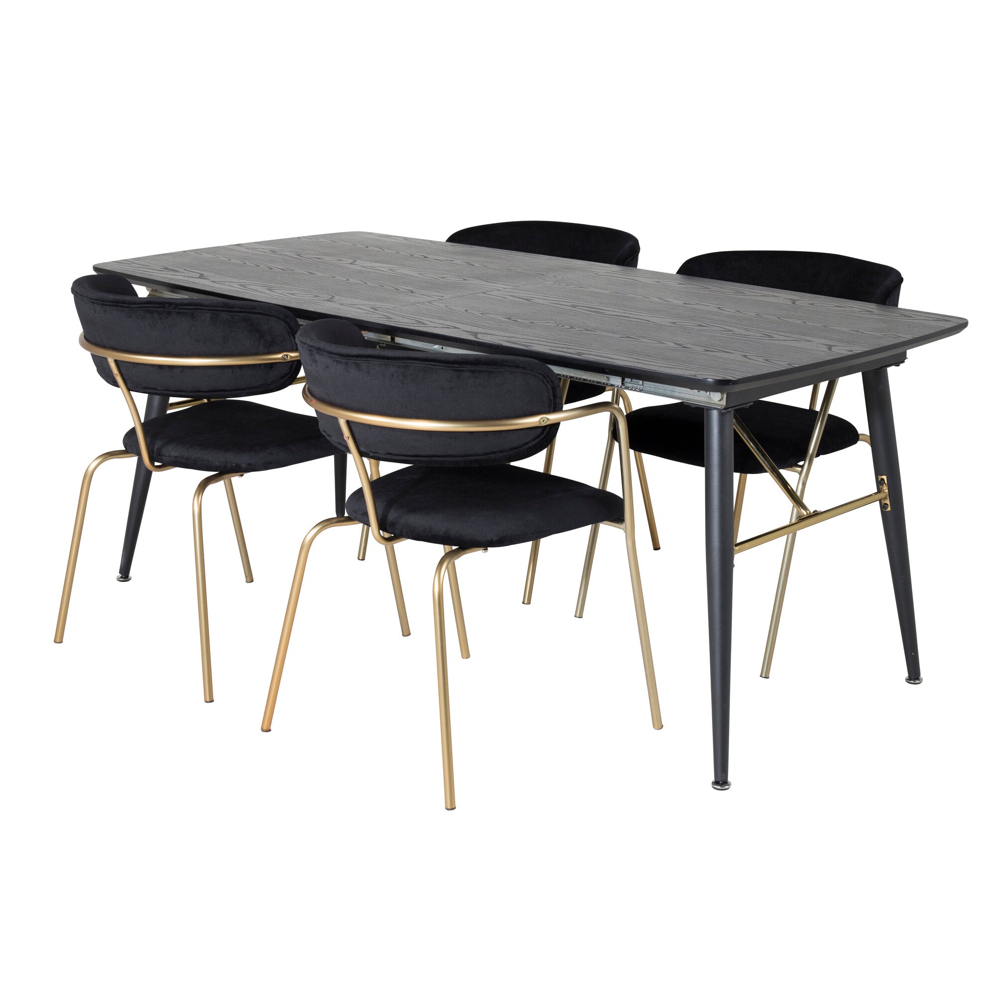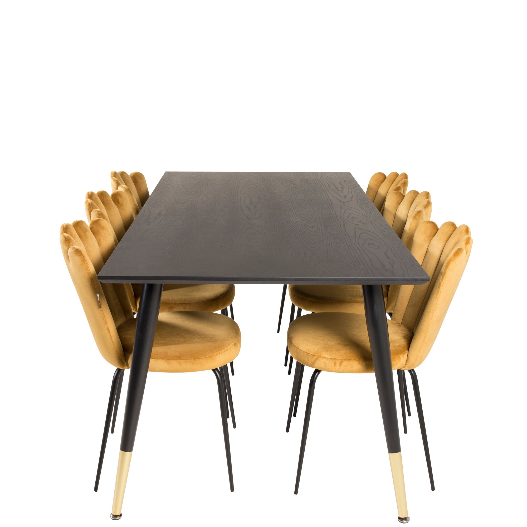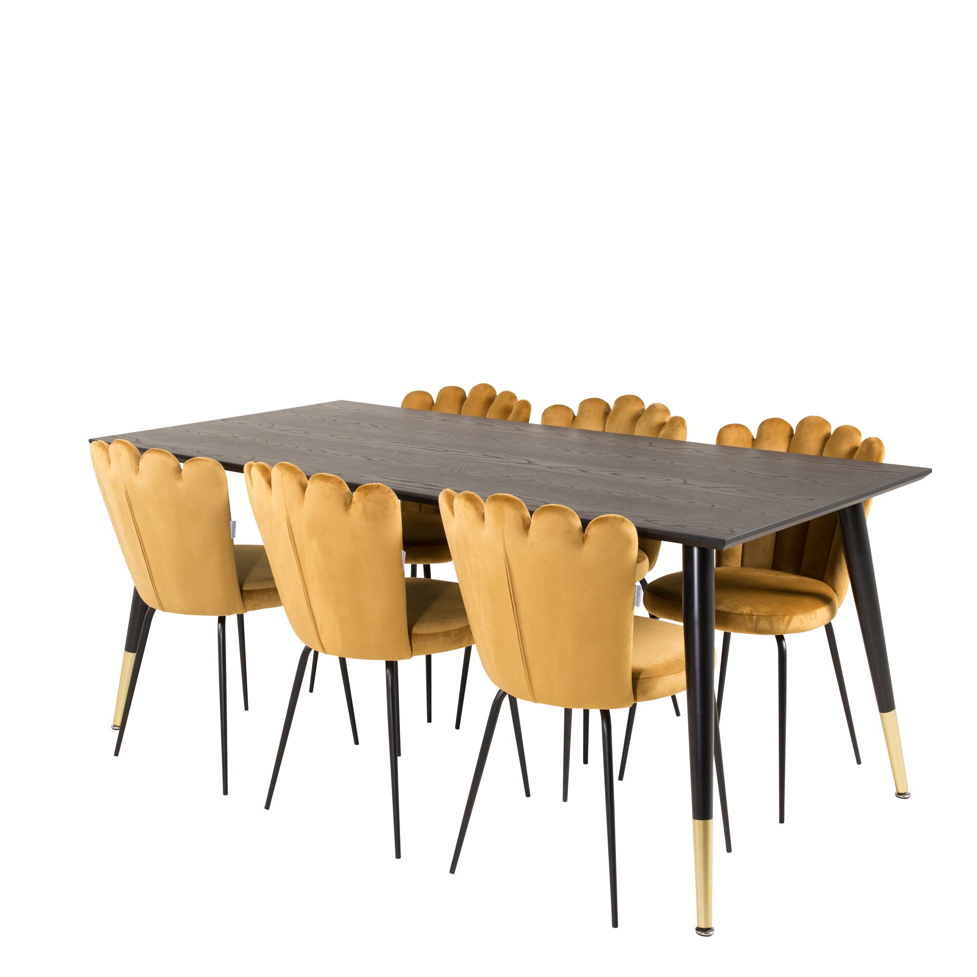 Dipp Jídelní stůl - 180*90cm - Černá dýha / černé nohy s mosazným dipp + Limhamn Light - Židle - Gold Velvet_6
