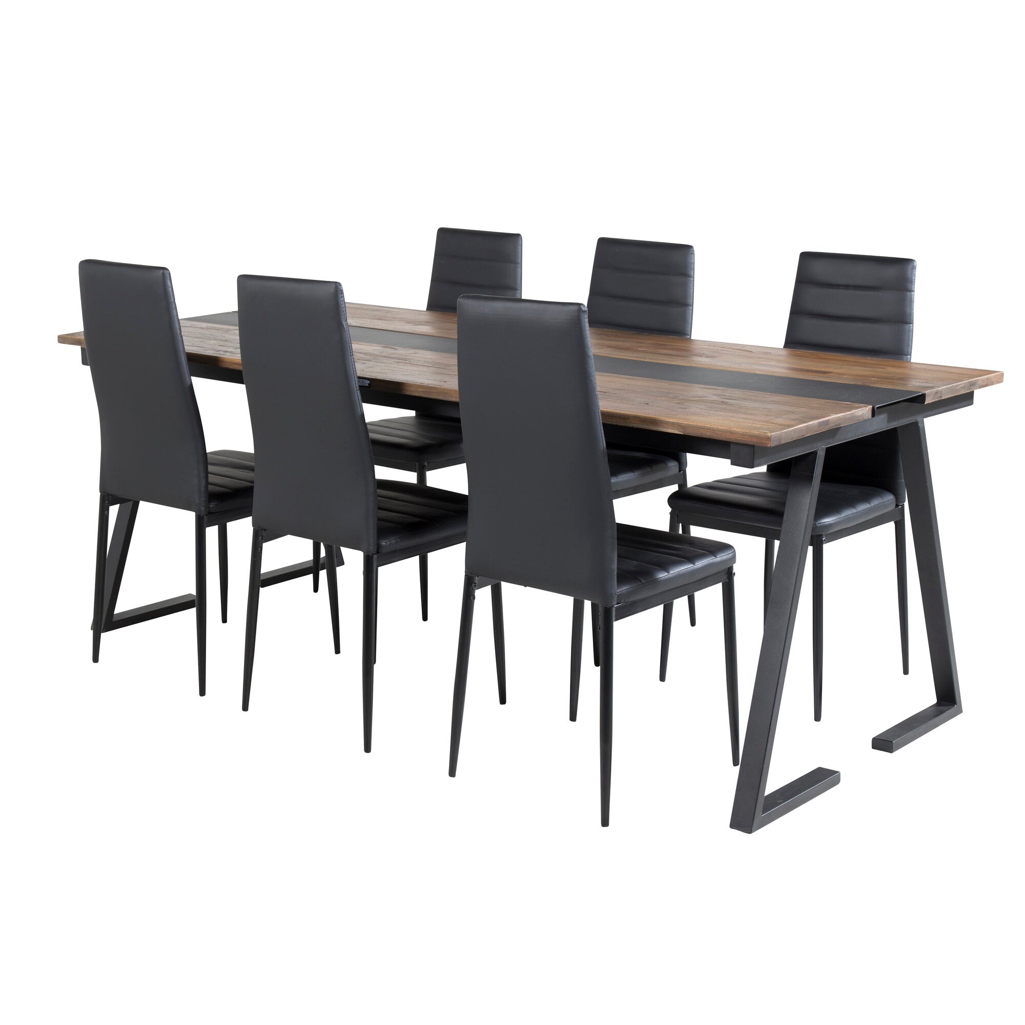 Jídelní stůl v Jakartě. 200*90*H75 - Tmavý týk / Černá + Slim jídelní židle s vysokým opěradlem - Černé nohy - Černá PU_6