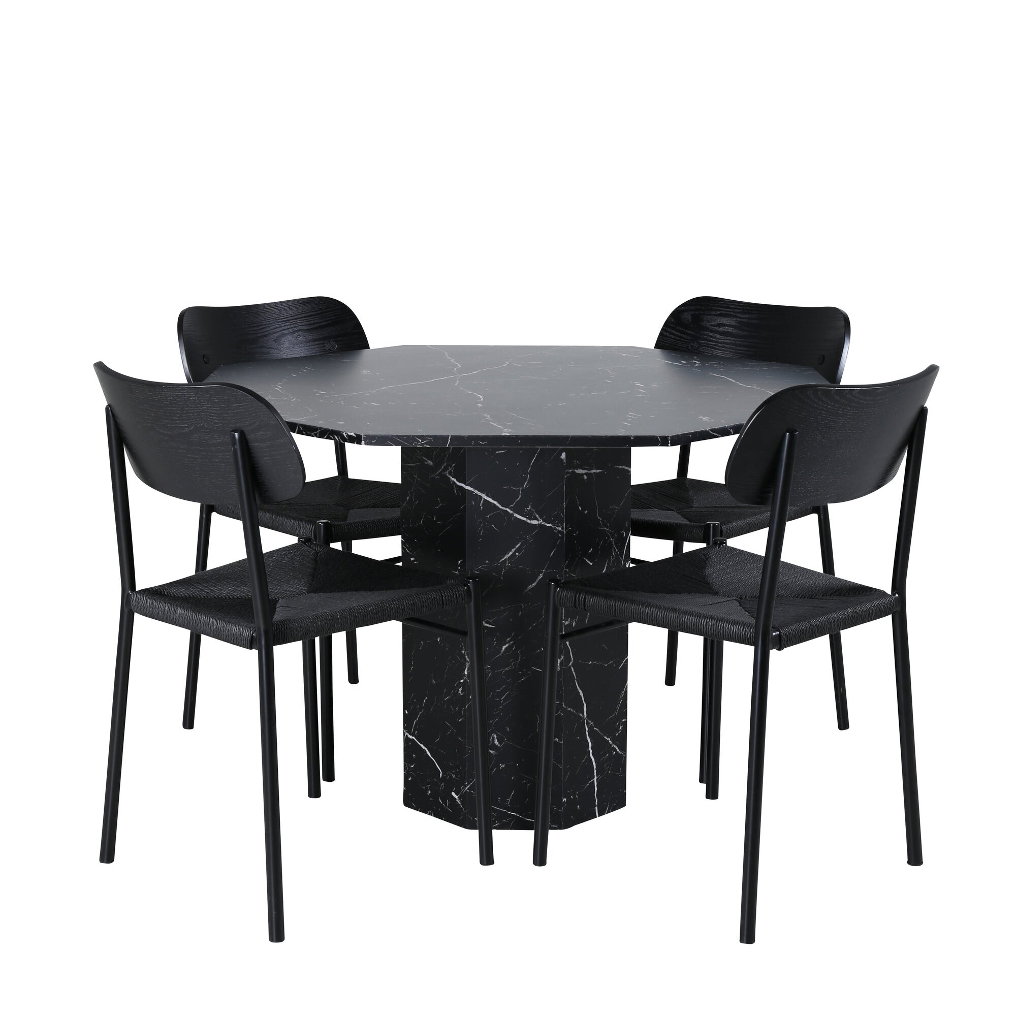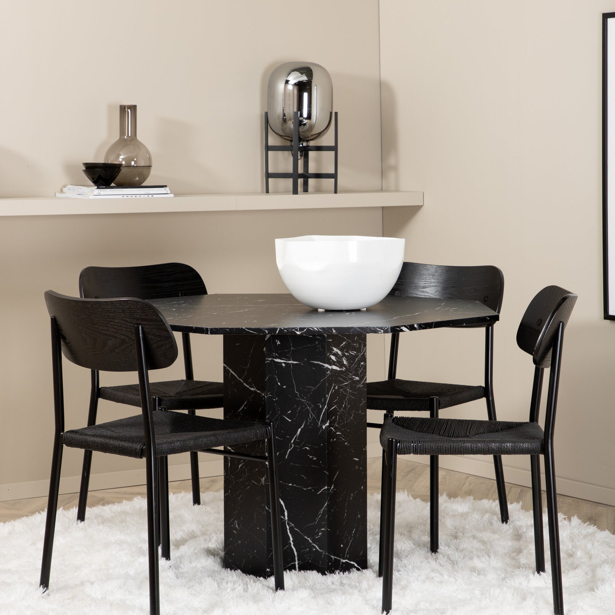 Estelle runt Matbord - Svart / Vit marmor - ø106*H75+Polar Matstol - Svart / Sva