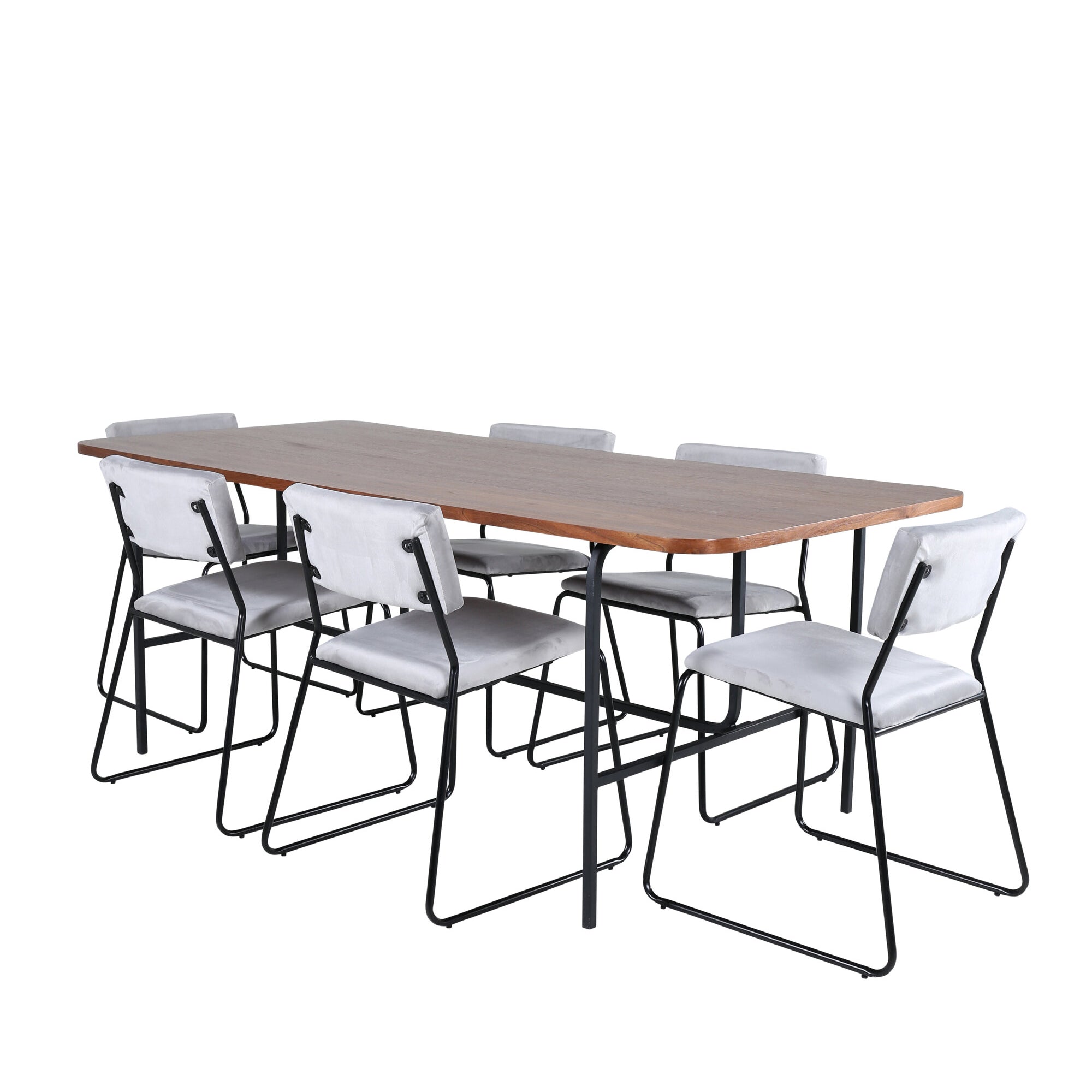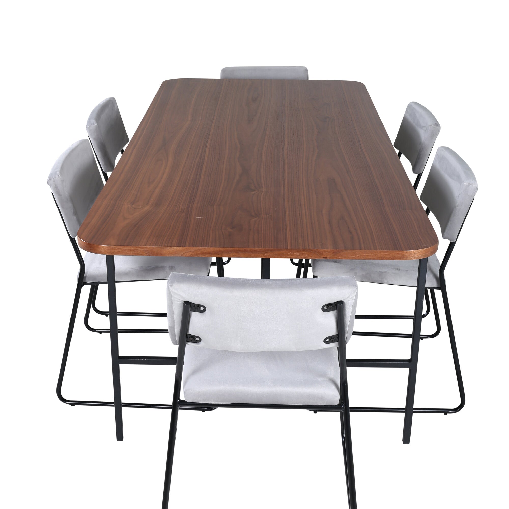 Jídelní stůl Uno – černá / ořechová dýha + židle Kenth – černá / světle šedá Velvet_6