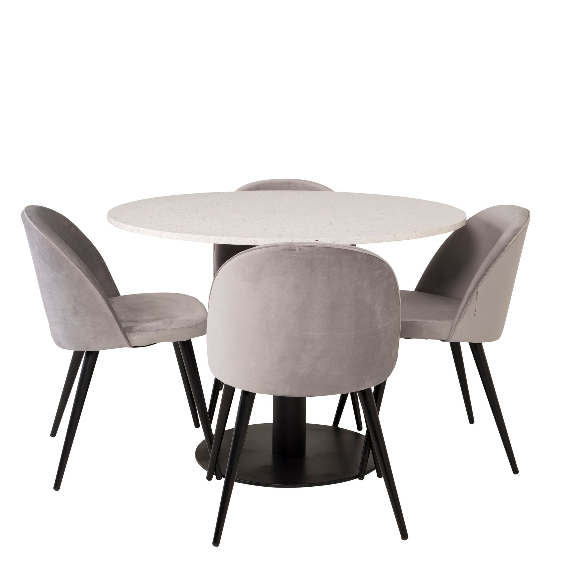Jídelní stůl Razzia 106 cm - White Terazzo / Black+Velvet Matstol - Svart / Ljus