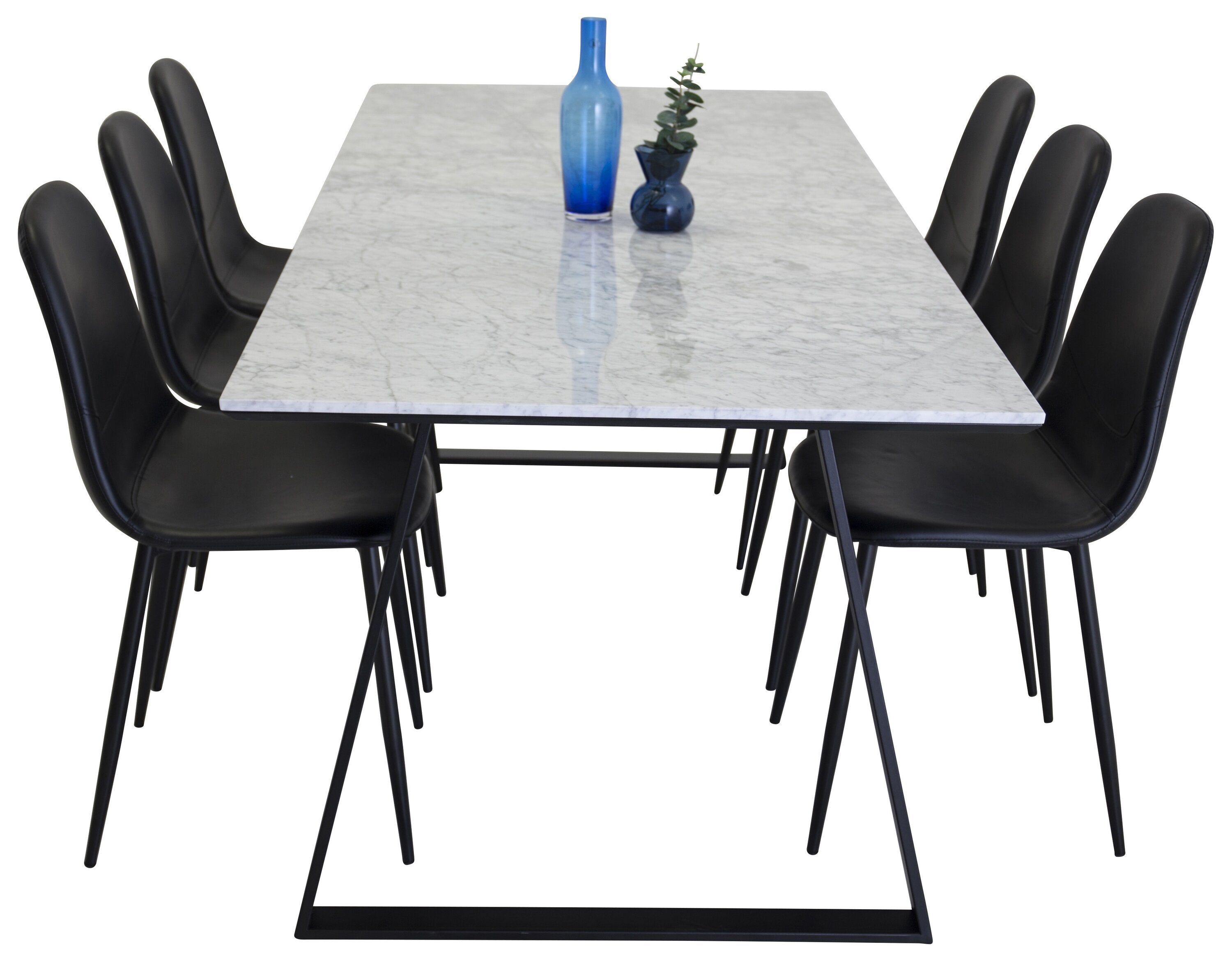 Estelle Matbord - Svart / Vit Marmor - 200*90*H76+Polar Matstol - Svart / Svart