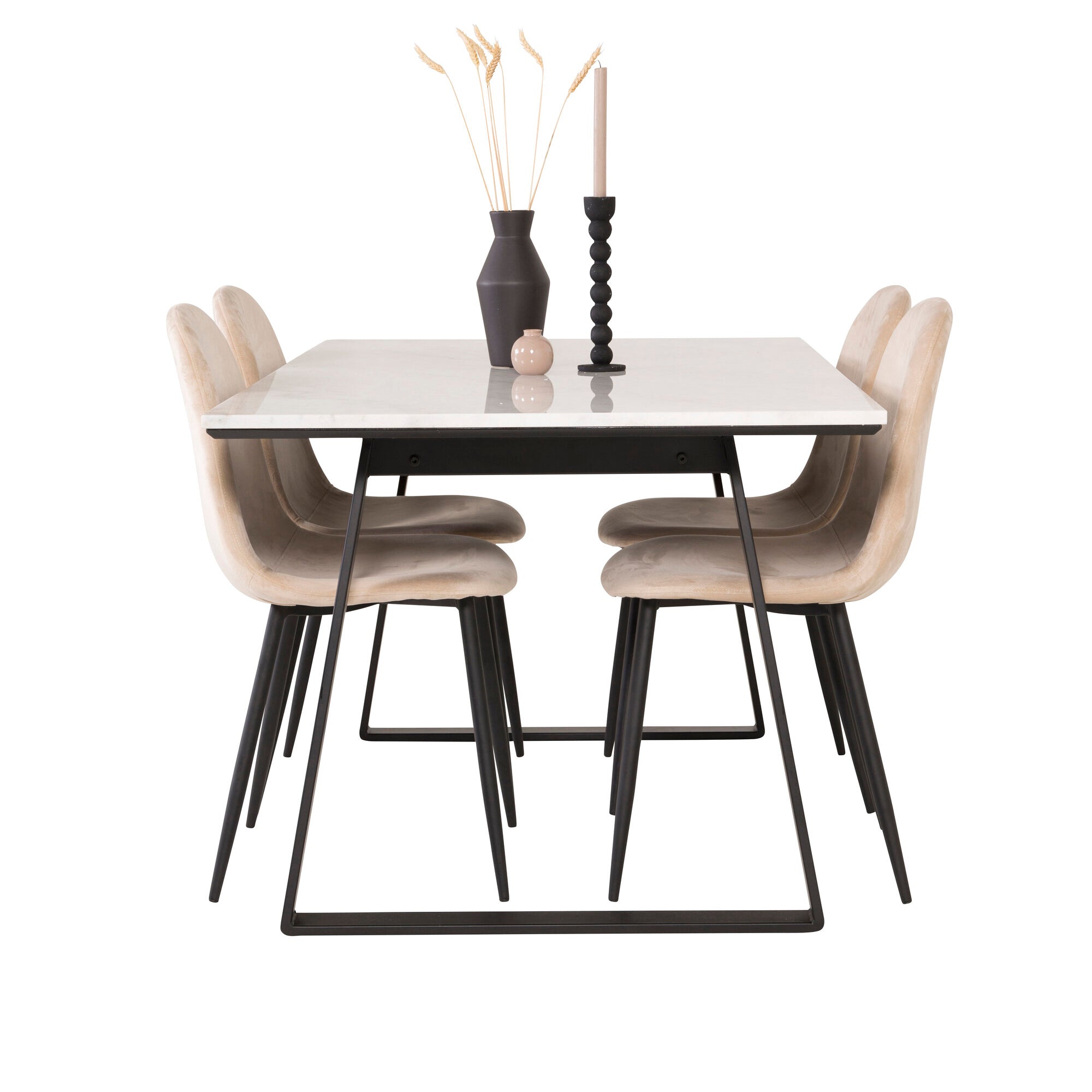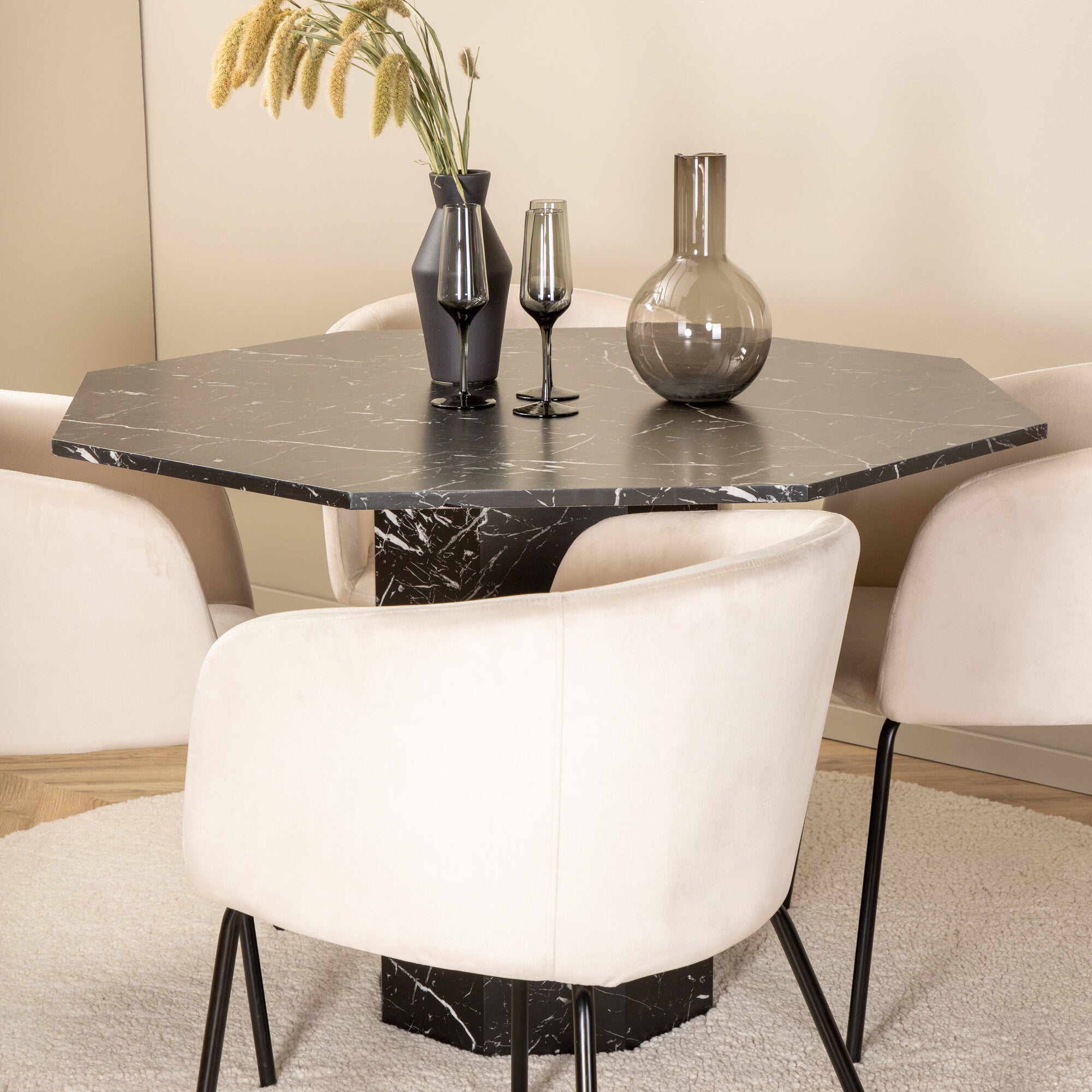 Jídelní stůl Estelle 140*90 – bílý mramor / černé nohy+jídelní židle Polar – černé nohy / béžový samet_4