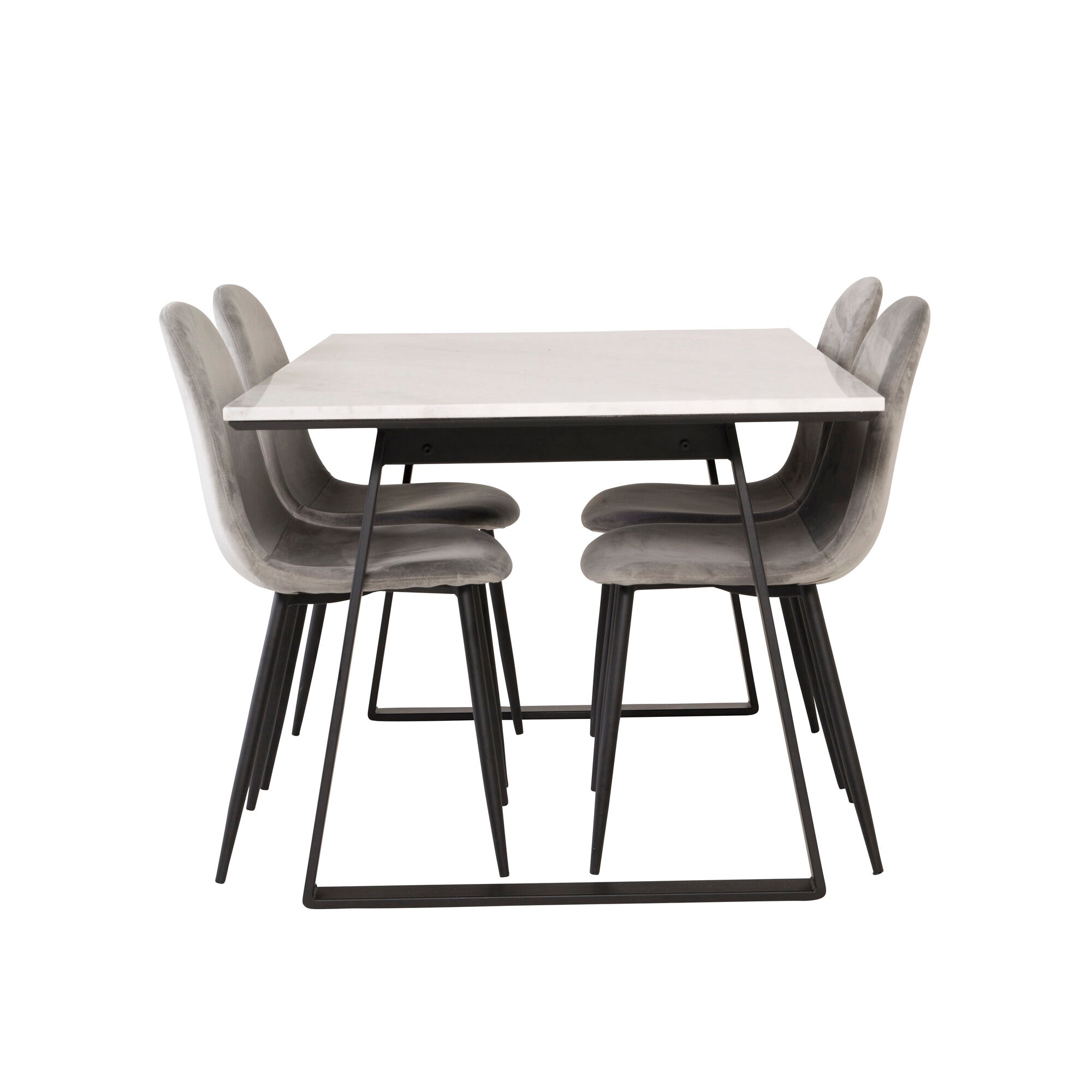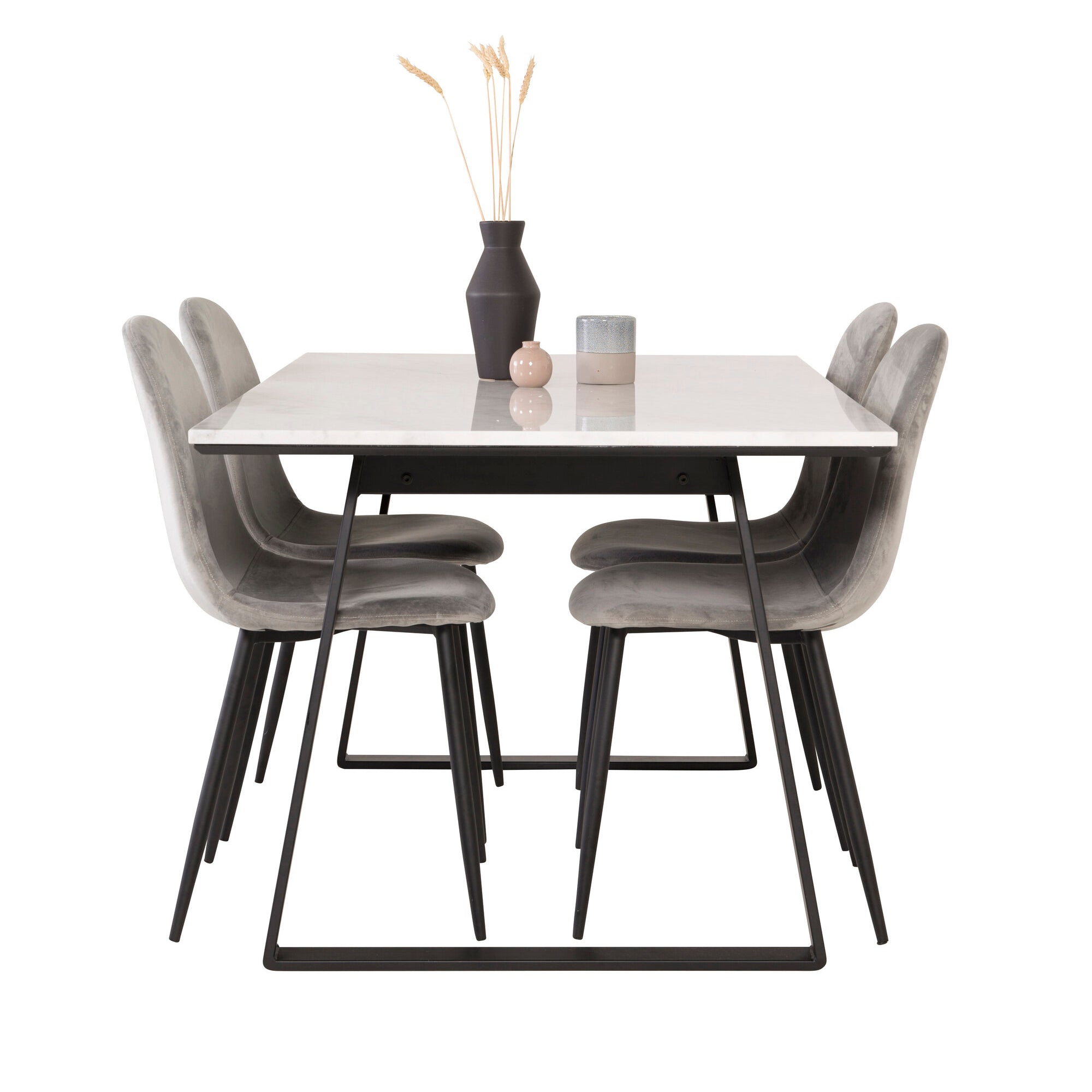 Jídelní stůl Estelle 140*90 – bílý mramor / černé nohy+jídelní židle Polar – černé nohy / světle šedý samet_4