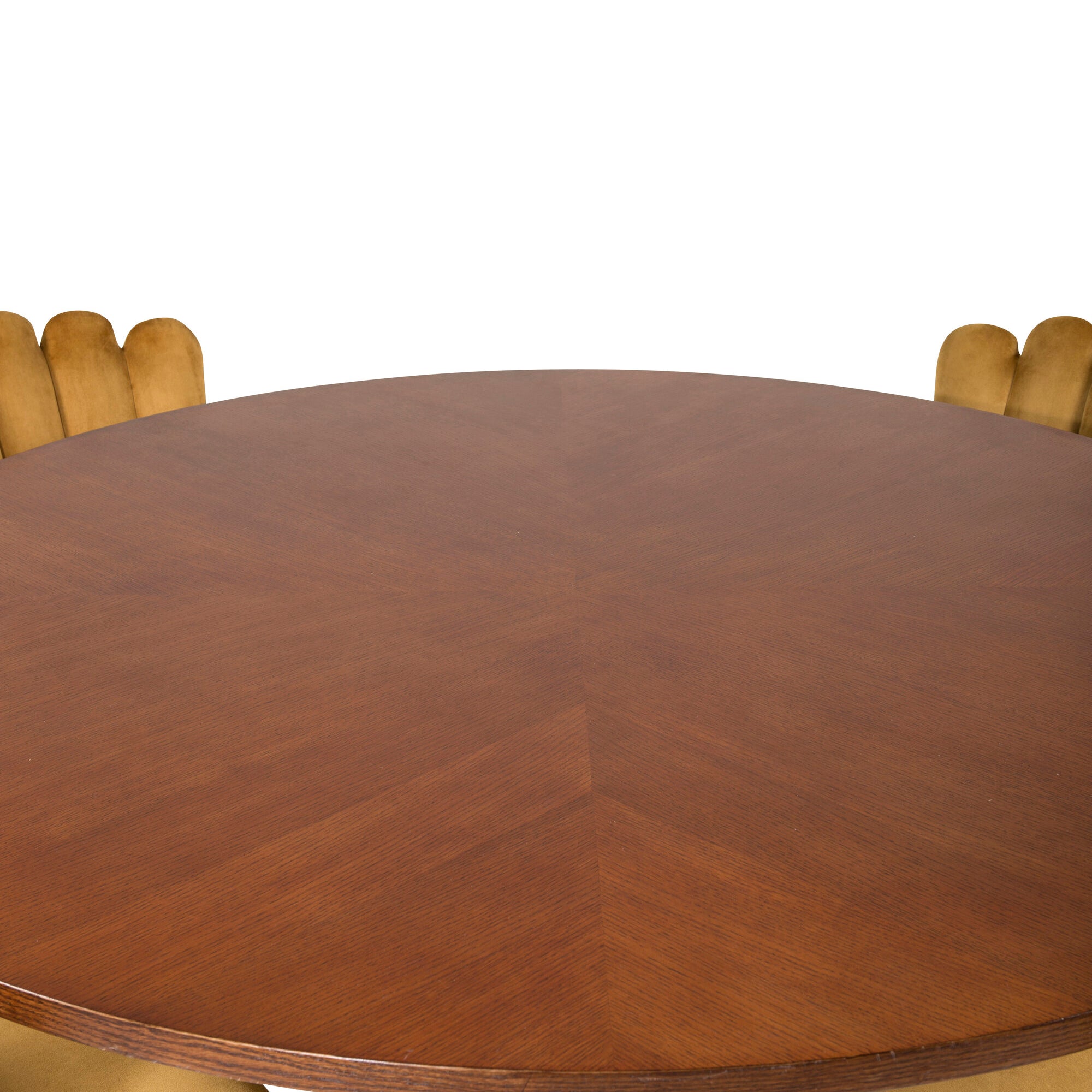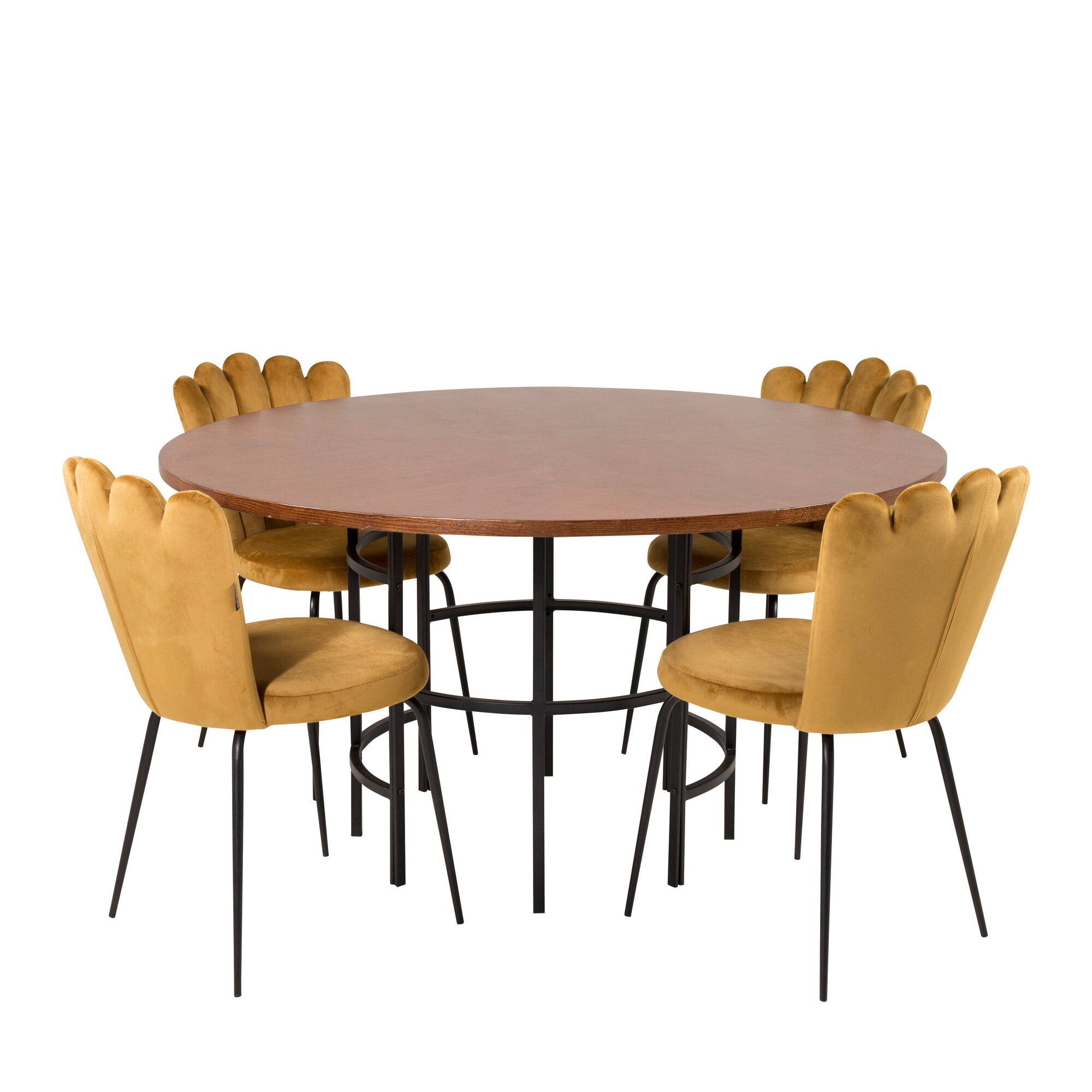 Copenhagen - Jídelní stůl kulatý - Hnědá / Černá+Limhamn Light - Židle - Zlatá Vel