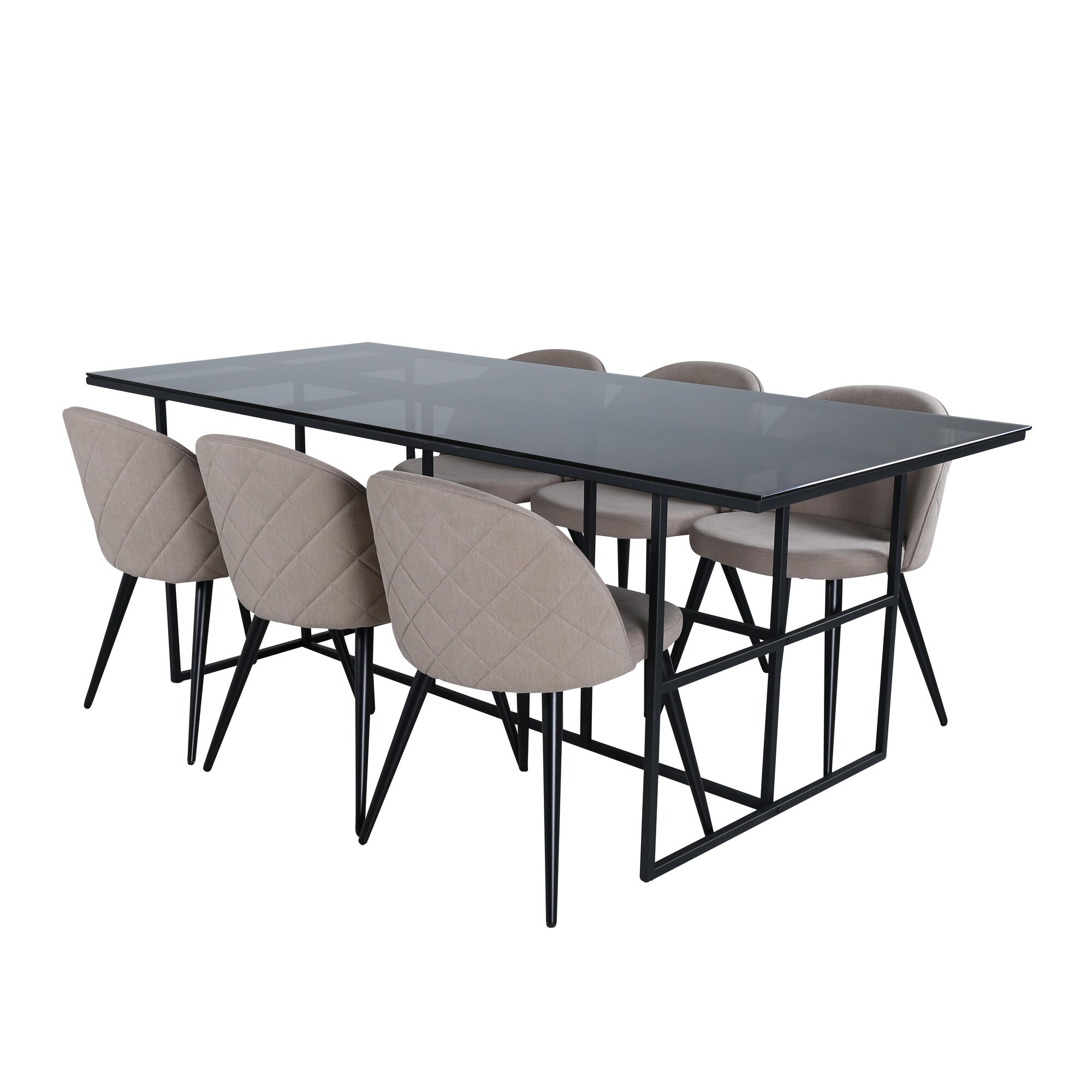 Jídelní stůl Leif , Černá Černé kouřové kouřové sklo + židle sametové stehy , Černá béžová látka (polyesterové prádlo)_6