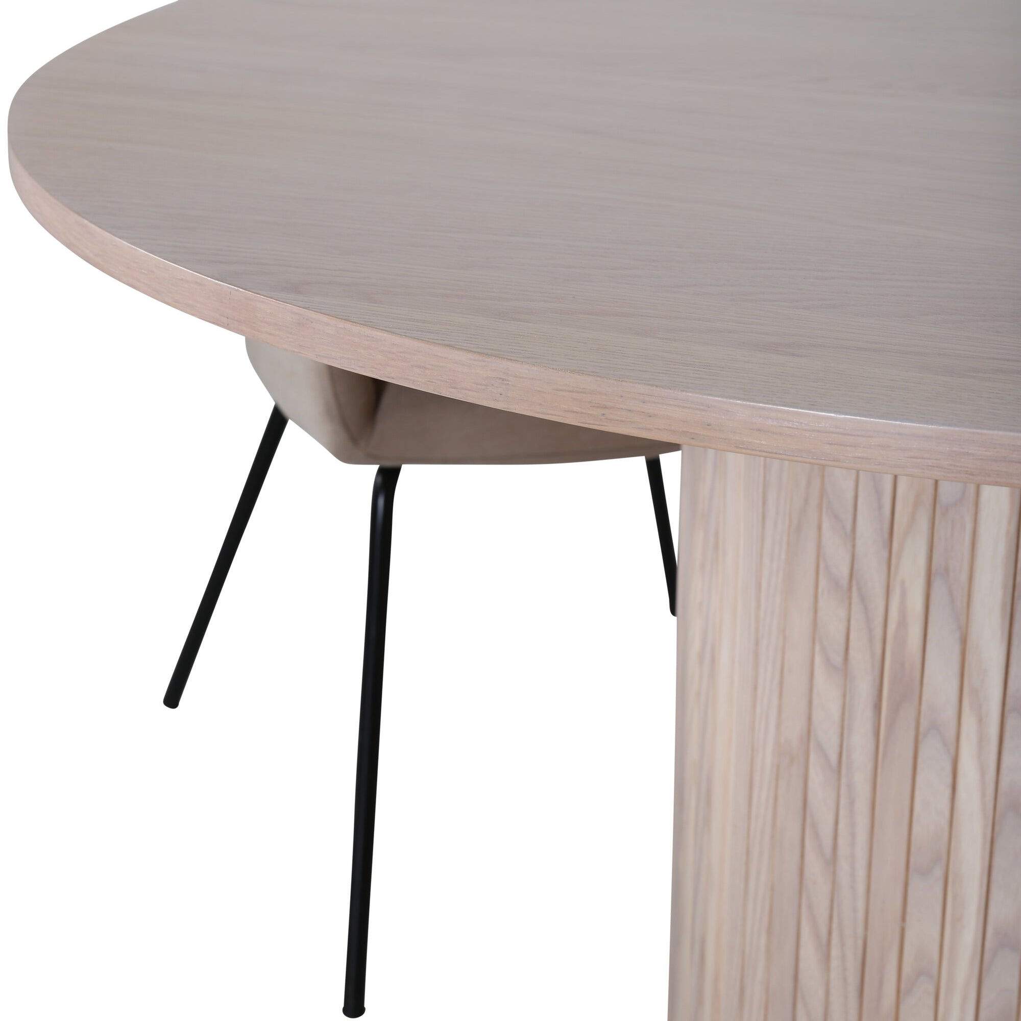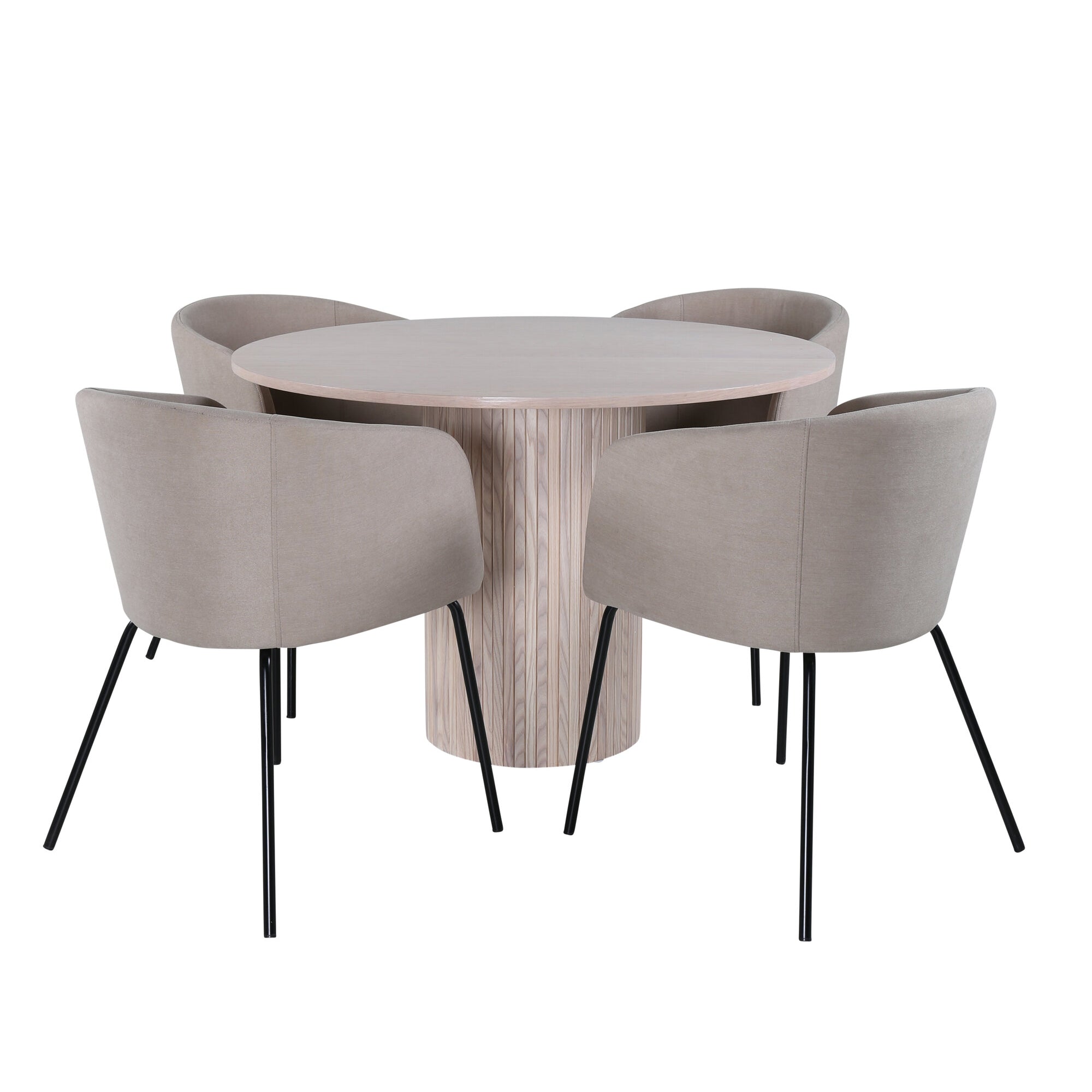 Bianca kulatý jídelní stůl, bílá Wash Černá dýha+židle Berit, černá béžová látka (polyesterové prádlo)_4