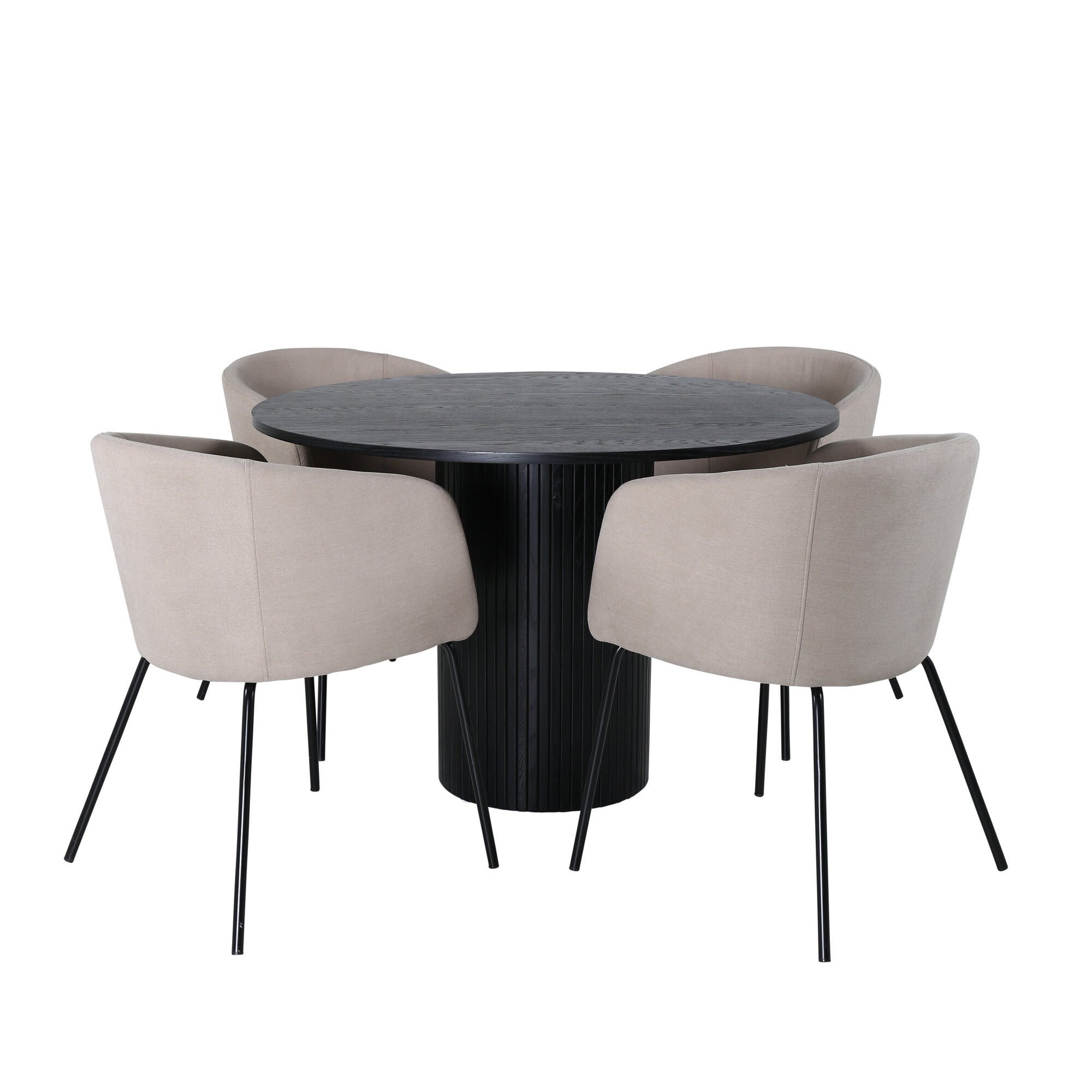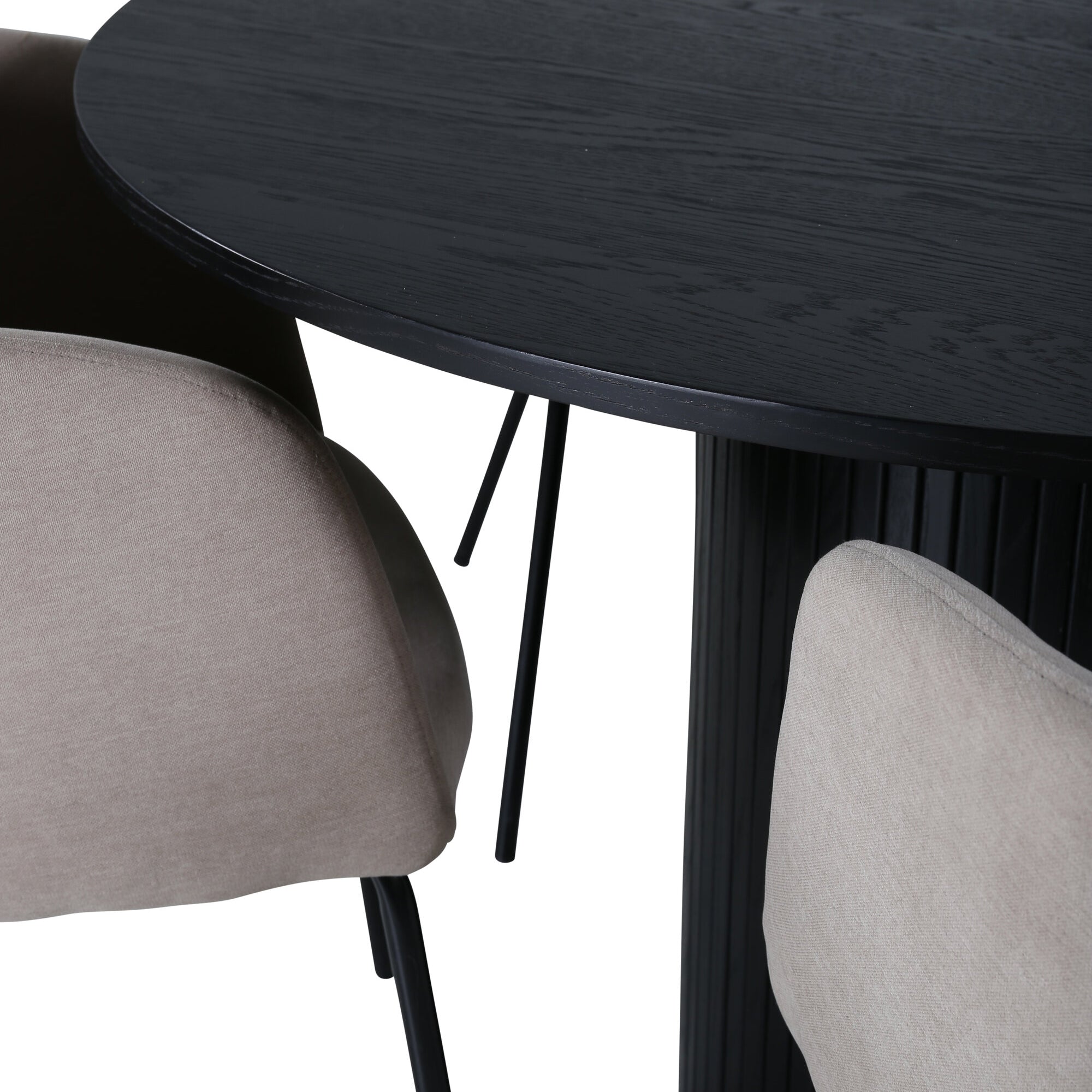 Bianca kulatý jídelní stůl, černá černá dýha+židle Berit, černá béžová látka (polyesterové prádlo)_4