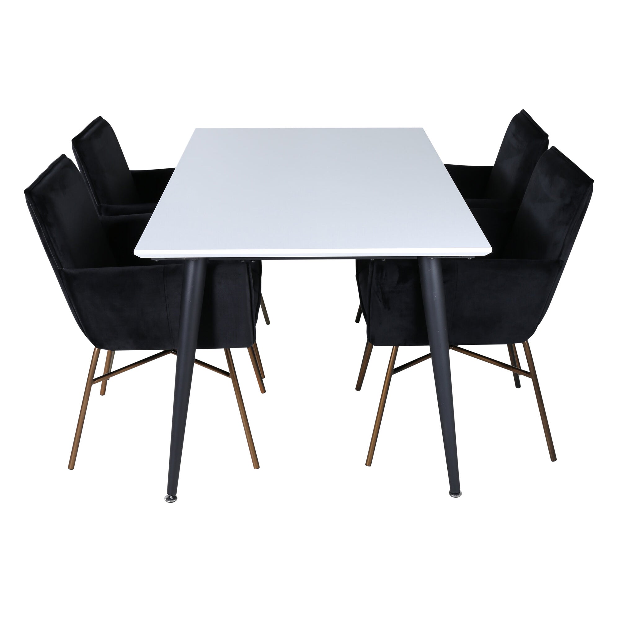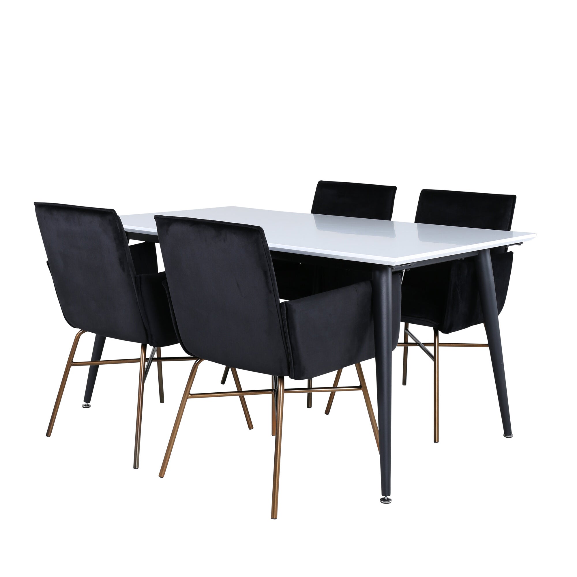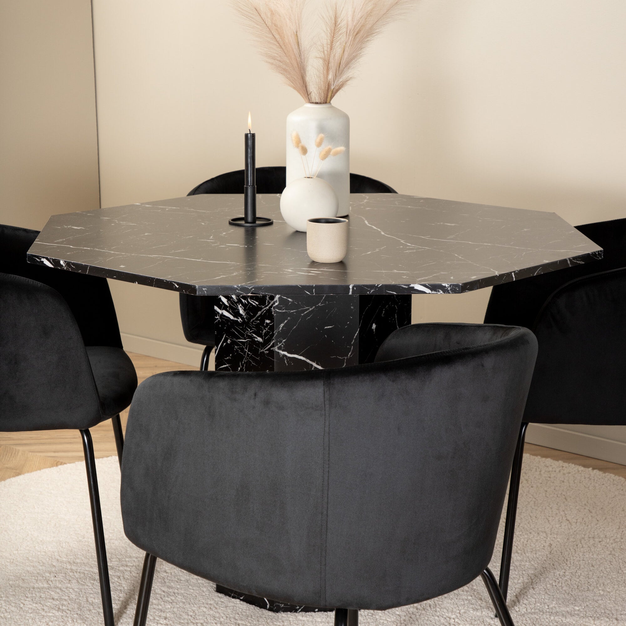 Jídelní stůl Piazza, černá šedá dýha+Limhamn Light, židle, černý samet_6