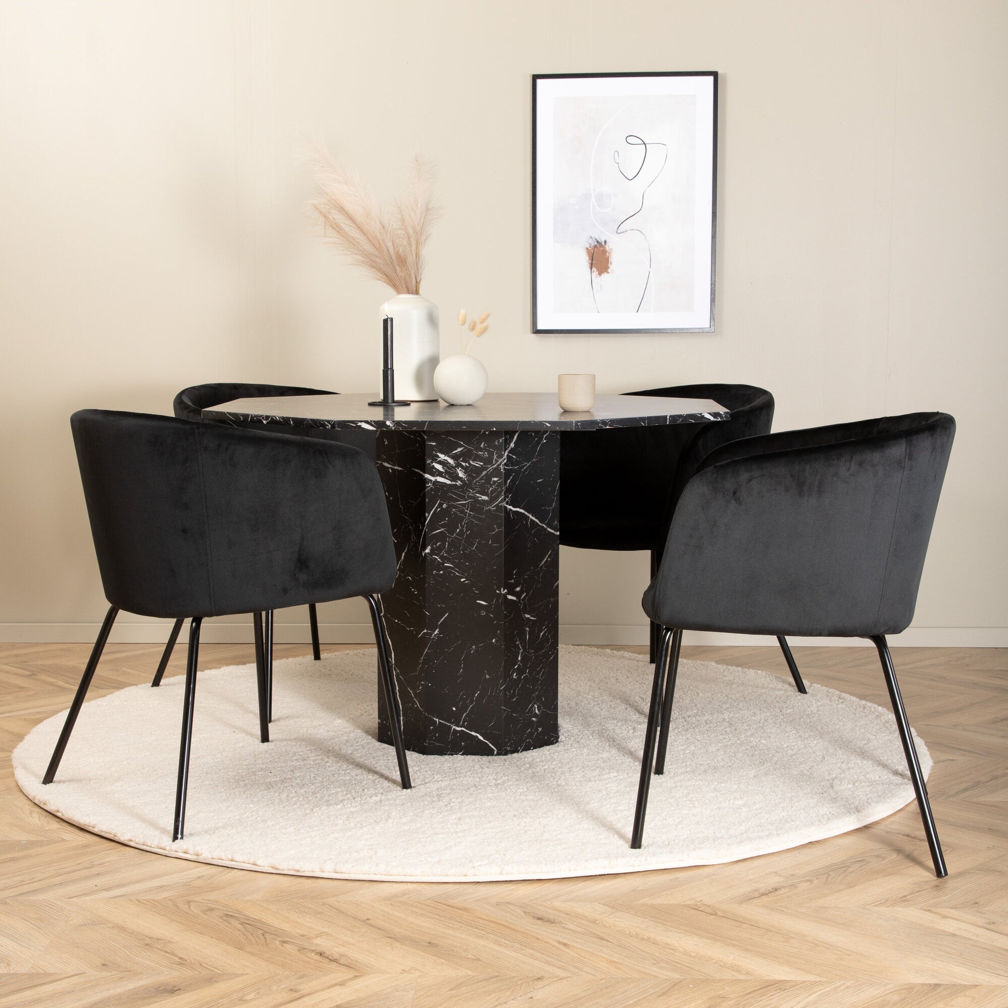 Kulatý jídelní stůl Marbs - černá / černá skleněná židle Marble+Berit - černá / černý samet_4
