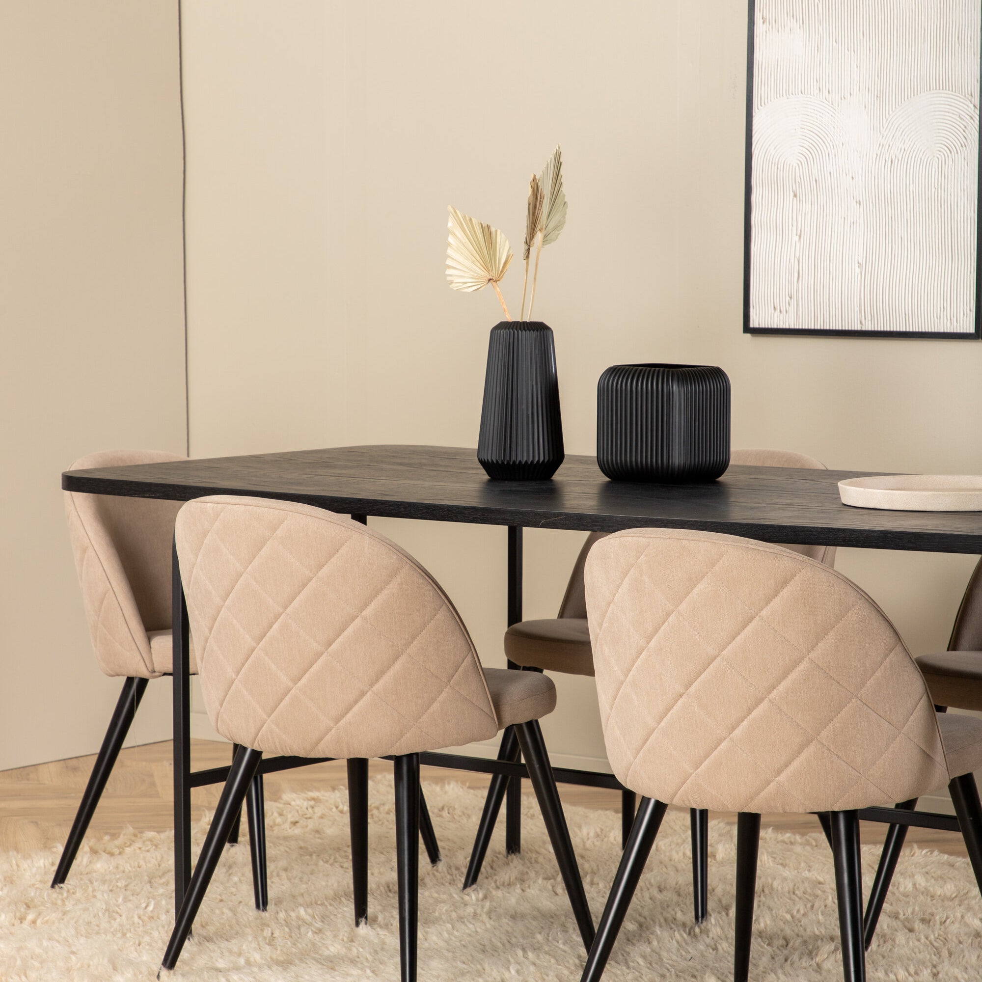 Jídelní stůl Uno – černá / černá dýha + židle se sametovými stehy – černá / béžová látka (polyesterové prádlo)_6