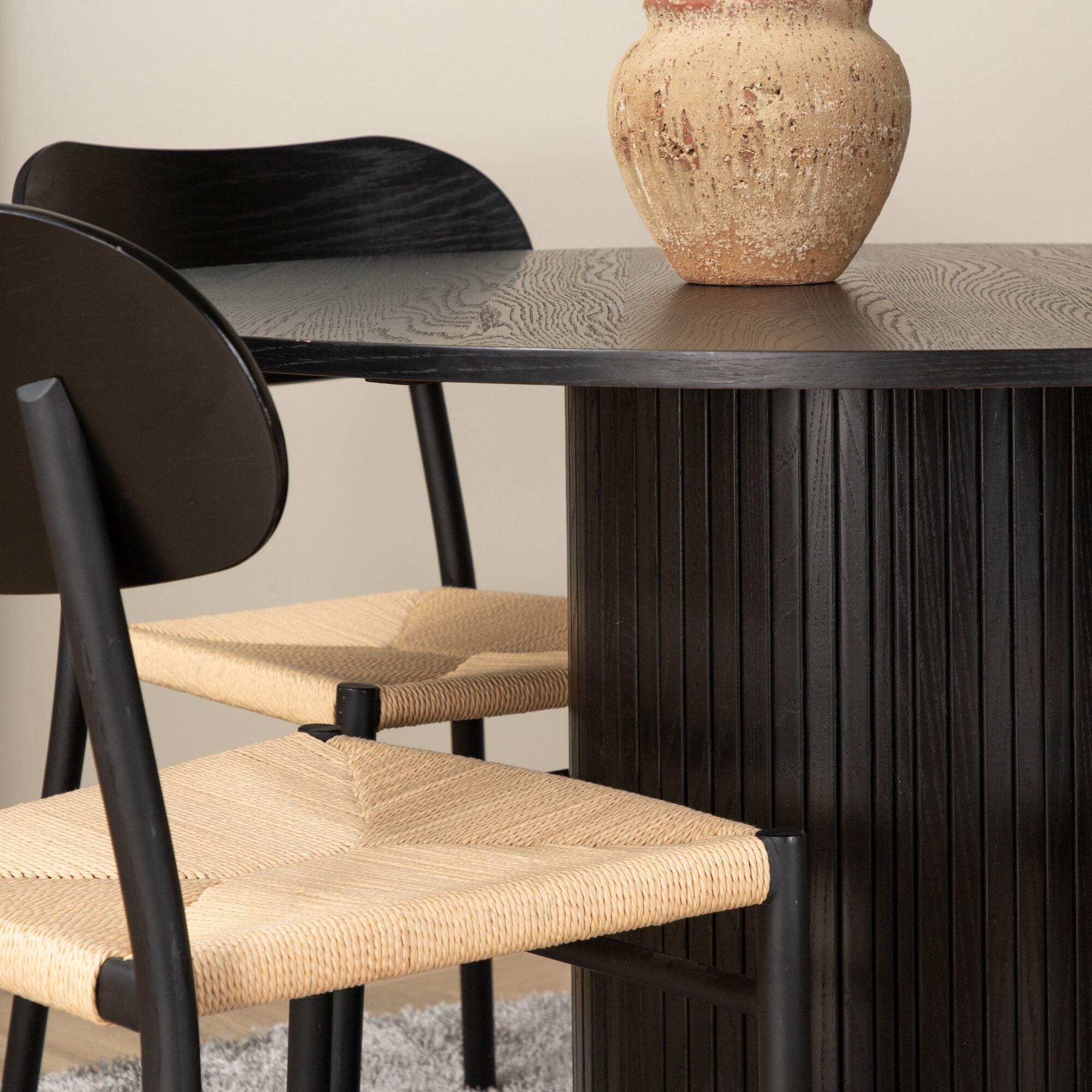 Kruhový stůl Cirebon - 140 cm - Teak / Černá + Polar Matstol - Svart / Svart PU _6