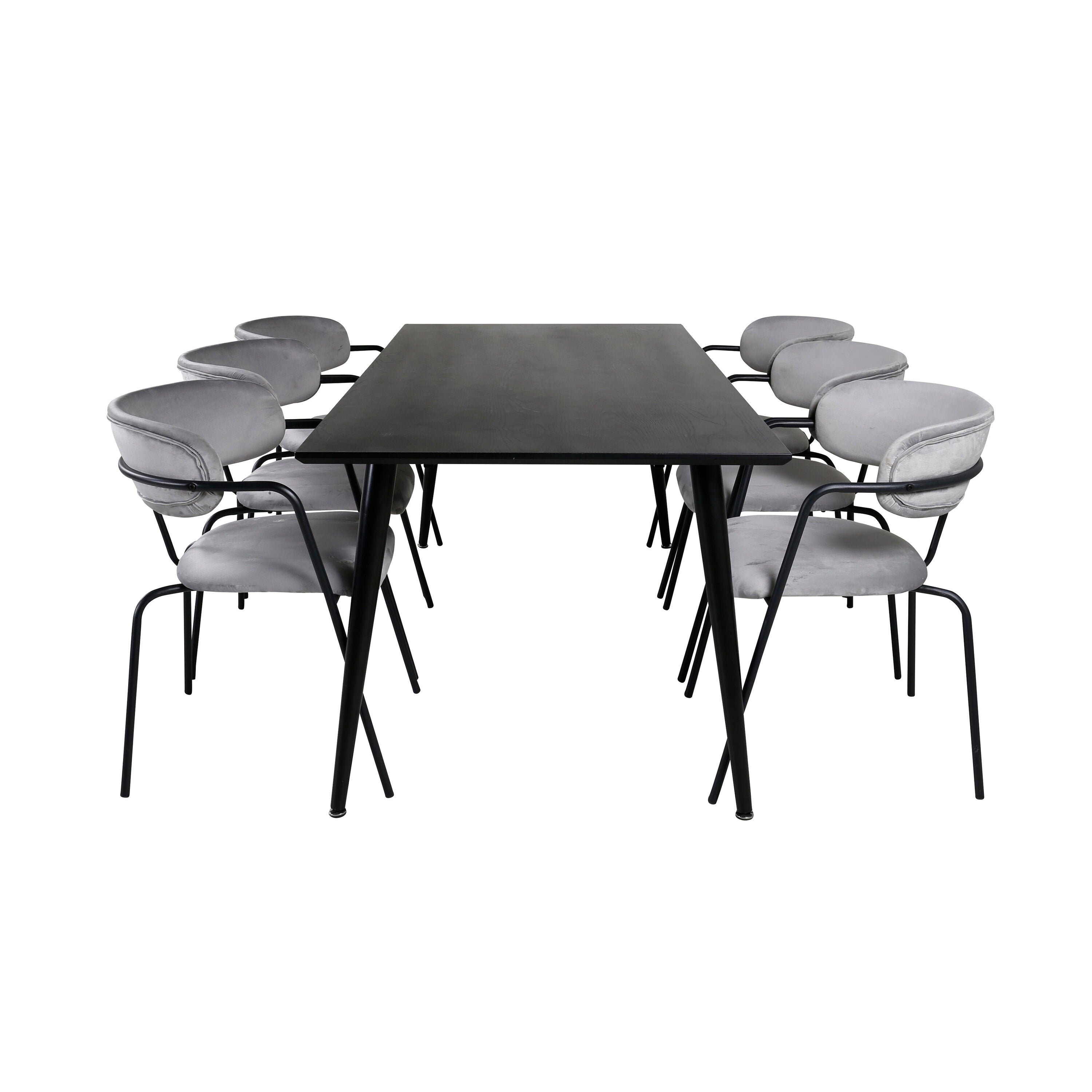Jídelní stůl Dipp - 180*90cm - Černá dýha / celé černé nohy - Křeslo Arrow - Černé nohy - Grey Velvet 6