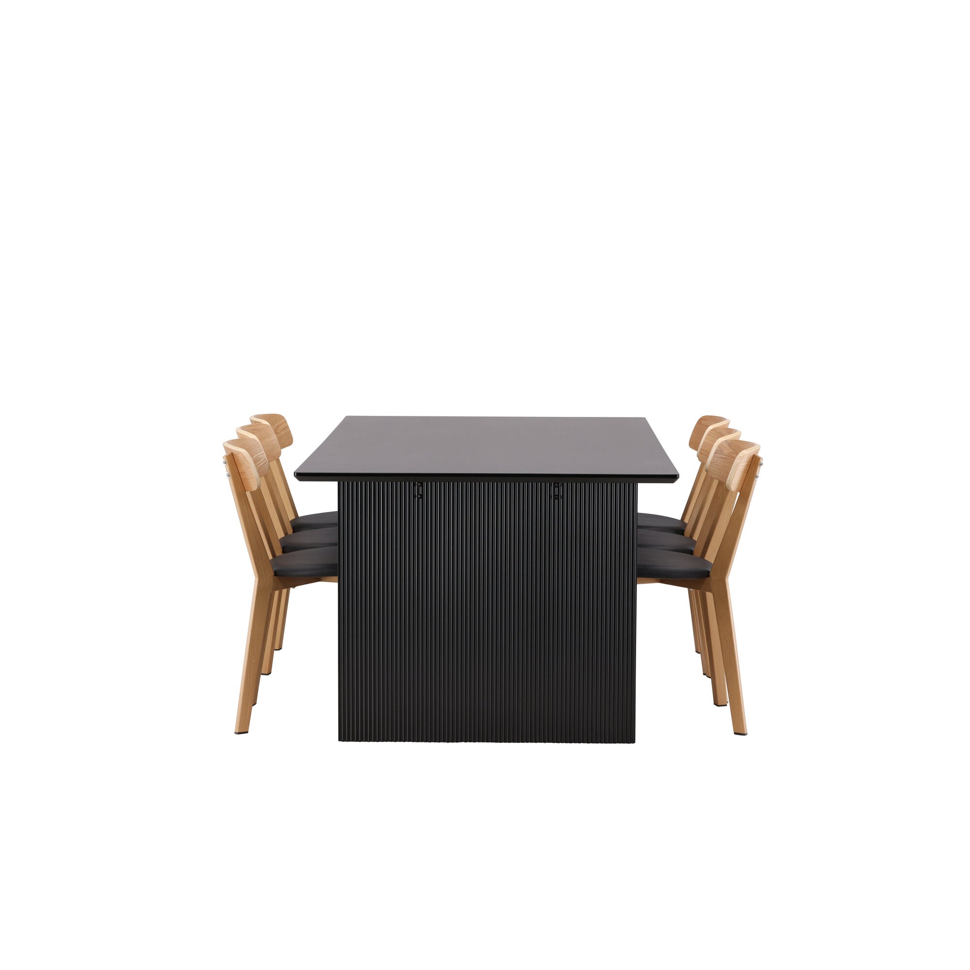 Jídelní stůl Vail - černá / kouřová černá MDF + jídelní židle Sanjos - dubový vzhled / černá PU _6