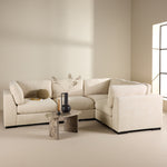 Rohový díl čalouněný v elegantním béžovém tónu se perfektně hodí do klasických i moderních interiérů. Díky flexibilnímu modulárnímu systému lze sérii Salerno přizpůsobit vašim potřebám – nakombinujte a postavte si pohovku přesně tak, jak chcete.