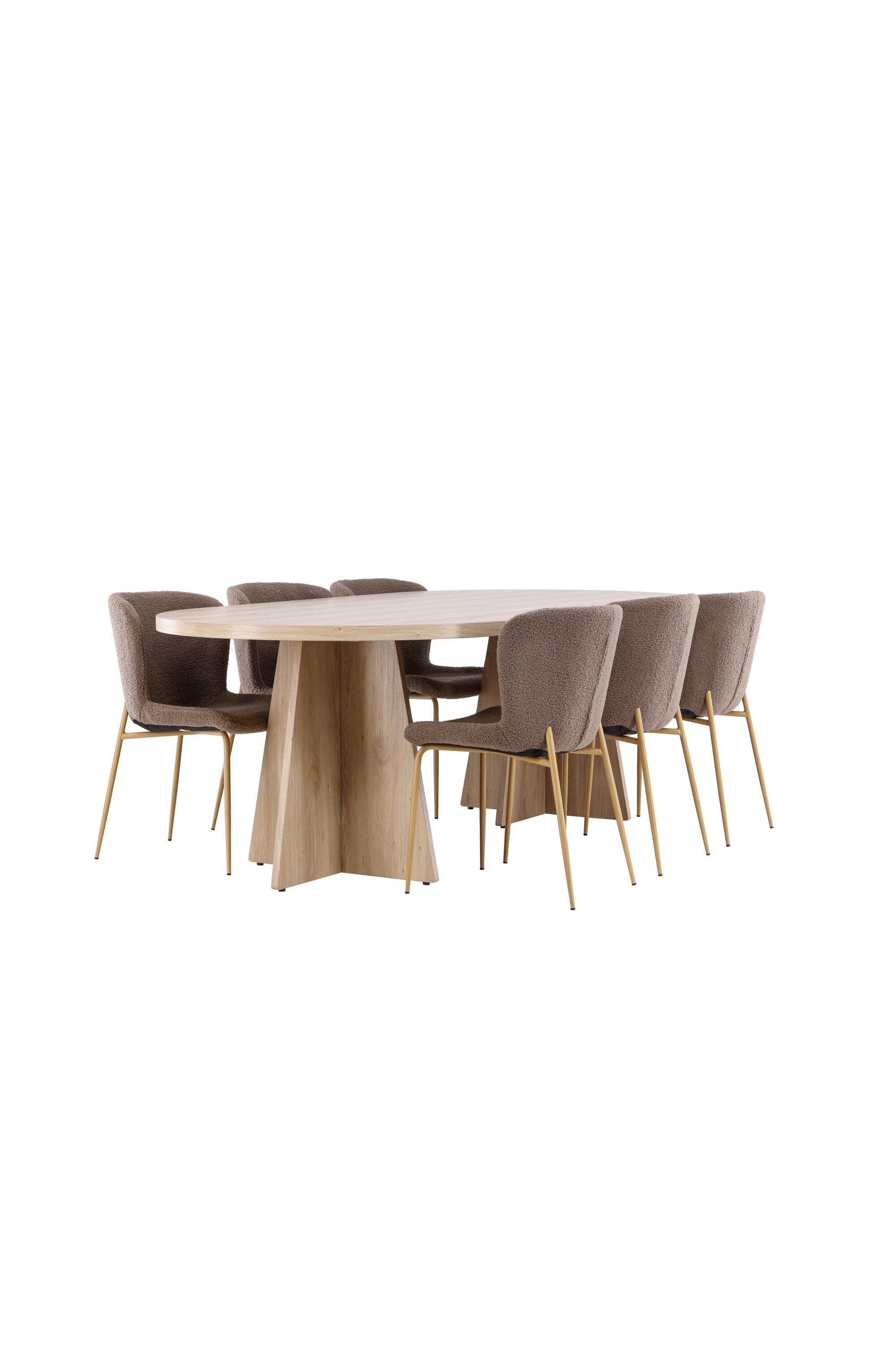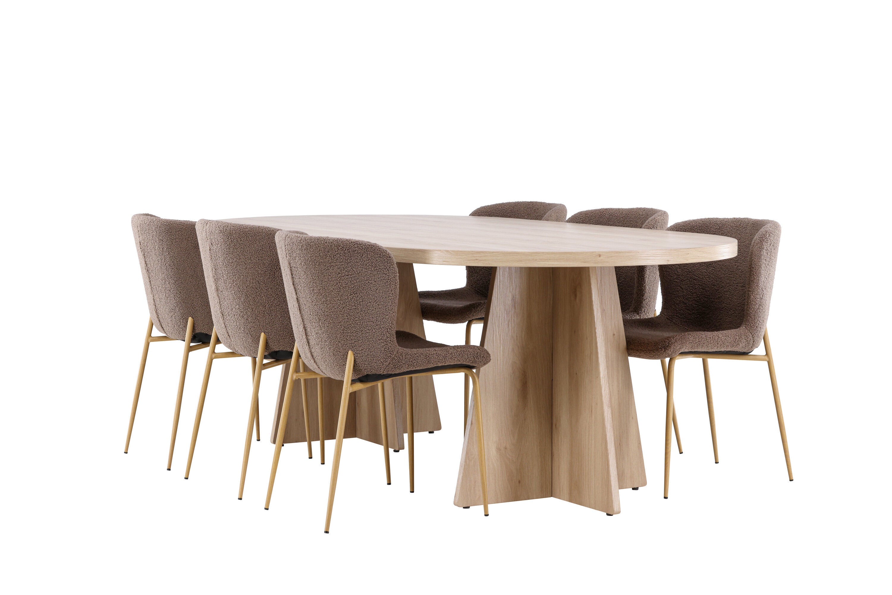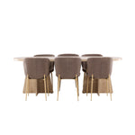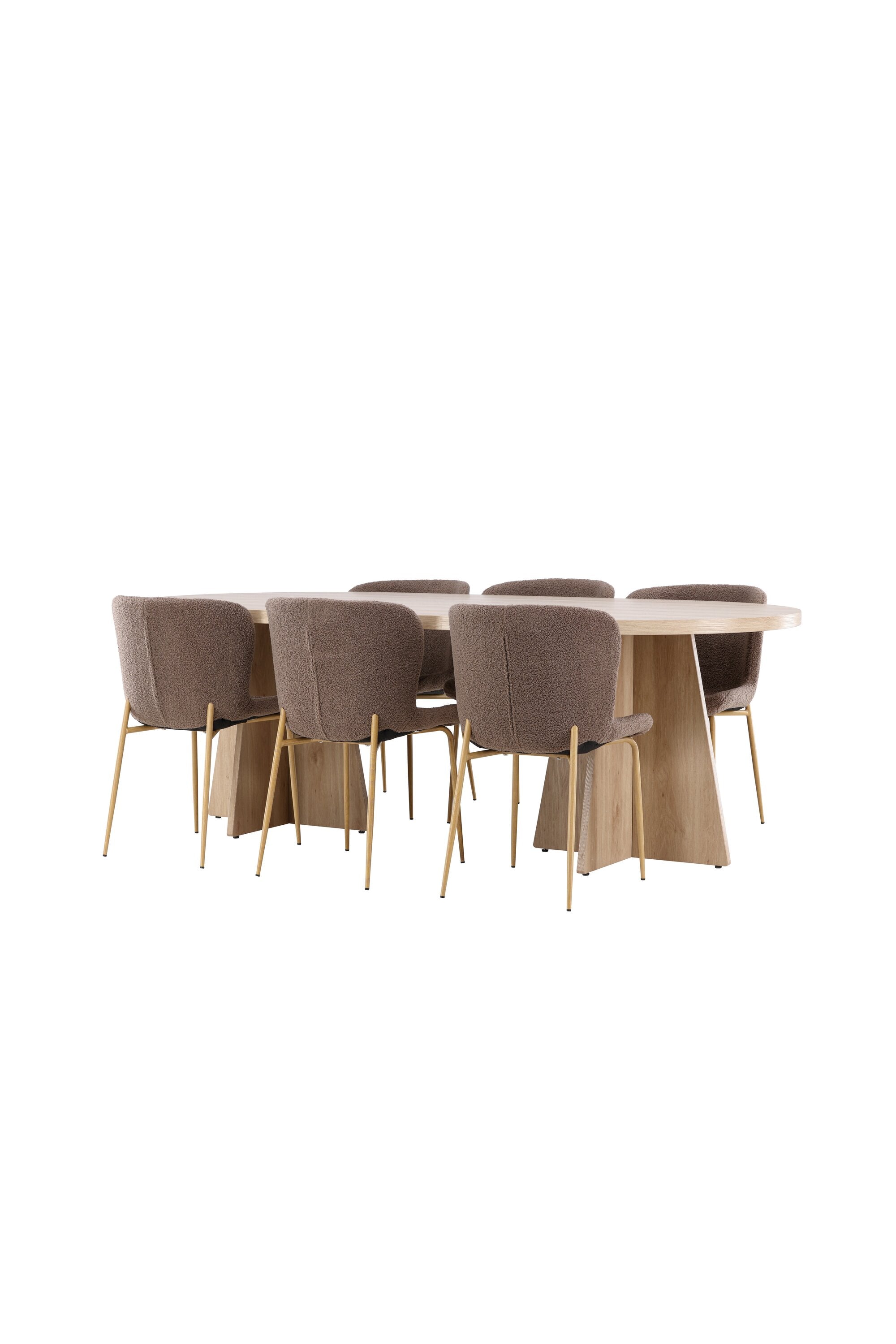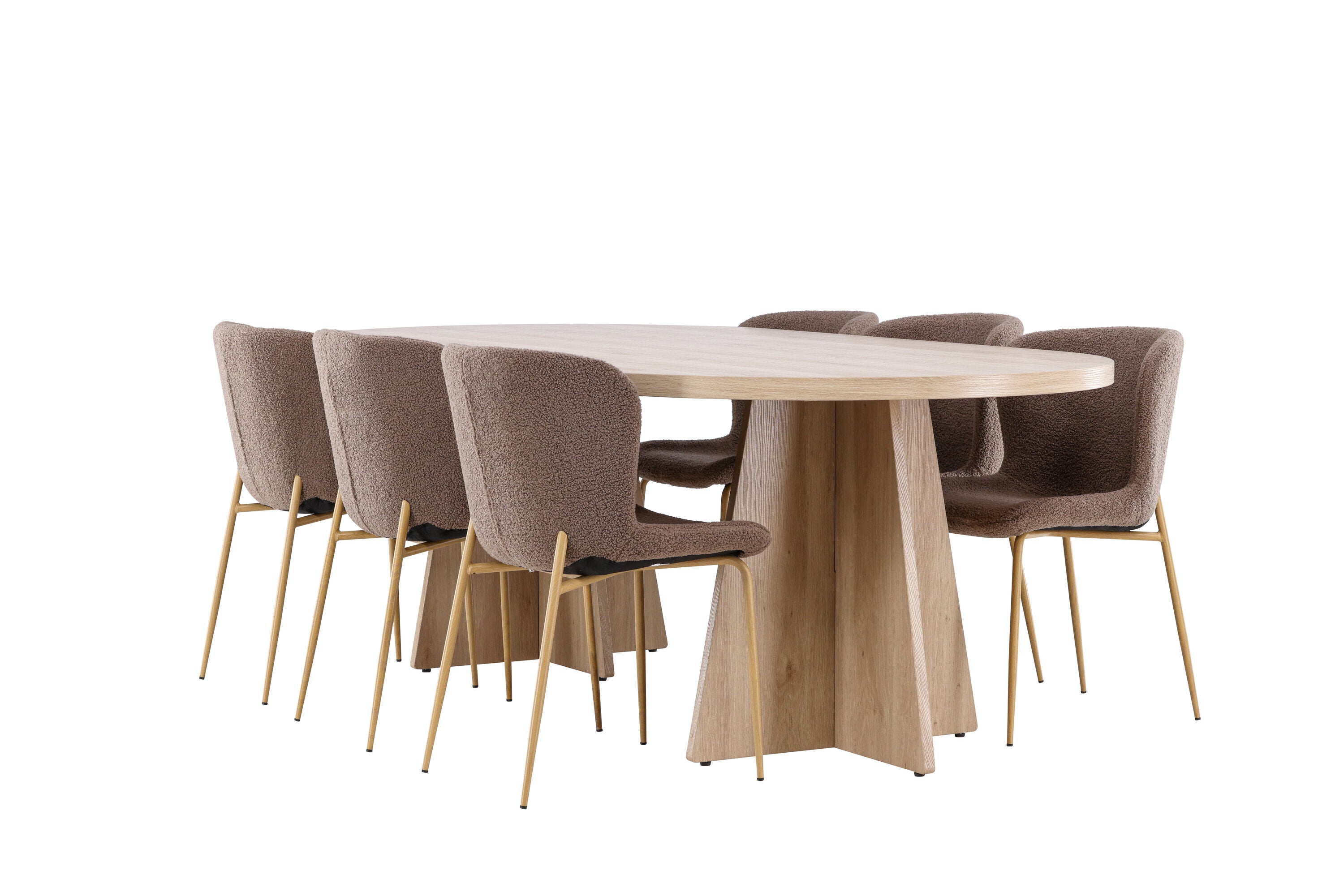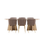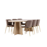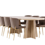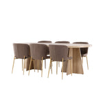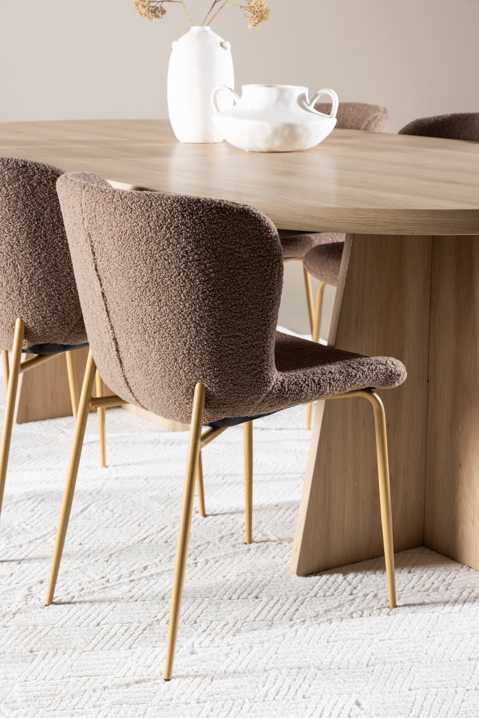 Vytvořte si stylový a příjemný jídelní kout s naší exkluzivní jídelní sadou, která kombinuje trendy design a vysokou funkčnost. Objevte jídelní židli Modesto – trendy a poutavý kus nábytku, který do vaší jídelny vnese hřejivou atmosféru. Sedák židle je čalouněný příjemným plyšovým materiálem v elegantní hnědé barvě, nohy jsou ocelové a mají krásnou mocca barvu. Se svou zemitou estetikou a trendy designem je jídelní židle Modesto dokonalým doplňkem vašeho interiéru. Poutavá kombinace materiálů a barev dodá vaší jídelně moderní a stylový výraz. Dodejte svému domovu nádech elegance a vytvořte u svého jídelního stolu příjemnou atmosféru s jídelní židlí Modesto. Pohodlné a stylové místo, kde si můžete vychutnat dobré jídlo a vytvořit nezapomenutelné chvíle s rodinou a přáteli. Objevte krásu a funkčnost jídelního stolu Bootcut - perfektní volba pro vytvoření nezapomenutelných okamžiků s přáteli a rodinou. S působivými rozměry 230x115 cm nabízí tento stůl dostatek prostoru pro společenské večeře a dlouhé rozhovory. Jídelní stůl Bootcut je dodáván v nádherné bílé barvě, která dodá vašemu pokoji zemitý nádech. Jeho skandinávský design a čisté linie přispívají ke stylové a moderní atmosféře vašeho domova. Vytvořte příjemnou atmosféru a nechte jídelní stůl Bootcut být středem vašich společenských setkání. Ať už se jedná o rodinnou večeři nebo slavnostní příležitosti, tento působivý stůl udělá z každé příležitosti nezapomenutelnou. Dodejte svému domovu nádech jednoduché elegance a pospolitosti s jídelním stolem Bootcut – perfektním místem pro setkání vašich blízkých a vytvoření trvalých společných vzpomínek.