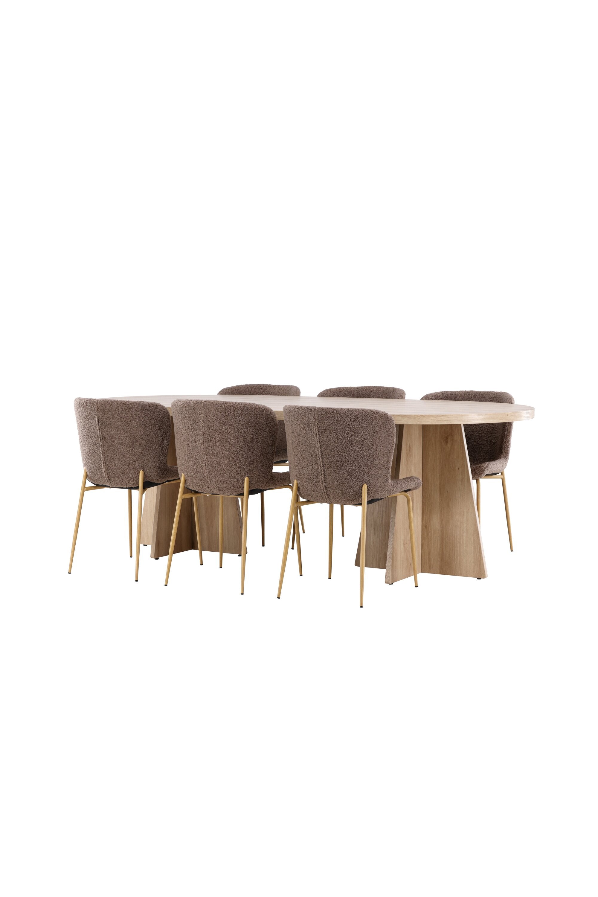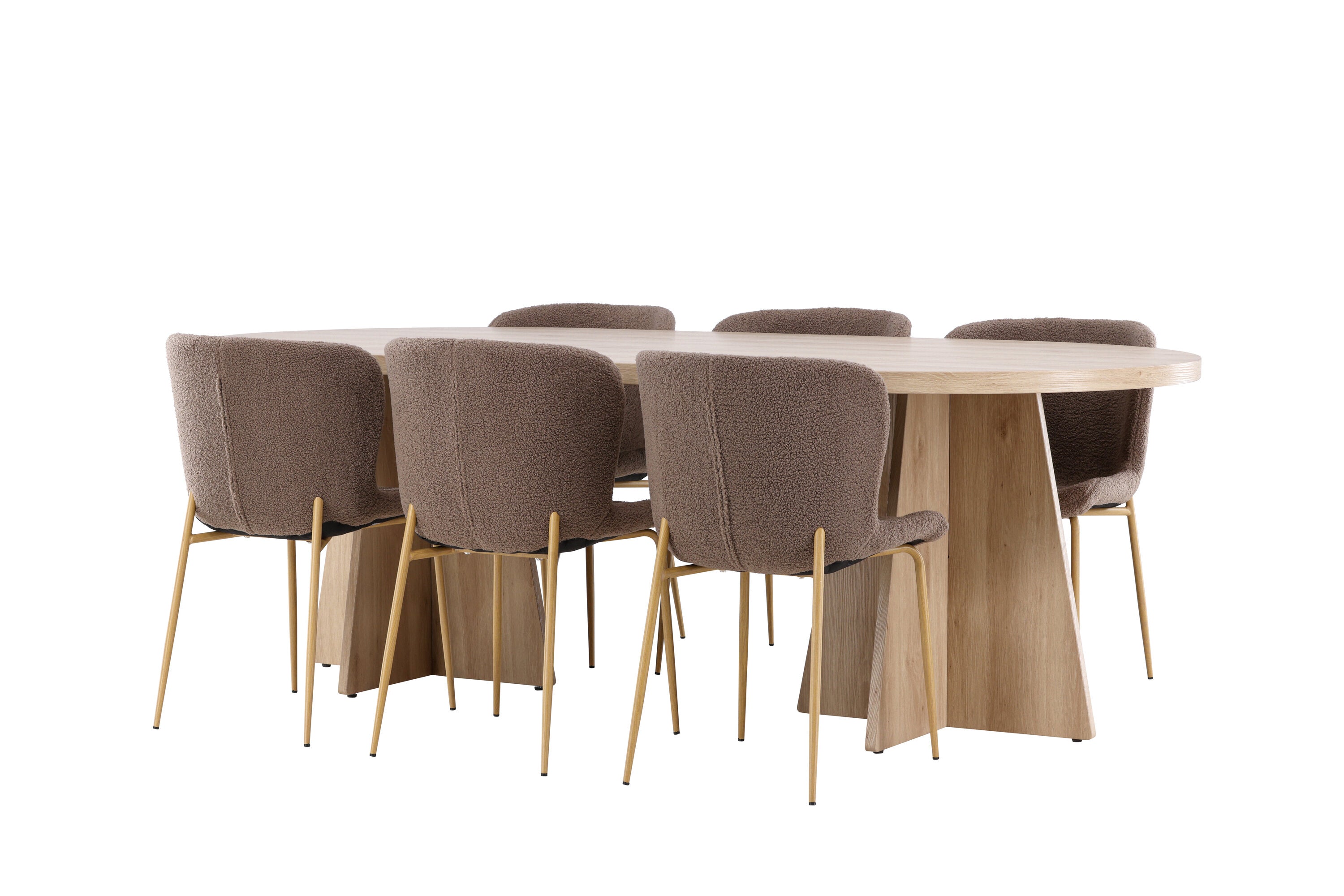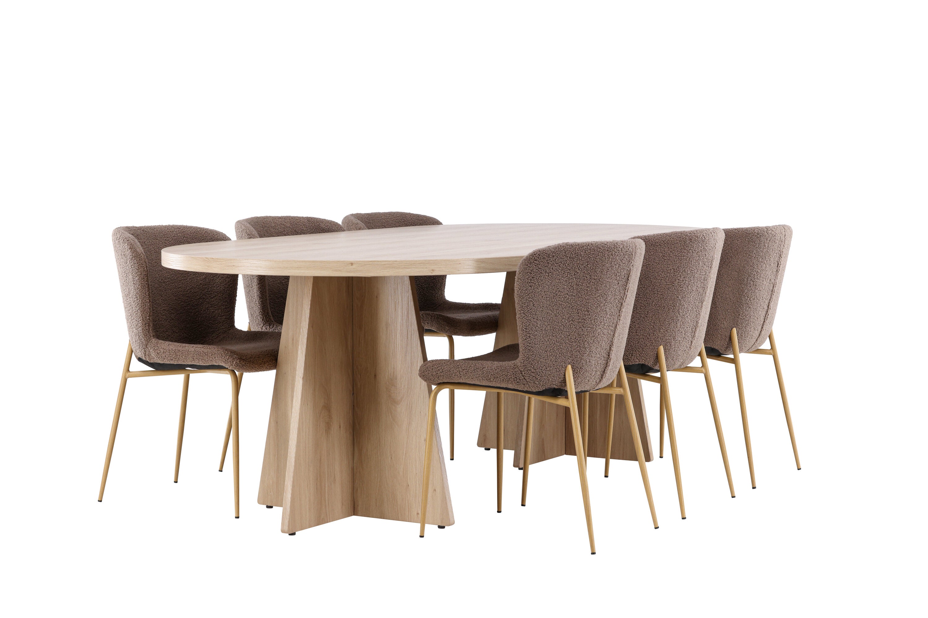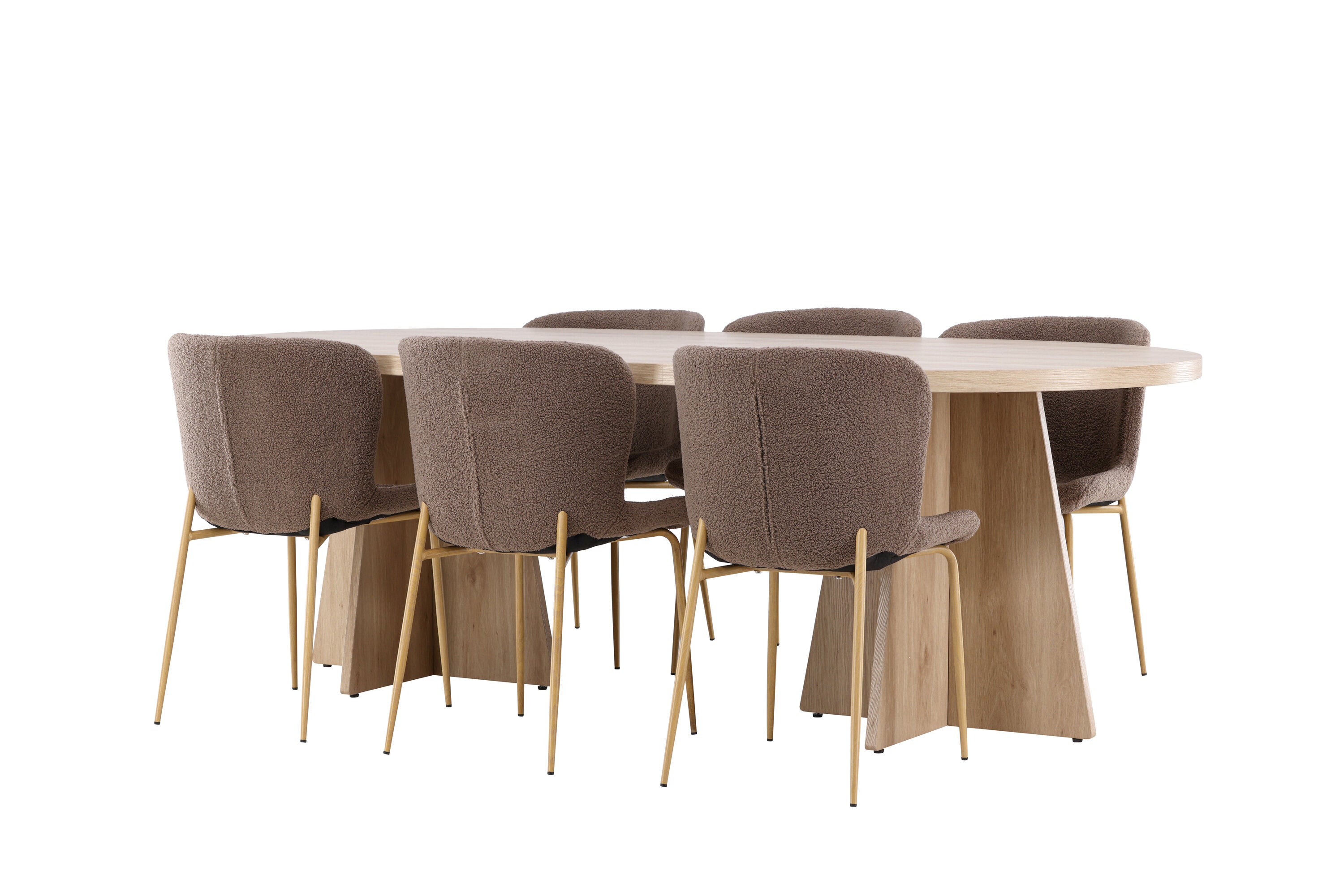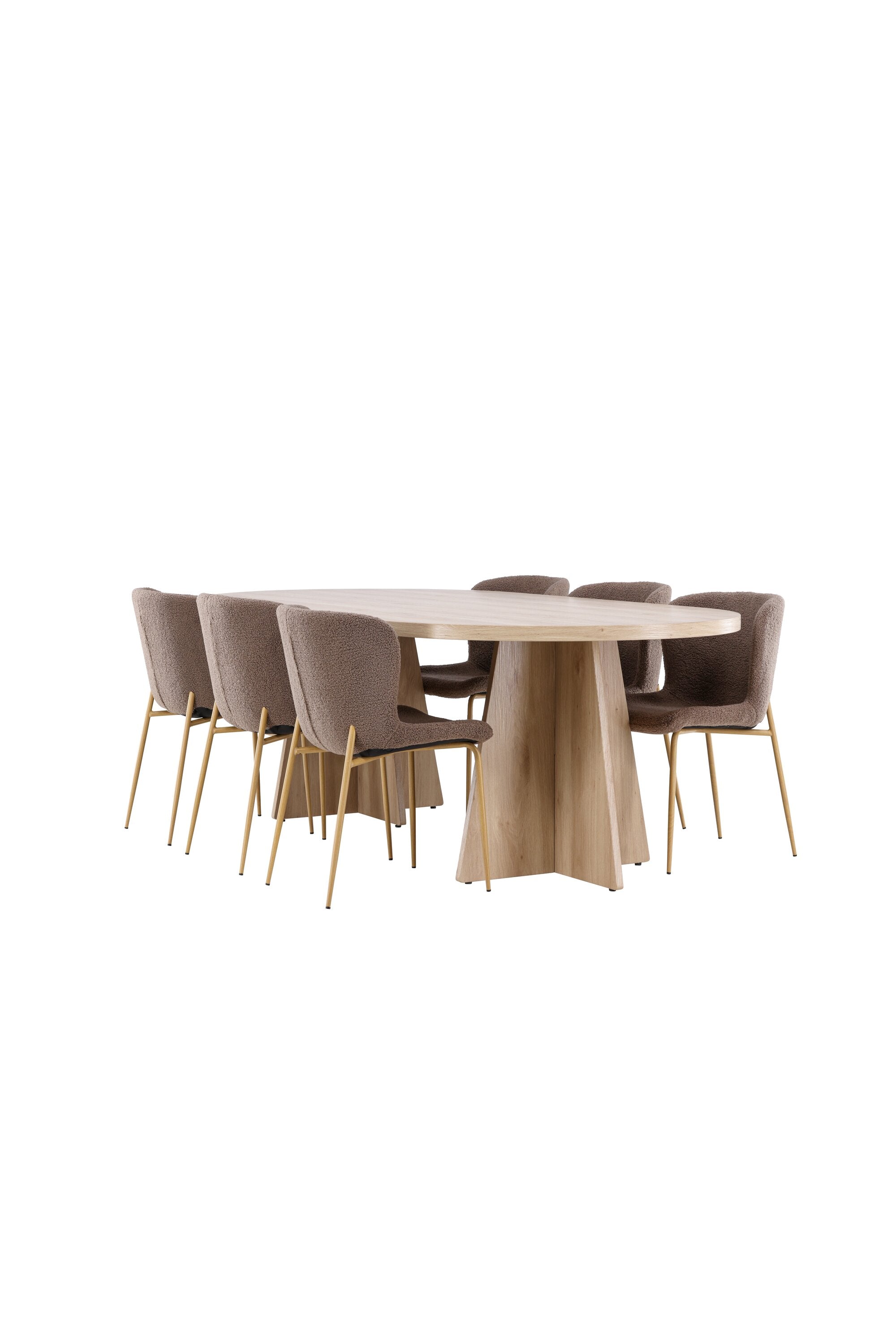 Vytvořte si stylový a příjemný jídelní kout s naší exkluzivní jídelní sadou, která kombinuje trendy design a vysokou funkčnost. Objevte jídelní židli Modesto – trendy a poutavý kus nábytku, který do vaší jídelny vnese hřejivou atmosféru. Sedák židle je čalouněný příjemným plyšovým materiálem v elegantní hnědé barvě, nohy jsou ocelové a mají krásnou mocca barvu. Se svou zemitou estetikou a trendy designem je jídelní židle Modesto dokonalým doplňkem vašeho interiéru. Poutavá kombinace materiálů a barev dodá vaší jídelně moderní a stylový výraz. Dodejte svému domovu nádech elegance a vytvořte u svého jídelního stolu příjemnou atmosféru s jídelní židlí Modesto. Pohodlné a stylové místo, kde si můžete vychutnat dobré jídlo a vytvořit nezapomenutelné chvíle s rodinou a přáteli. Objevte krásu a funkčnost jídelního stolu Bootcut - perfektní volba pro vytvoření nezapomenutelných okamžiků s přáteli a rodinou. S působivými rozměry 230x115 cm nabízí tento stůl dostatek prostoru pro společenské večeře a dlouhé rozhovory. Jídelní stůl Bootcut je dodáván v nádherné bílé barvě, která dodá vašemu pokoji zemitý nádech. Jeho skandinávský design a čisté linie přispívají ke stylové a moderní atmosféře vašeho domova. Vytvořte příjemnou atmosféru a nechte jídelní stůl Bootcut být středem vašich společenských setkání. Ať už se jedná o rodinnou večeři nebo slavnostní příležitosti, tento působivý stůl udělá z každé příležitosti nezapomenutelnou. Dodejte svému domovu nádech jednoduché elegance a pospolitosti s jídelním stolem Bootcut – perfektním místem pro setkání vašich blízkých a vytvoření trvalých společných vzpomínek.