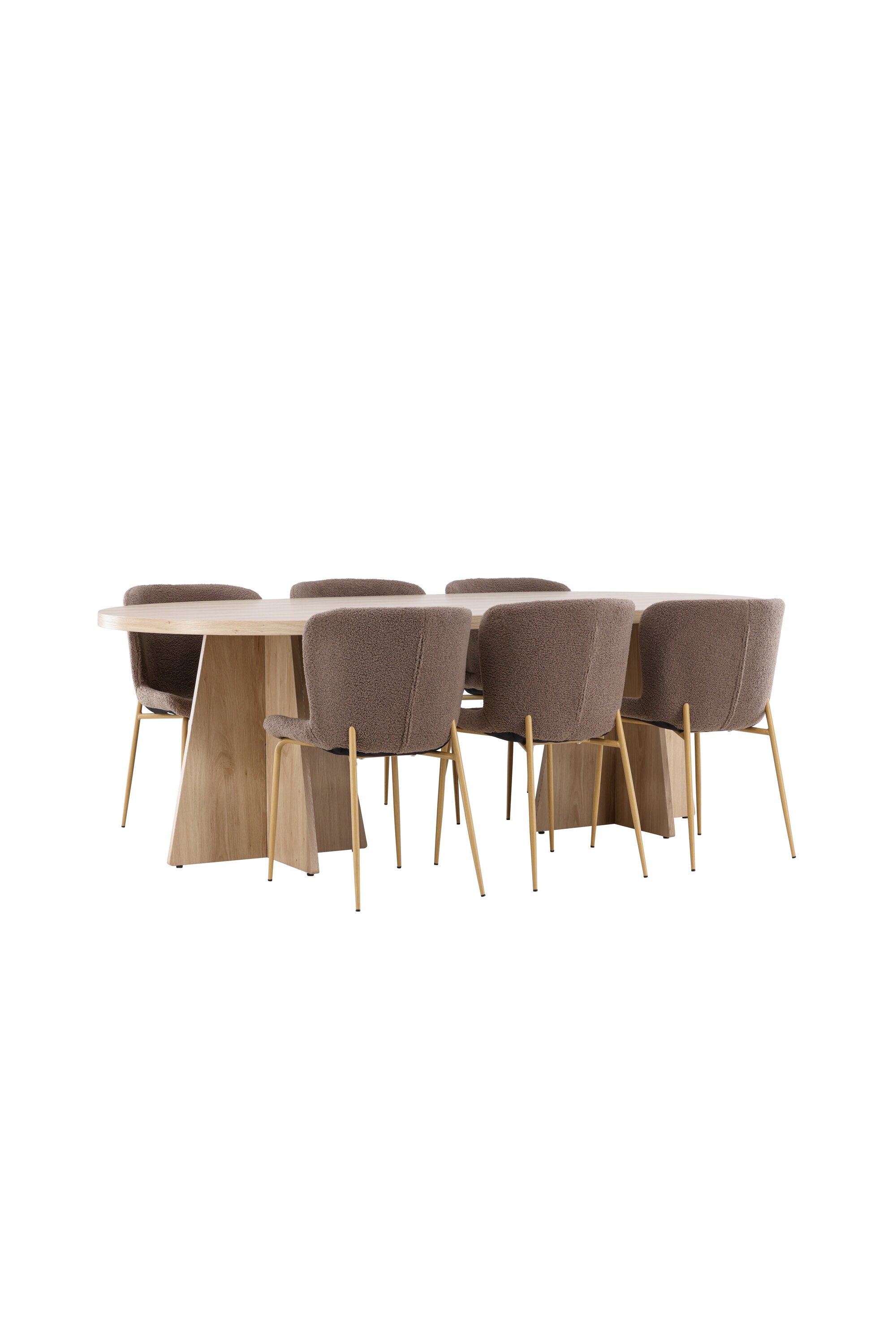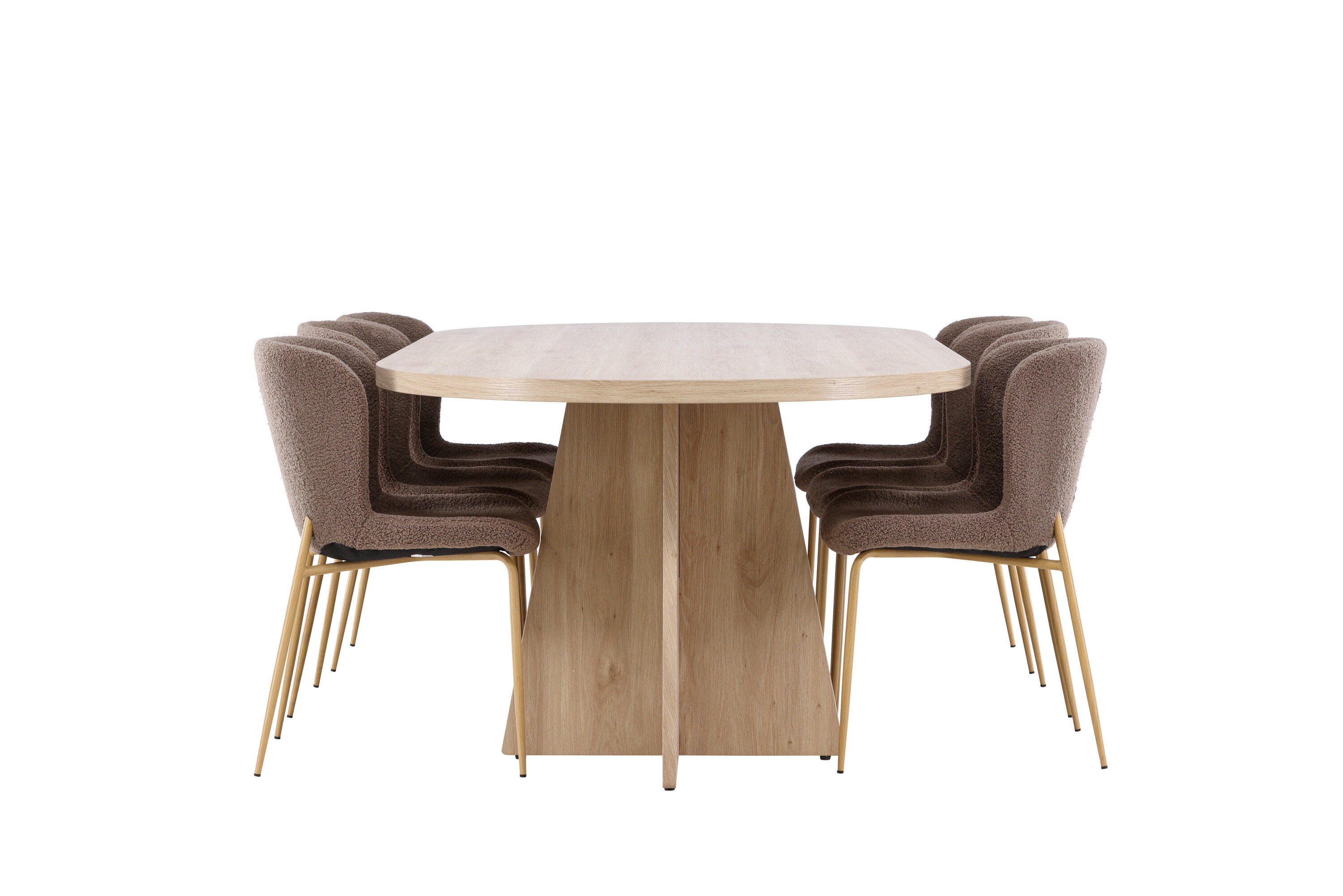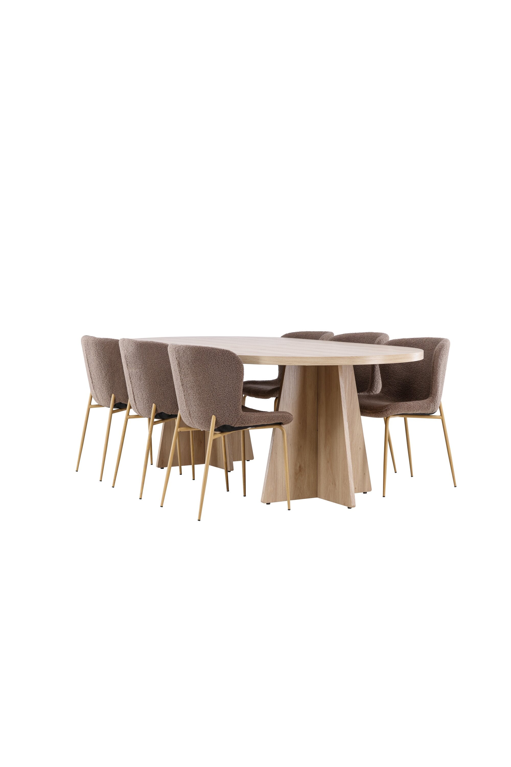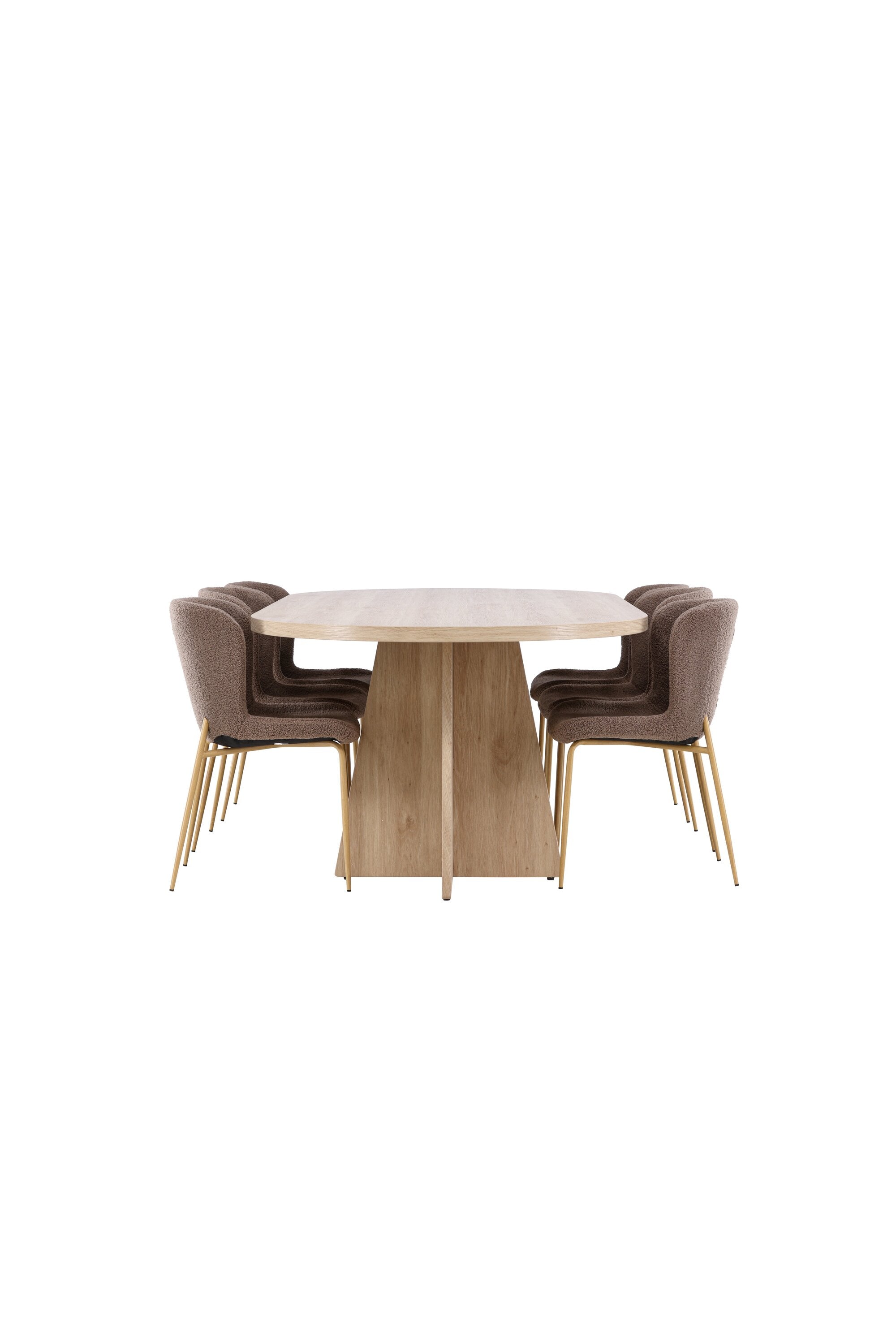 Vytvořte si stylový a příjemný jídelní kout s naší exkluzivní jídelní sadou, která kombinuje trendy design a vysokou funkčnost. Objevte jídelní židli Modesto – trendy a poutavý kus nábytku, který do vaší jídelny vnese hřejivou atmosféru. Sedák židle je čalouněný příjemným plyšovým materiálem v elegantní hnědé barvě, nohy jsou ocelové a mají krásnou mocca barvu. Se svou zemitou estetikou a trendy designem je jídelní židle Modesto dokonalým doplňkem vašeho interiéru. Poutavá kombinace materiálů a barev dodá vaší jídelně moderní a stylový výraz. Dodejte svému domovu nádech elegance a vytvořte u svého jídelního stolu příjemnou atmosféru s jídelní židlí Modesto. Pohodlné a stylové místo, kde si můžete vychutnat dobré jídlo a vytvořit nezapomenutelné chvíle s rodinou a přáteli. Objevte krásu a funkčnost jídelního stolu Bootcut - perfektní volba pro vytvoření nezapomenutelných okamžiků s přáteli a rodinou. S působivými rozměry 230x115 cm nabízí tento stůl dostatek prostoru pro společenské večeře a dlouhé rozhovory. Jídelní stůl Bootcut je dodáván v nádherné bílé barvě, která dodá vašemu pokoji zemitý nádech. Jeho skandinávský design a čisté linie přispívají ke stylové a moderní atmosféře vašeho domova. Vytvořte příjemnou atmosféru a nechte jídelní stůl Bootcut být středem vašich společenských setkání. Ať už se jedná o rodinnou večeři nebo slavnostní příležitosti, tento působivý stůl udělá z každé příležitosti nezapomenutelnou. Dodejte svému domovu nádech jednoduché elegance a pospolitosti s jídelním stolem Bootcut – perfektním místem pro setkání vašich blízkých a vytvoření trvalých společných vzpomínek.