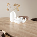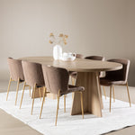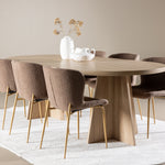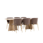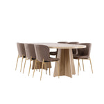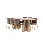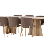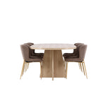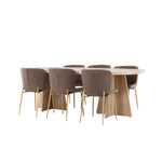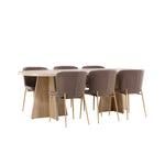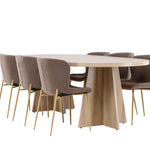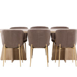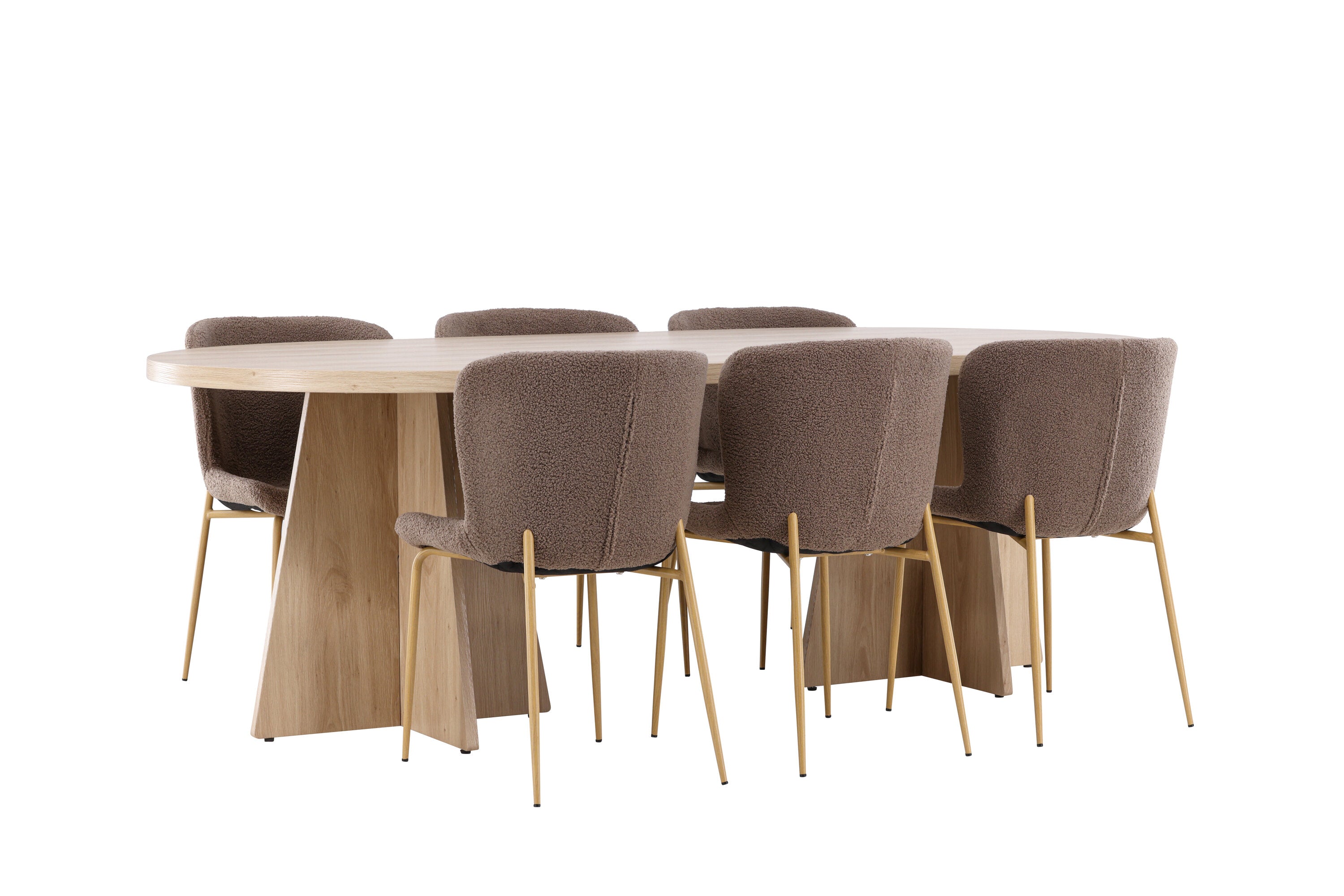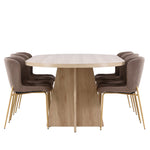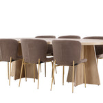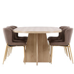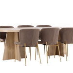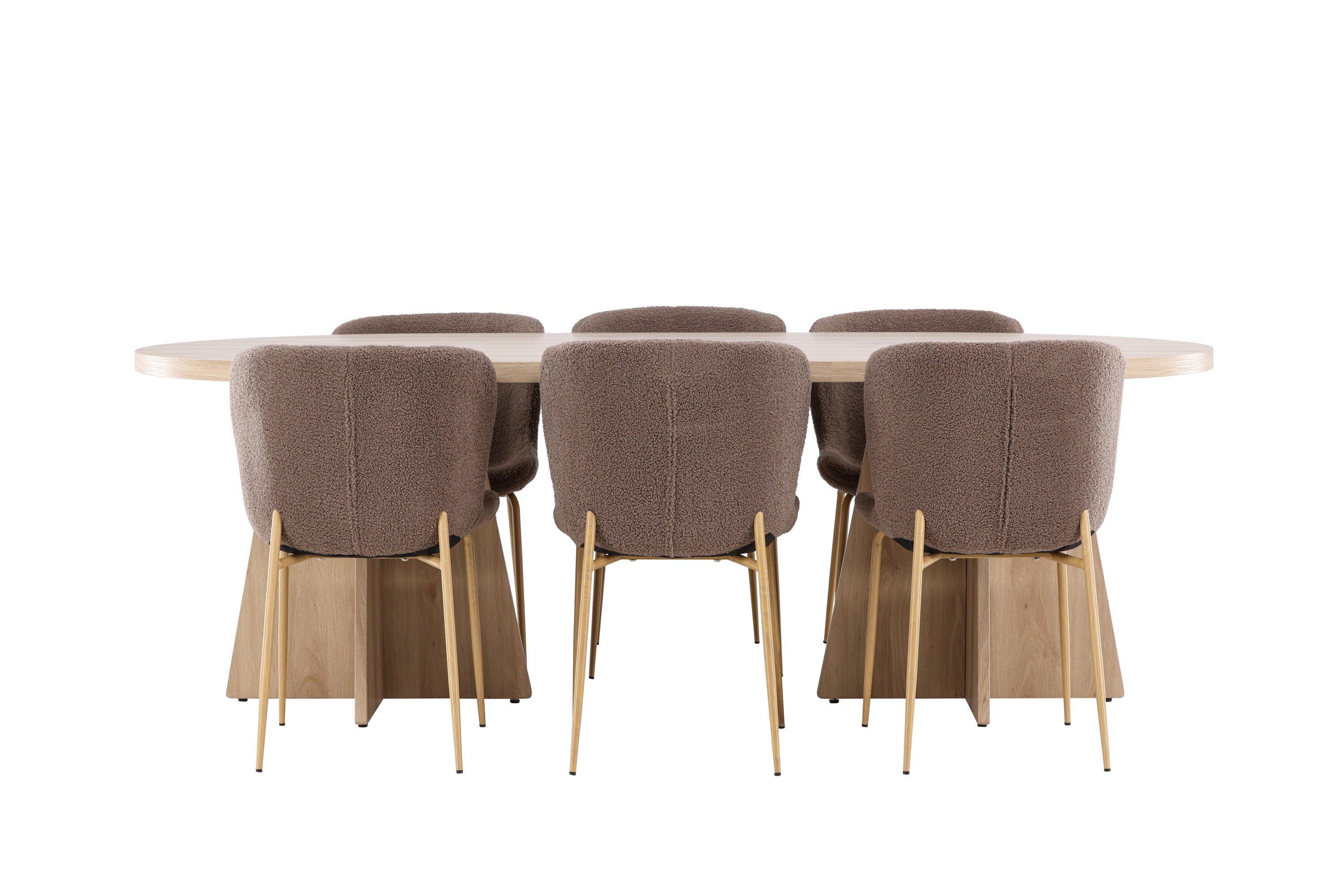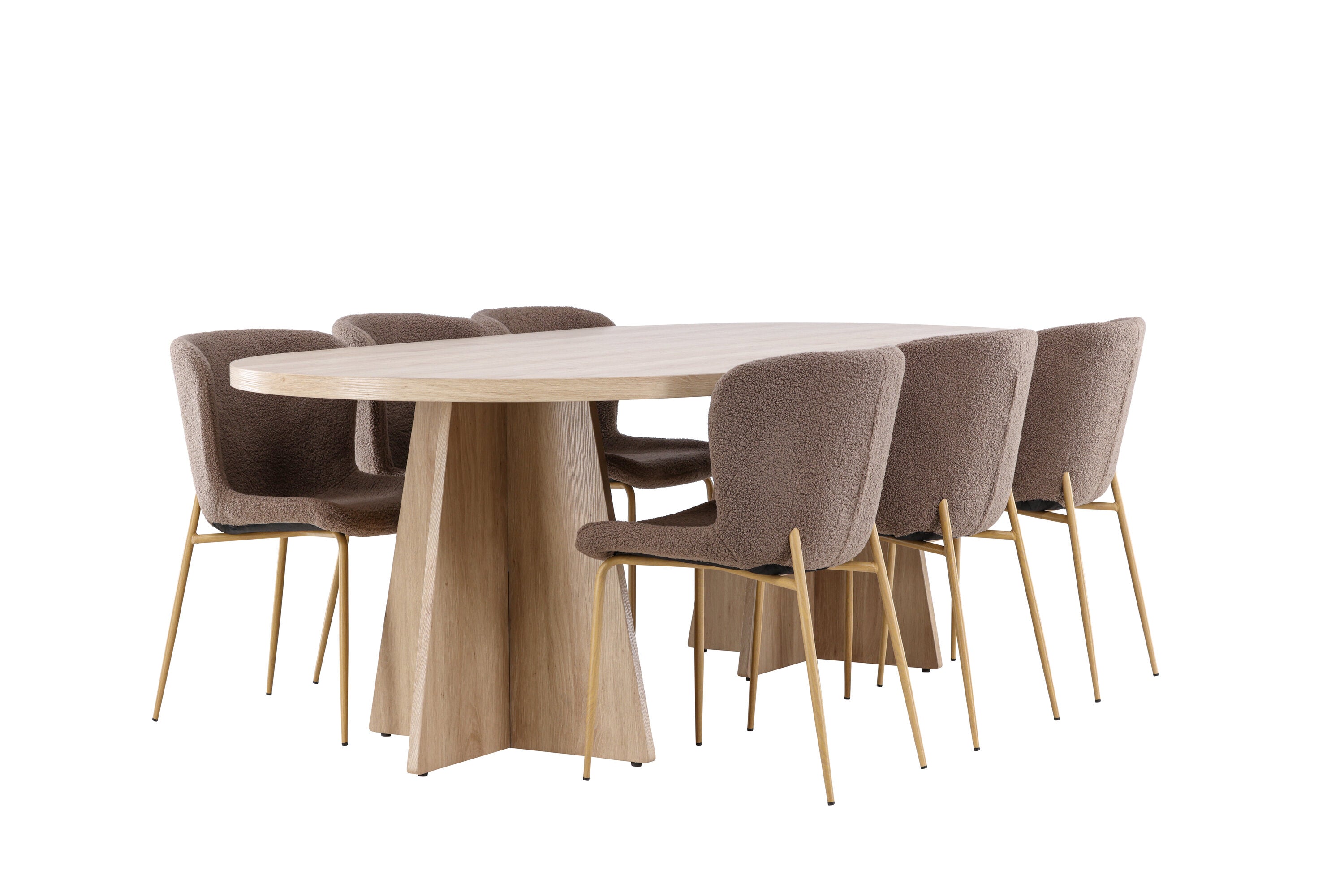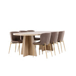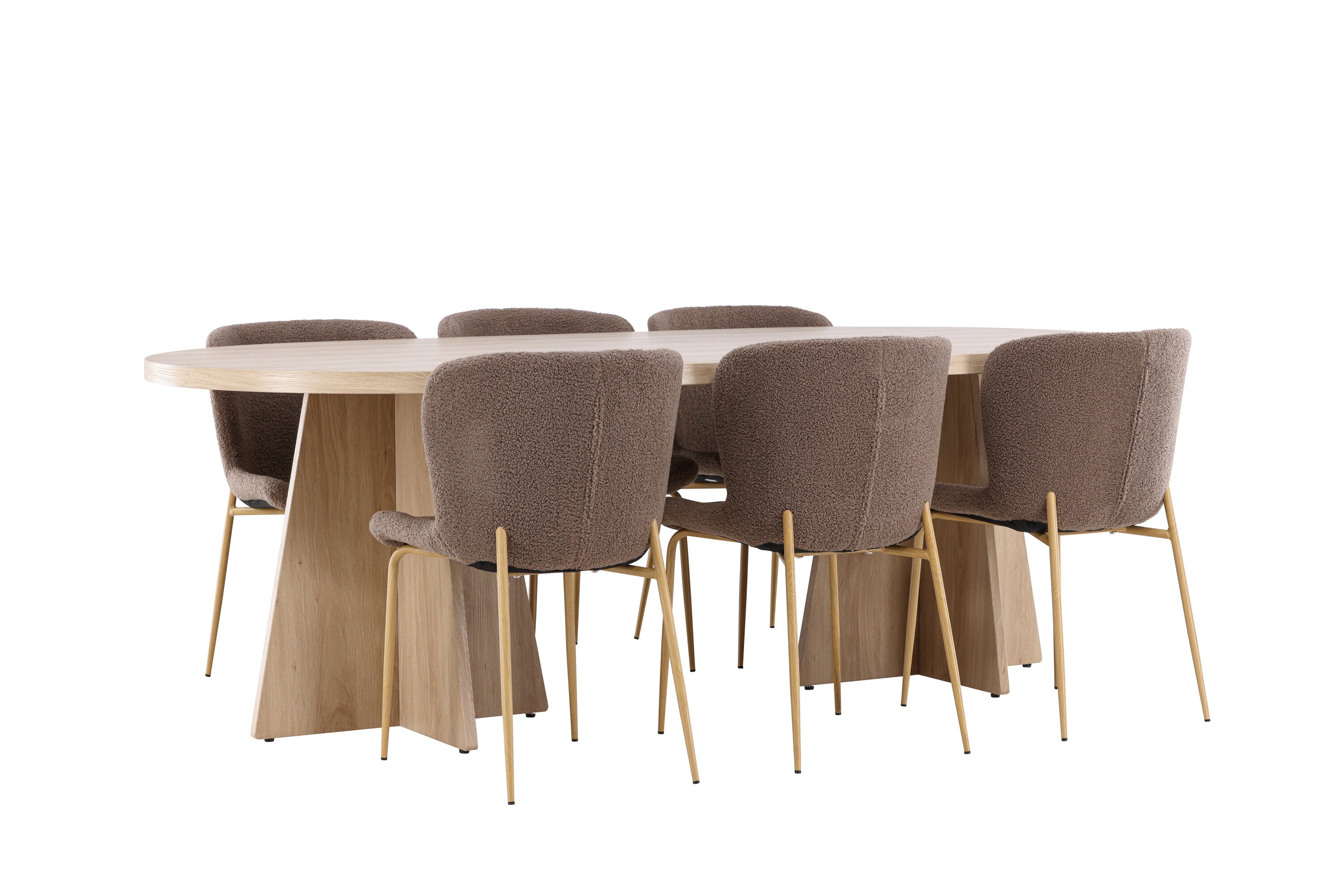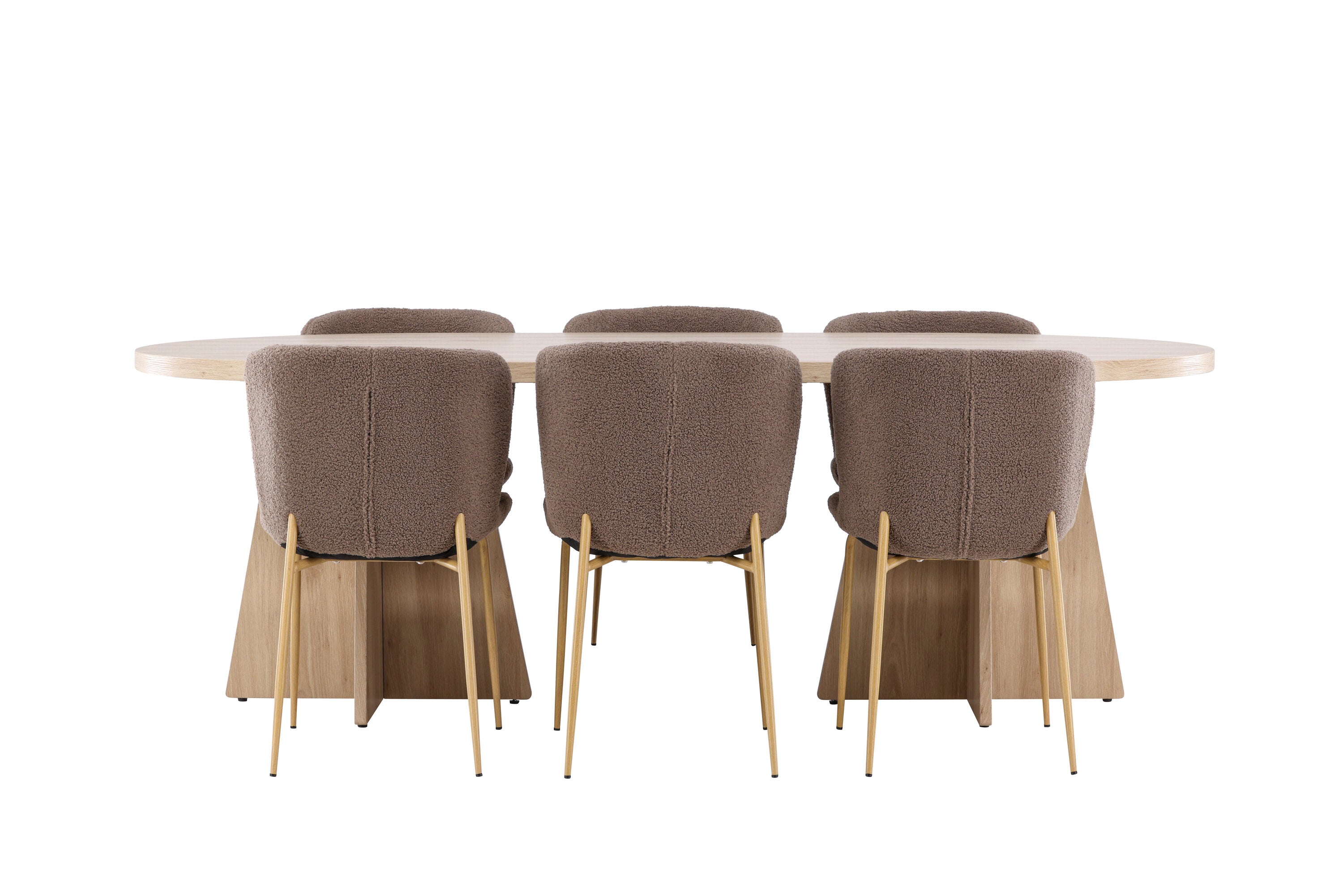 Vytvořte si stylový a příjemný jídelní kout s naší exkluzivní jídelní sadou, která kombinuje trendy design a vysokou funkčnost. Objevte jídelní židli Modesto – trendy a poutavý kus nábytku, který do vaší jídelny vnese hřejivou atmosféru. Sedák židle je čalouněný příjemným plyšovým materiálem v elegantní hnědé barvě, nohy jsou ocelové a mají krásnou mocca barvu. Se svou zemitou estetikou a trendy designem je jídelní židle Modesto dokonalým doplňkem vašeho interiéru. Poutavá kombinace materiálů a barev dodá vaší jídelně moderní a stylový výraz. Dodejte svému domovu nádech elegance a vytvořte u svého jídelního stolu příjemnou atmosféru s jídelní židlí Modesto. Pohodlné a stylové místo, kde si můžete vychutnat dobré jídlo a vytvořit nezapomenutelné chvíle s rodinou a přáteli. Objevte krásu a funkčnost jídelního stolu Bootcut - perfektní volba pro vytvoření nezapomenutelných okamžiků s přáteli a rodinou. S působivými rozměry 230x115 cm nabízí tento stůl dostatek prostoru pro společenské večeře a dlouhé rozhovory. Jídelní stůl Bootcut je dodáván v nádherné bílé barvě, která dodá vašemu pokoji zemitý nádech. Jeho skandinávský design a čisté linie přispívají ke stylové a moderní atmosféře vašeho domova. Vytvořte příjemnou atmosféru a nechte jídelní stůl Bootcut být středem vašich společenských setkání. Ať už se jedná o rodinnou večeři nebo slavnostní příležitosti, tento působivý stůl udělá z každé příležitosti nezapomenutelnou. Dodejte svému domovu nádech jednoduché elegance a pospolitosti s jídelním stolem Bootcut – perfektním místem pro setkání vašich blízkých a vytvoření trvalých společných vzpomínek.