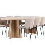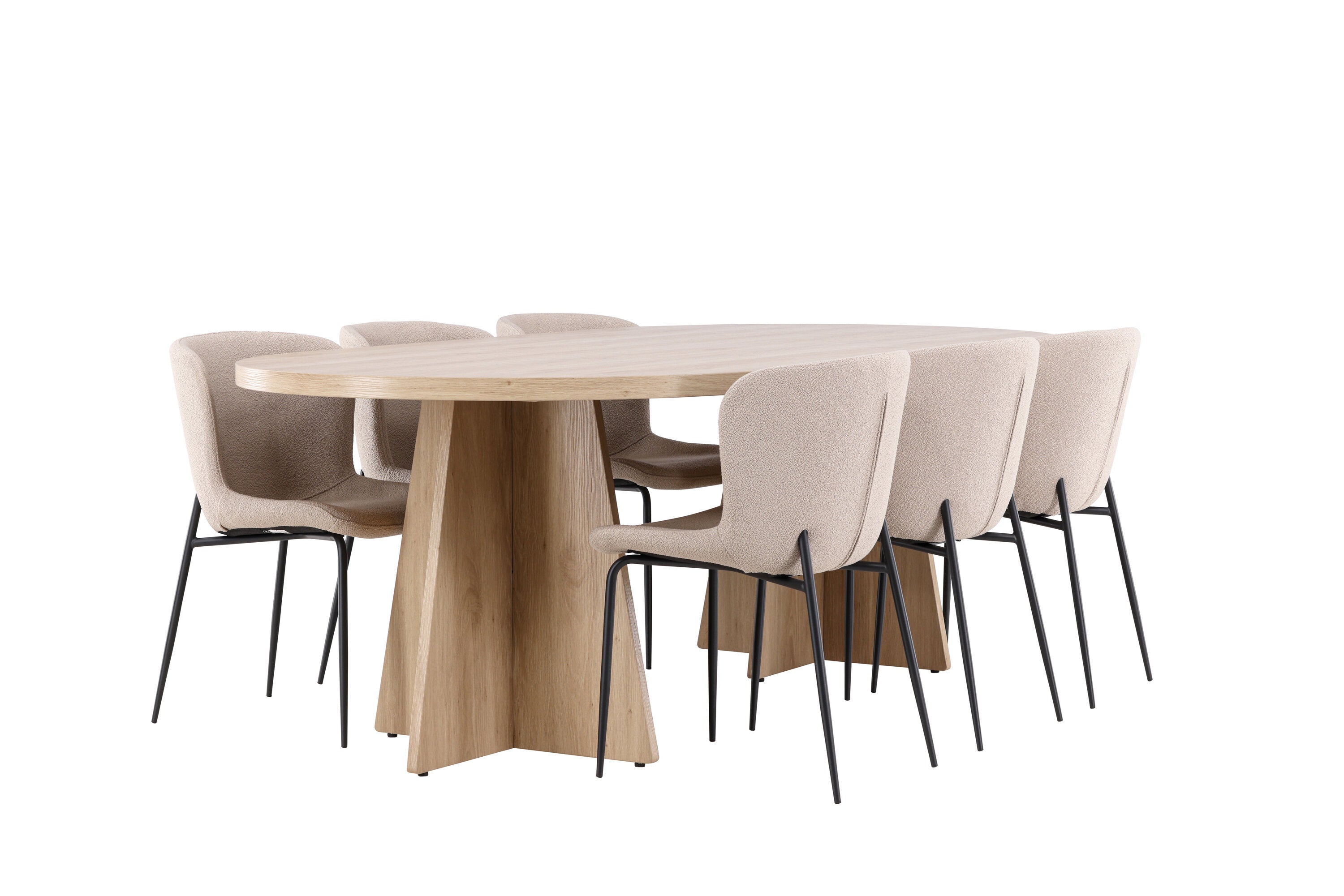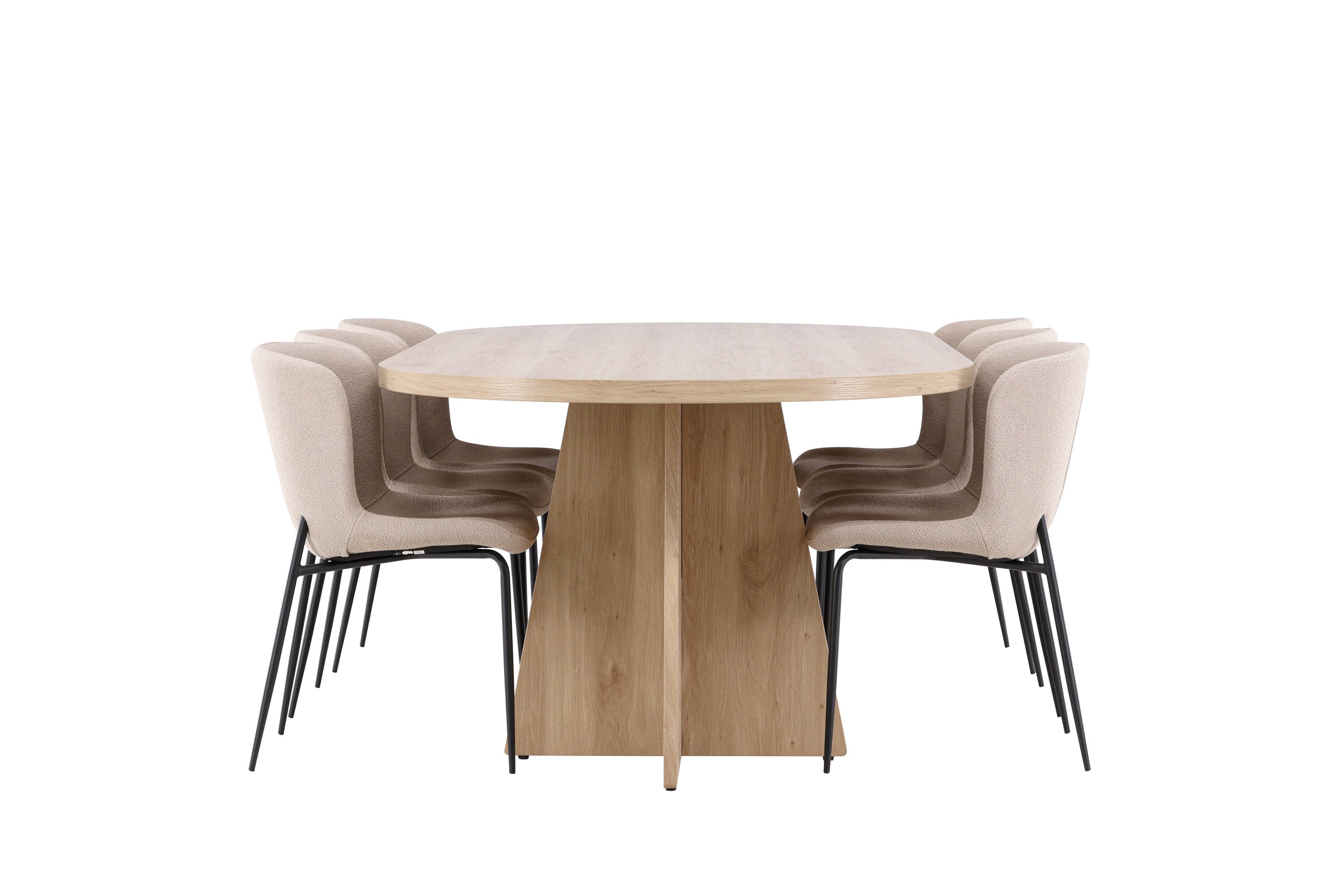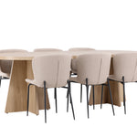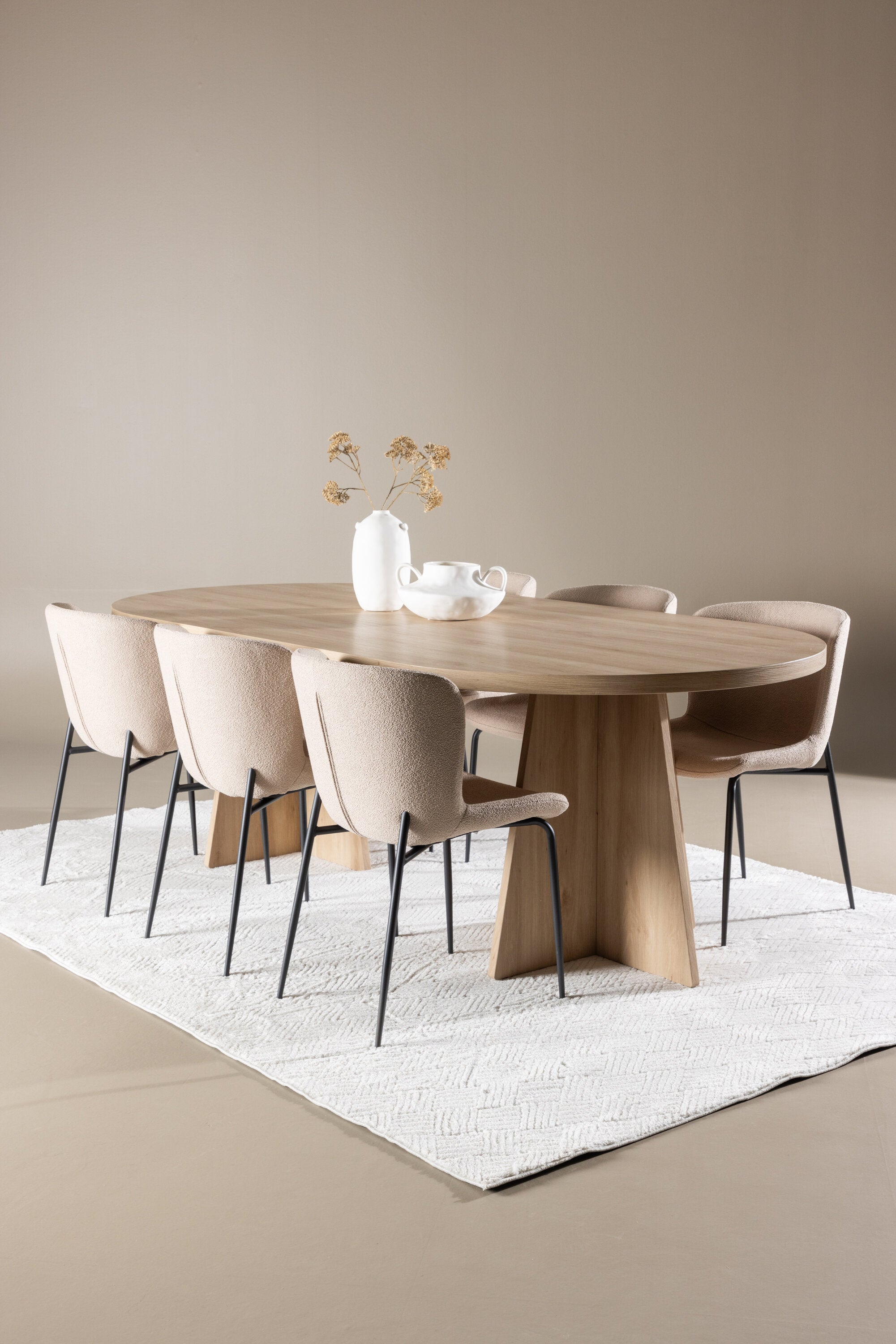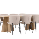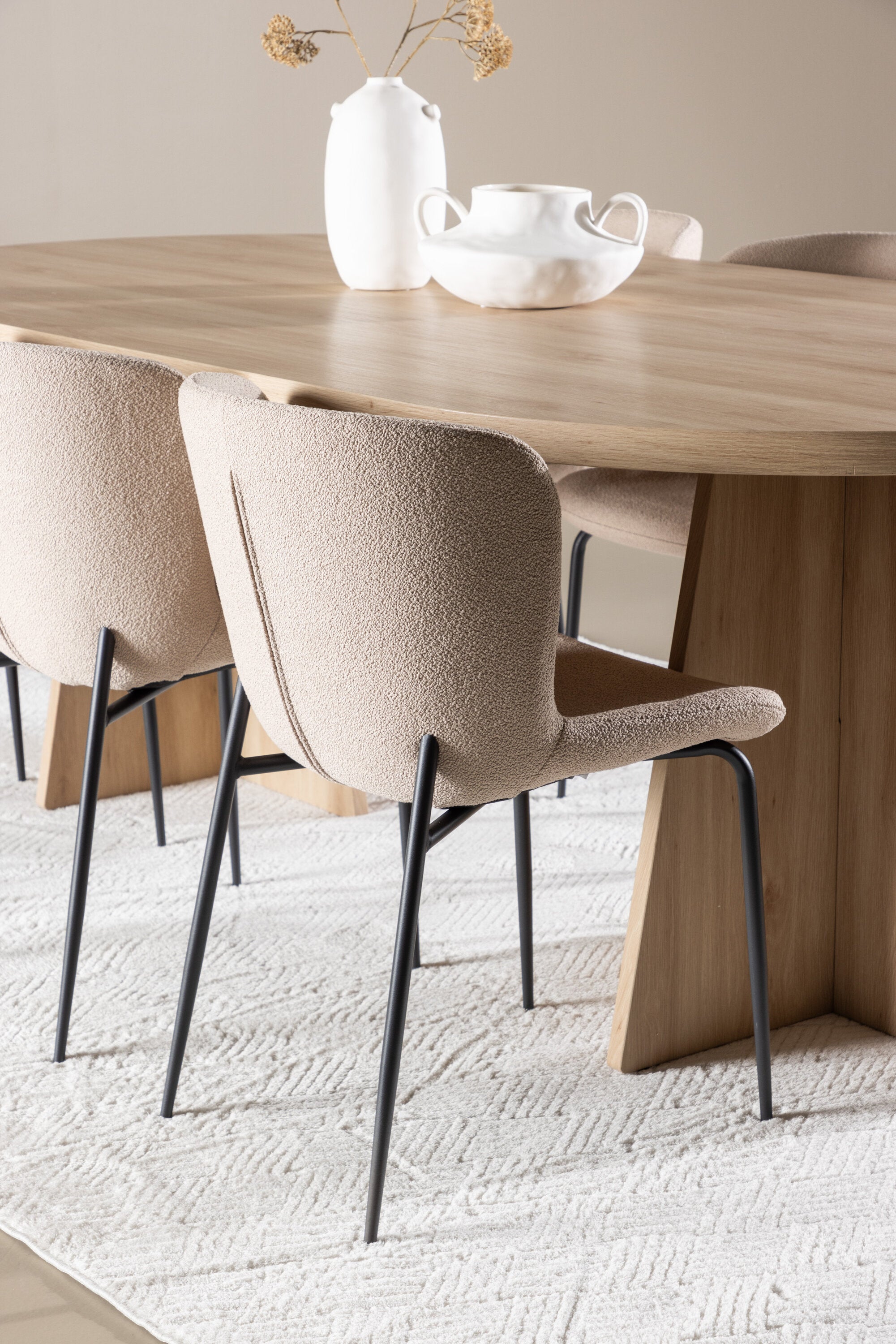 Vytvořte si elegantní a příjemný kulinářský zážitek s naší fantastickou jídelní sadou, která kombinuje moderní skandinávský design a pohodlí pro povznesení atmosféry vašeho domova. Modesto - naše oblíbená jídelní židle, která je stejně trendy jako pohodlná! Tato měkká jídelní židle je celočalouněná béžovou huňatou buklé látkou s elegantními štíhlými nohami v černém kovu. Mírně zaoblená záda a polstrovaný sedák poskytují extra pohodlí a prodlužují příjemné stolování u jídelního stolu. Díky svému skandinávskému designu vytváří Modesto vřelou a příjemnou atmosféru v srdci domova. Posedět u dobrého jídla by měl být dobrý pocit! Objevte krásu a funkčnost jídelního stolu Bootcut - perfektní volba pro vytvoření nezapomenutelných okamžiků s přáteli a rodinou. S působivými rozměry 230x115 cm nabízí tento stůl dostatek prostoru pro společenské večeře a dlouhé rozhovory. Jídelní stůl Bootcut je dodáván v nádherné bílé barvě, která dodá vašemu pokoji zemitý nádech. Jeho skandinávský design a čisté linie přispívají ke stylové a moderní atmosféře vašeho domova. Nechte jídelní stůl Bootcut být středem vašich společenských setkání a vytvořte si společně trvalé vzpomínky. Ať už se jedná o rodinnou večeři nebo slavnostní příležitosti, tento působivý stůl udělá z každé příležitosti nezapomenutelnou. Dodejte svému domovu nádech jednoduché elegance a soudržnosti s jídelním stolem Bootcut - perfektním místem pro setkání vašich blízkých.