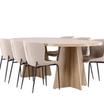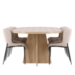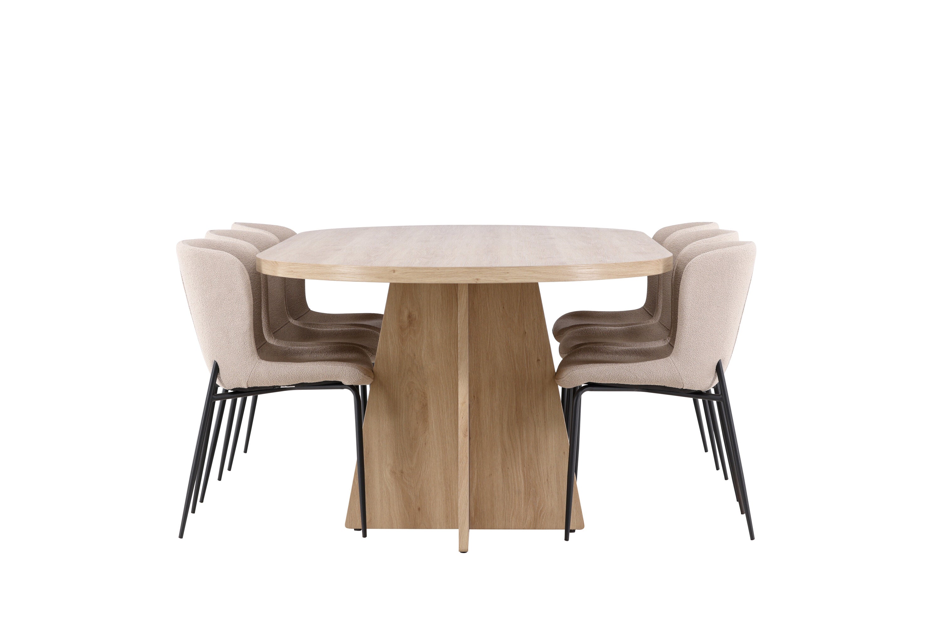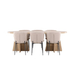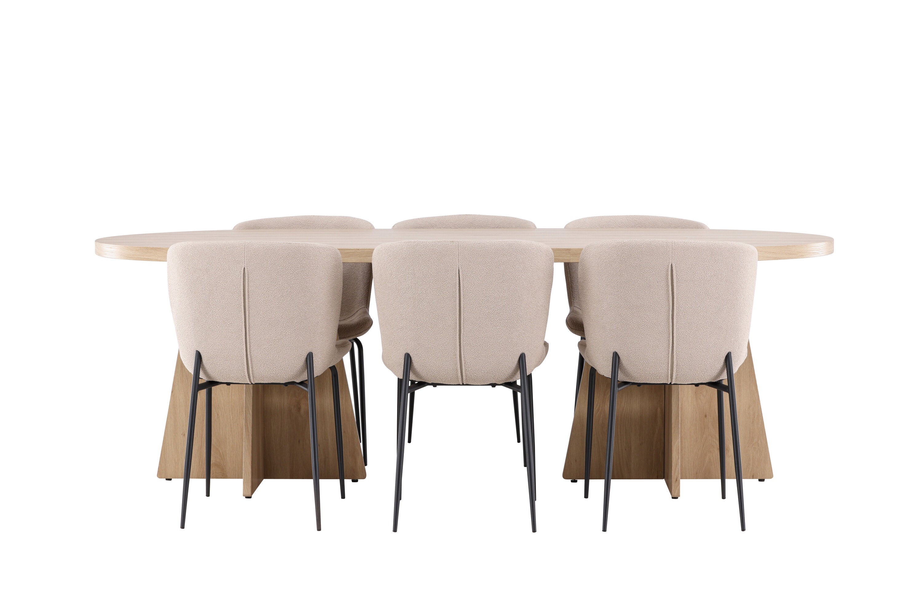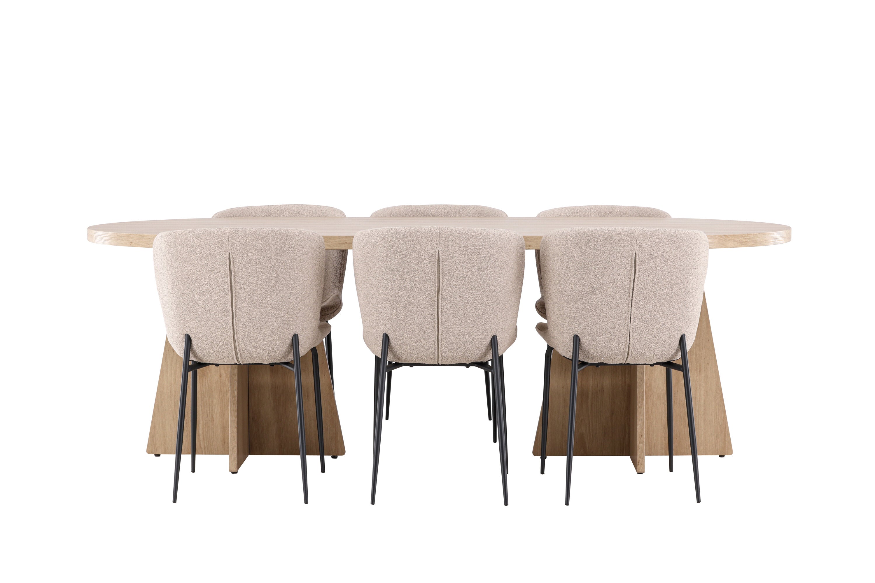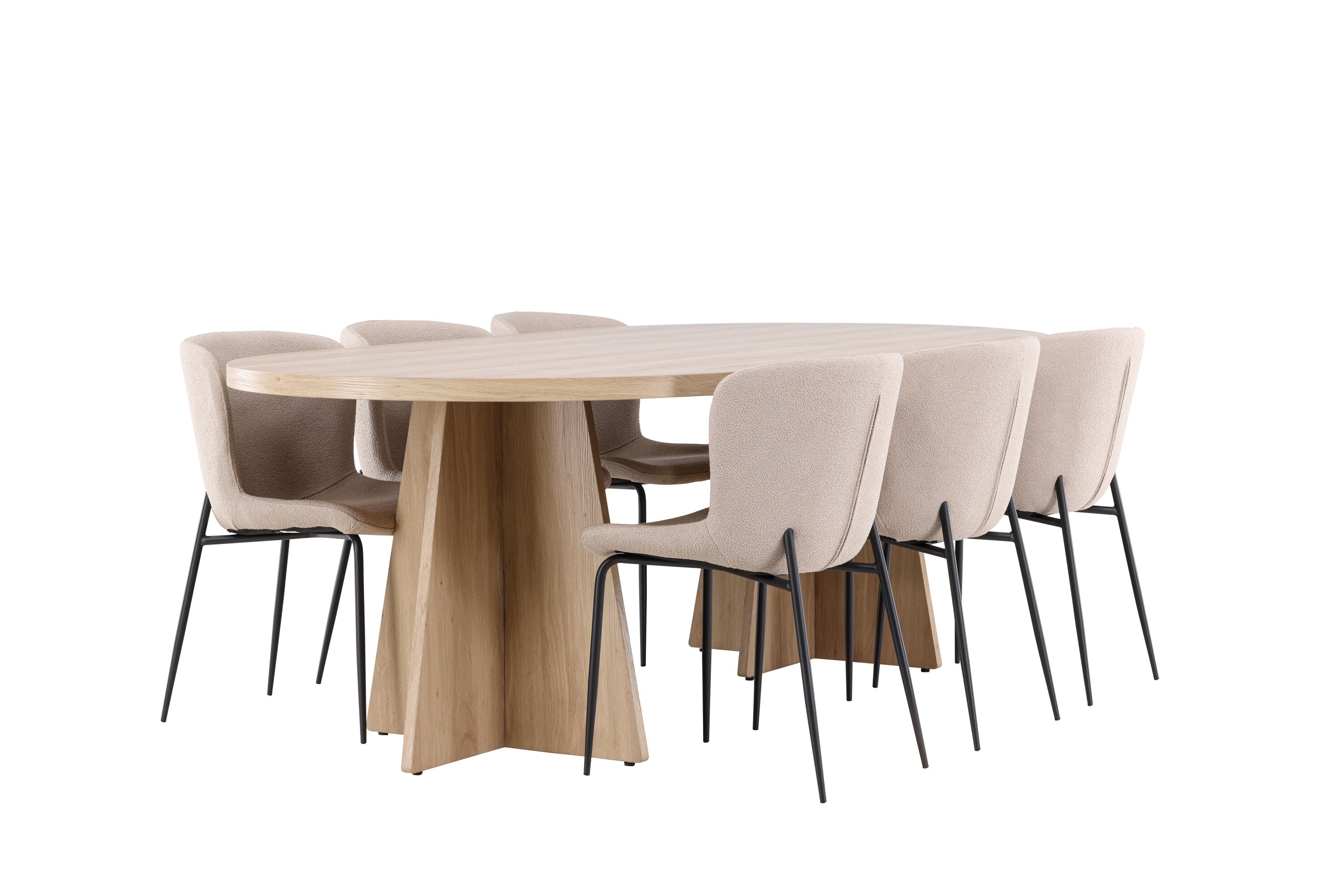 Vytvořte si elegantní a příjemný kulinářský zážitek s naší fantastickou jídelní sadou, která kombinuje moderní skandinávský design a pohodlí pro povznesení atmosféry vašeho domova. Modesto - naše oblíbená jídelní židle, která je stejně trendy jako pohodlná! Tato měkká jídelní židle je celočalouněná béžovou huňatou buklé látkou s elegantními štíhlými nohami v černém kovu. Mírně zaoblená záda a polstrovaný sedák poskytují extra pohodlí a prodlužují příjemné stolování u jídelního stolu. Díky svému skandinávskému designu vytváří Modesto vřelou a příjemnou atmosféru v srdci domova. Posedět u dobrého jídla by měl být dobrý pocit! Objevte krásu a funkčnost jídelního stolu Bootcut - perfektní volba pro vytvoření nezapomenutelných okamžiků s přáteli a rodinou. S působivými rozměry 230x115 cm nabízí tento stůl dostatek prostoru pro společenské večeře a dlouhé rozhovory. Jídelní stůl Bootcut je dodáván v nádherné bílé barvě, která dodá vašemu pokoji zemitý nádech. Jeho skandinávský design a čisté linie přispívají ke stylové a moderní atmosféře vašeho domova. Nechte jídelní stůl Bootcut být středem vašich společenských setkání a vytvořte si společně trvalé vzpomínky. Ať už se jedná o rodinnou večeři nebo slavnostní příležitosti, tento působivý stůl udělá z každé příležitosti nezapomenutelnou. Dodejte svému domovu nádech jednoduché elegance a soudržnosti s jídelním stolem Bootcut - perfektním místem pro setkání vašich blízkých.