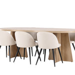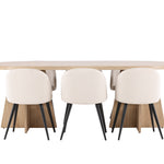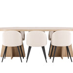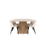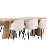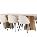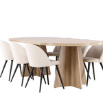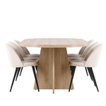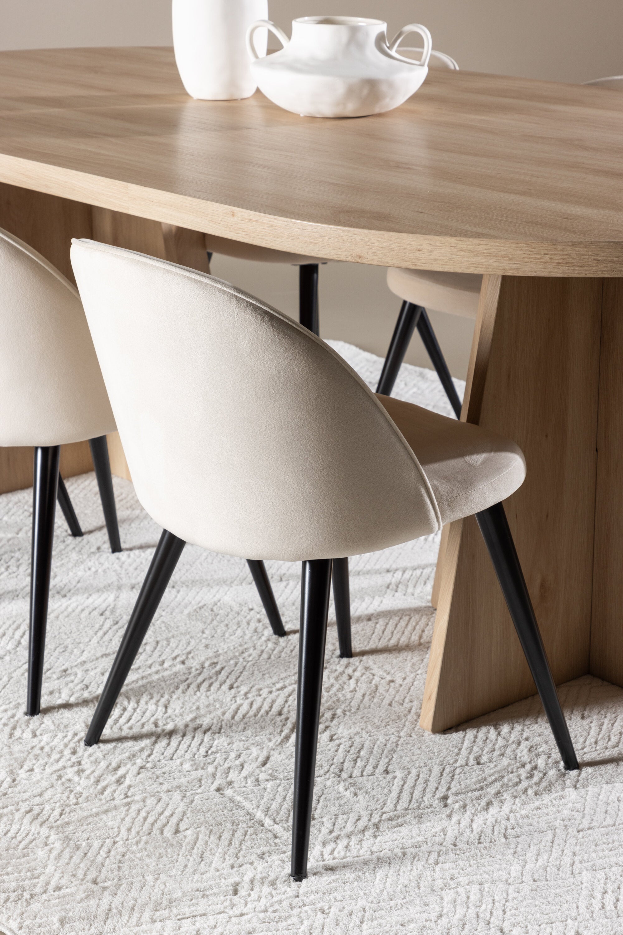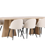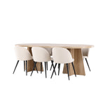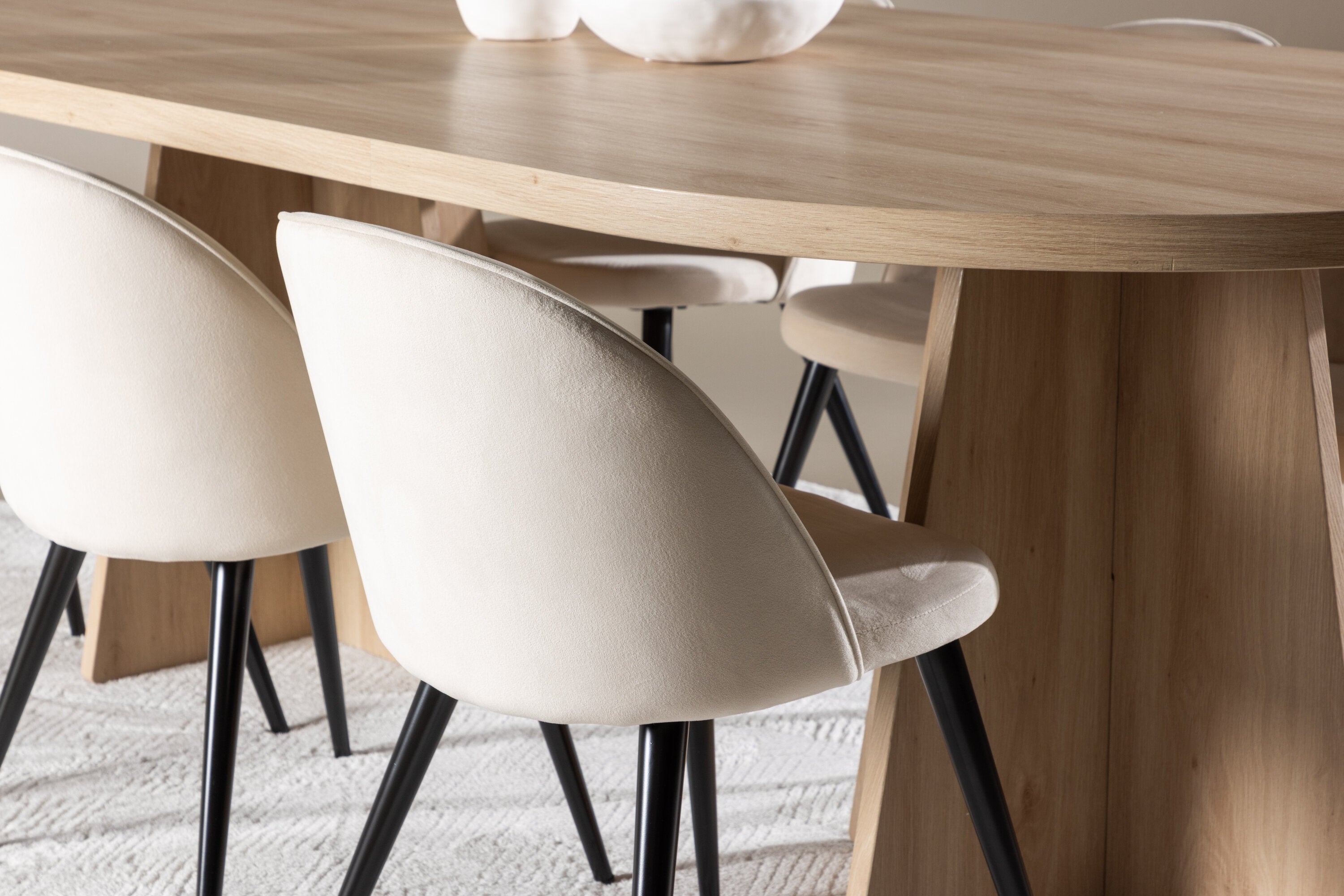 Vytvořte si elegantní a příjemný kulinářský zážitek s naší fantastickou jídelní sadou, která kombinuje moderní design a pohodlí, aby pozdvihla atmosféru vašeho domova. Moderní židle sen ze série Velvet ve stylové béžové barvě! Tato jídelní židle má celočalouněný design s mírně zaobleným opěradlem a sedákem ze sametové látky a nohami z černého kovu s práškovým nástřikem. Zaručeně bude stejně pohodlný jako poutavý. Vybavte srdce svého domova přívětivě a pohodlně a vychutnejte si společně skvělá jídla! Objevte krásu a funkčnost jídelního stolu Bootcut - perfektní volba pro vytvoření nezapomenutelných okamžiků s přáteli a rodinou. S působivými rozměry 230x115 cm nabízí tento stůl dostatek prostoru pro společenské večeře a dlouhé rozhovory. Jídelní stůl Bootcut je dodáván v nádherné bílé barvě, která dodá vašemu pokoji zemitý nádech. Jeho skandinávský design a čisté linie přispívají ke stylové a moderní atmosféře vašeho domova. Nechte jídelní stůl Bootcut být středem vašich společenských setkání a vytvořte si společně trvalé vzpomínky. Ať už se jedná o rodinnou večeři nebo slavnostní příležitosti, tento působivý stůl udělá z každé příležitosti nezapomenutelnou. Dodejte svému domovu nádech jednoduché elegance a soudržnosti s jídelním stolem Bootcut - perfektním místem pro setkání vašich blízkých.