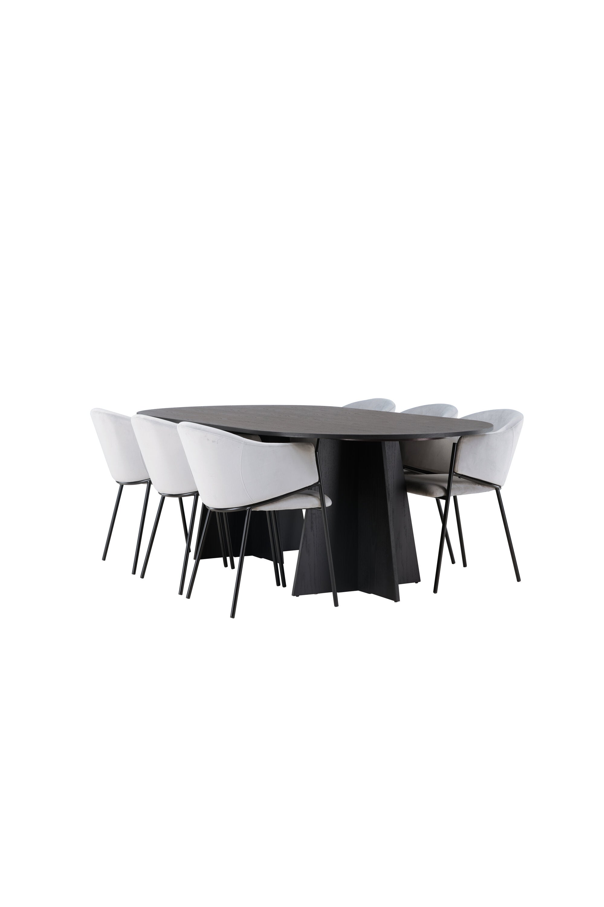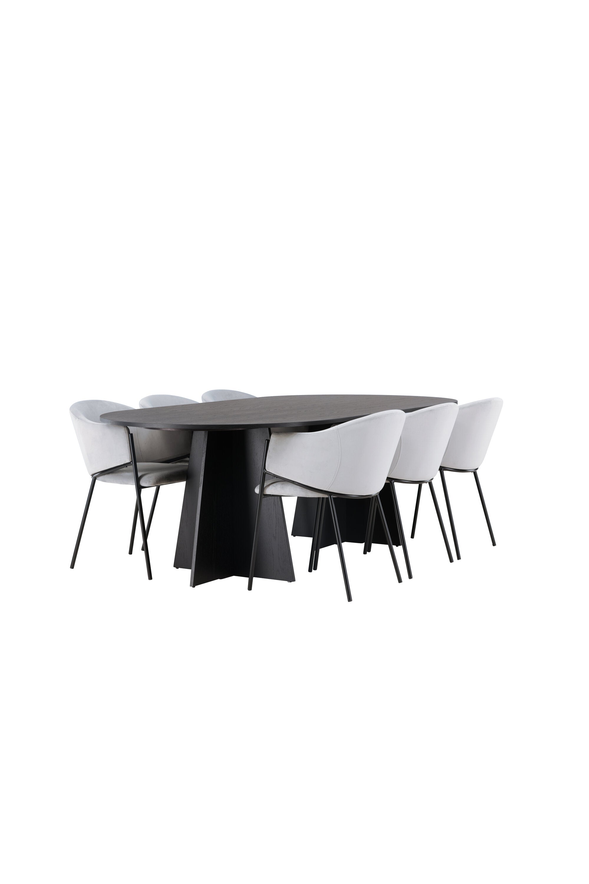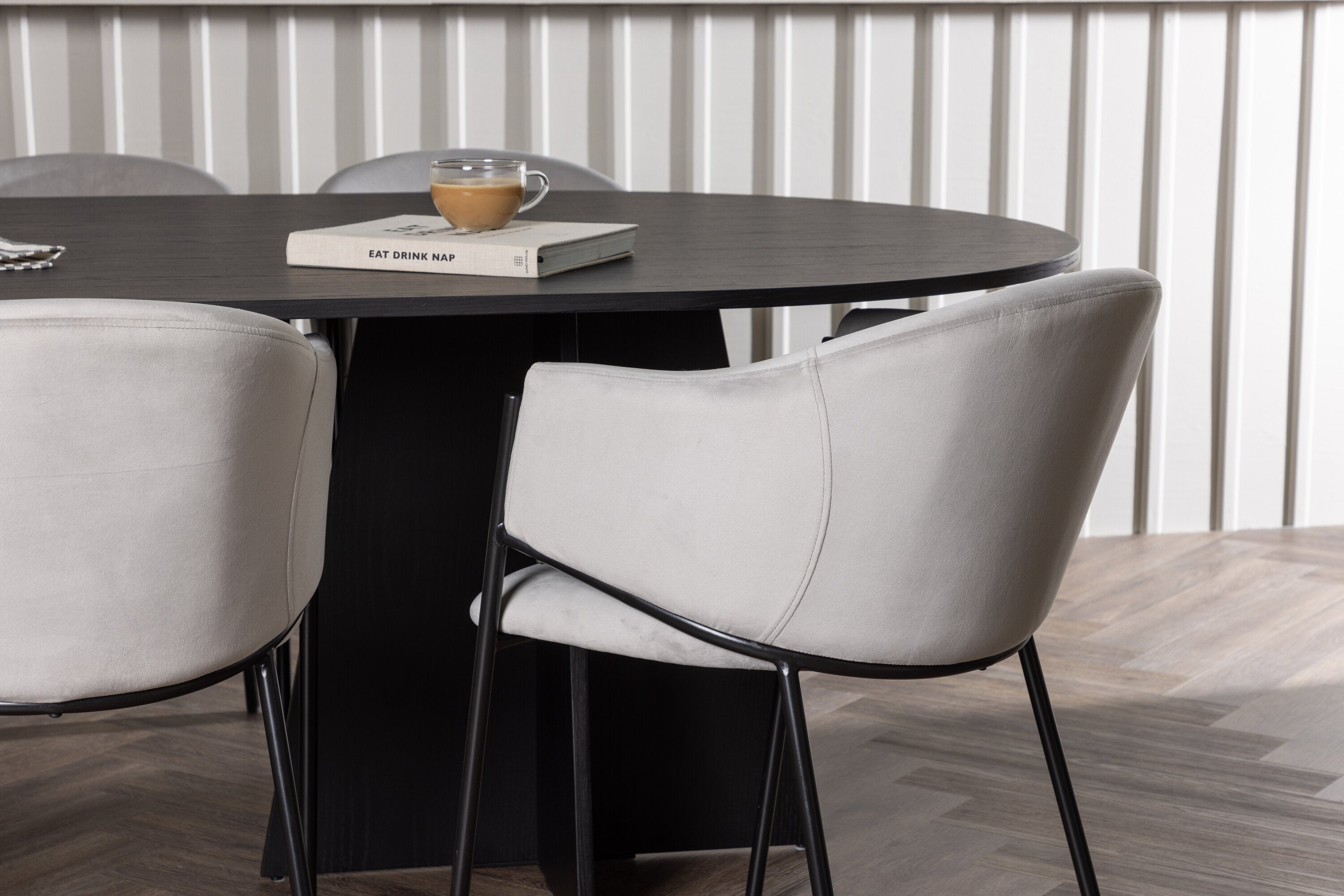 Bootcut Oválný jídelní stůl - Černá / Černá Fanéer + Jídelní židle Evelina - Černá / Světle šedá Velvet _6
