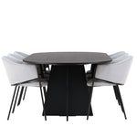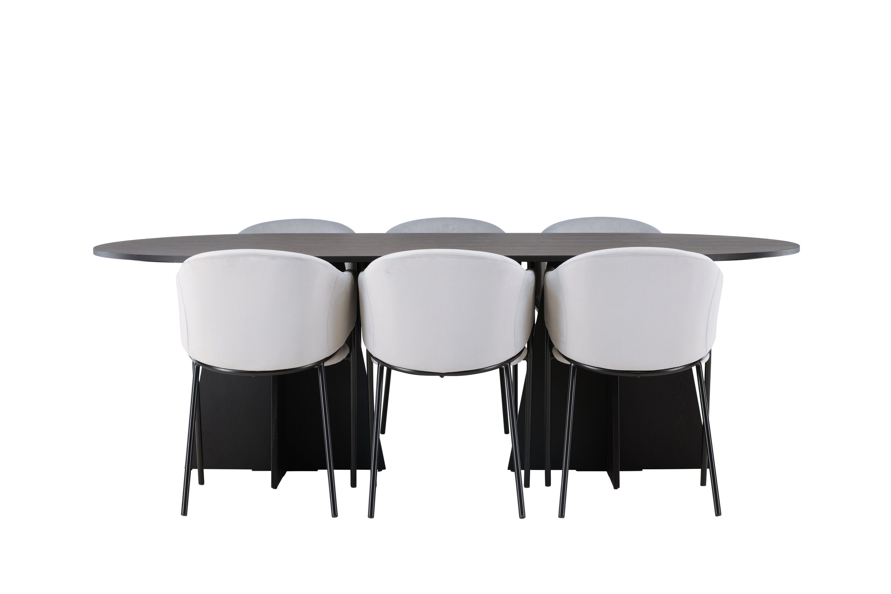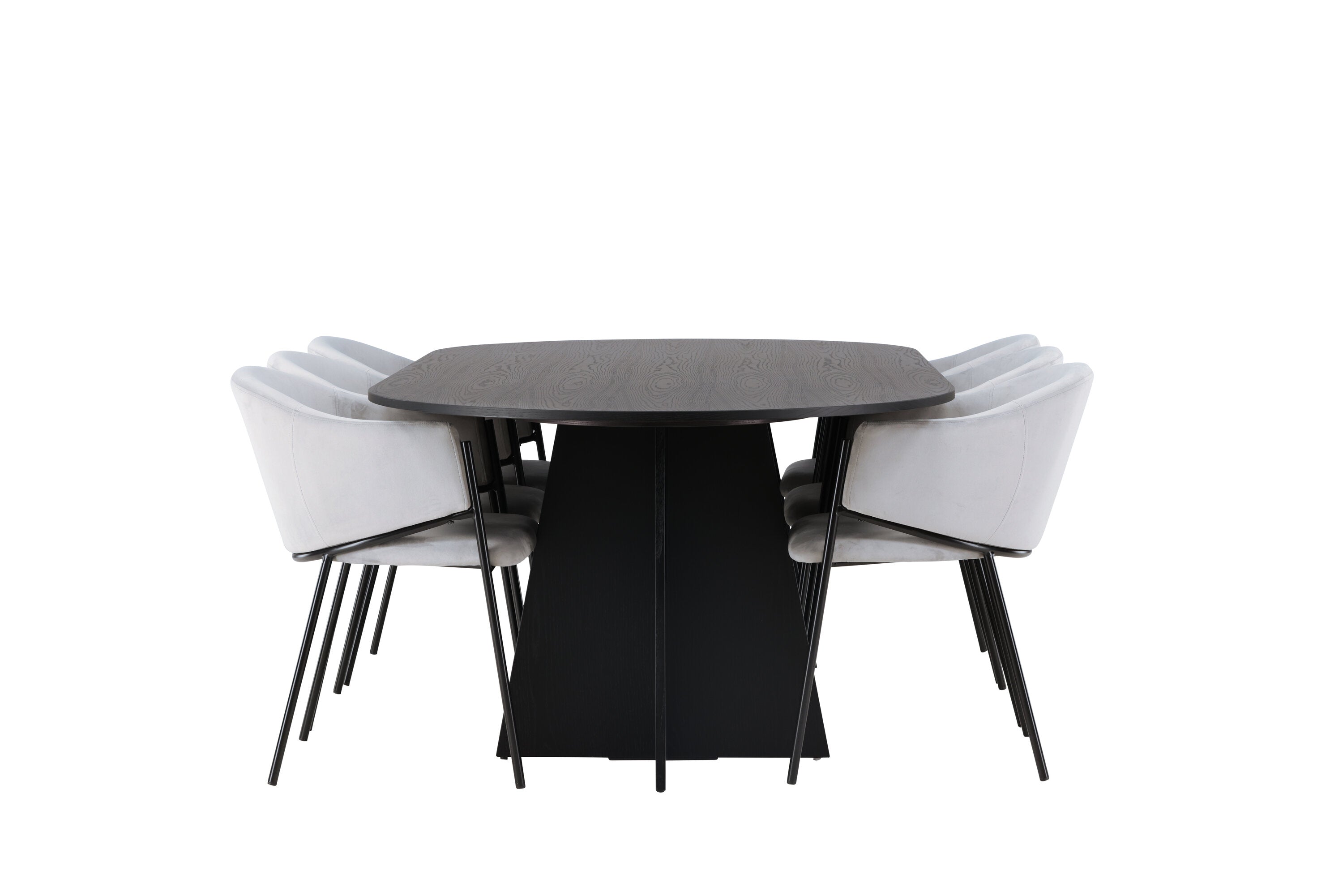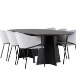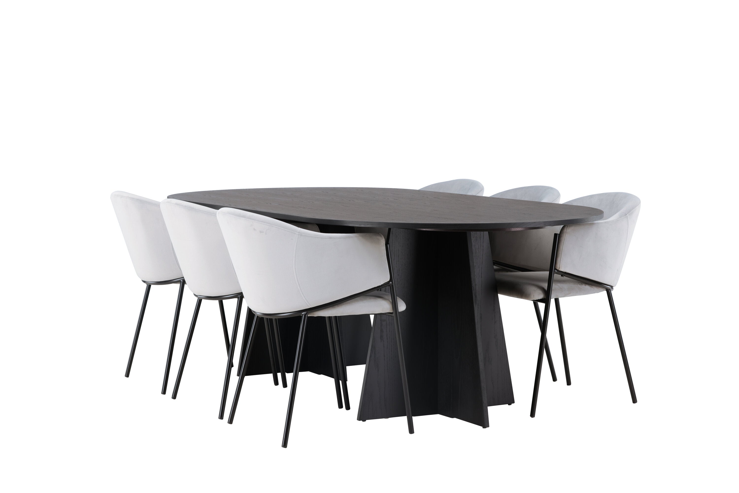 Bootcut Oválný jídelní stůl - Černá / Černá Fanéer + Jídelní židle Evelina - Černá / Světle šedá Velvet _6