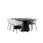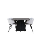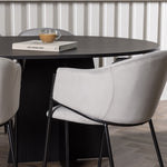 Zde jsme to spárovali s našimi nádhernými a elegantními jídelními židlemi ze série Evelina. Tyto židle vnesou do vašeho jídelního prostoru moderní atmosféru a zároveň nabízejí nádherné pohodlí. S celočalouněnými sedadly a zaoblenými opěradly ze světle šedé sametové látky se každé místo k sezení stává luxusním zážitkem. Minimalistický černý ocelový rám dodává židlím elegantní nádech celkového vzhledu.