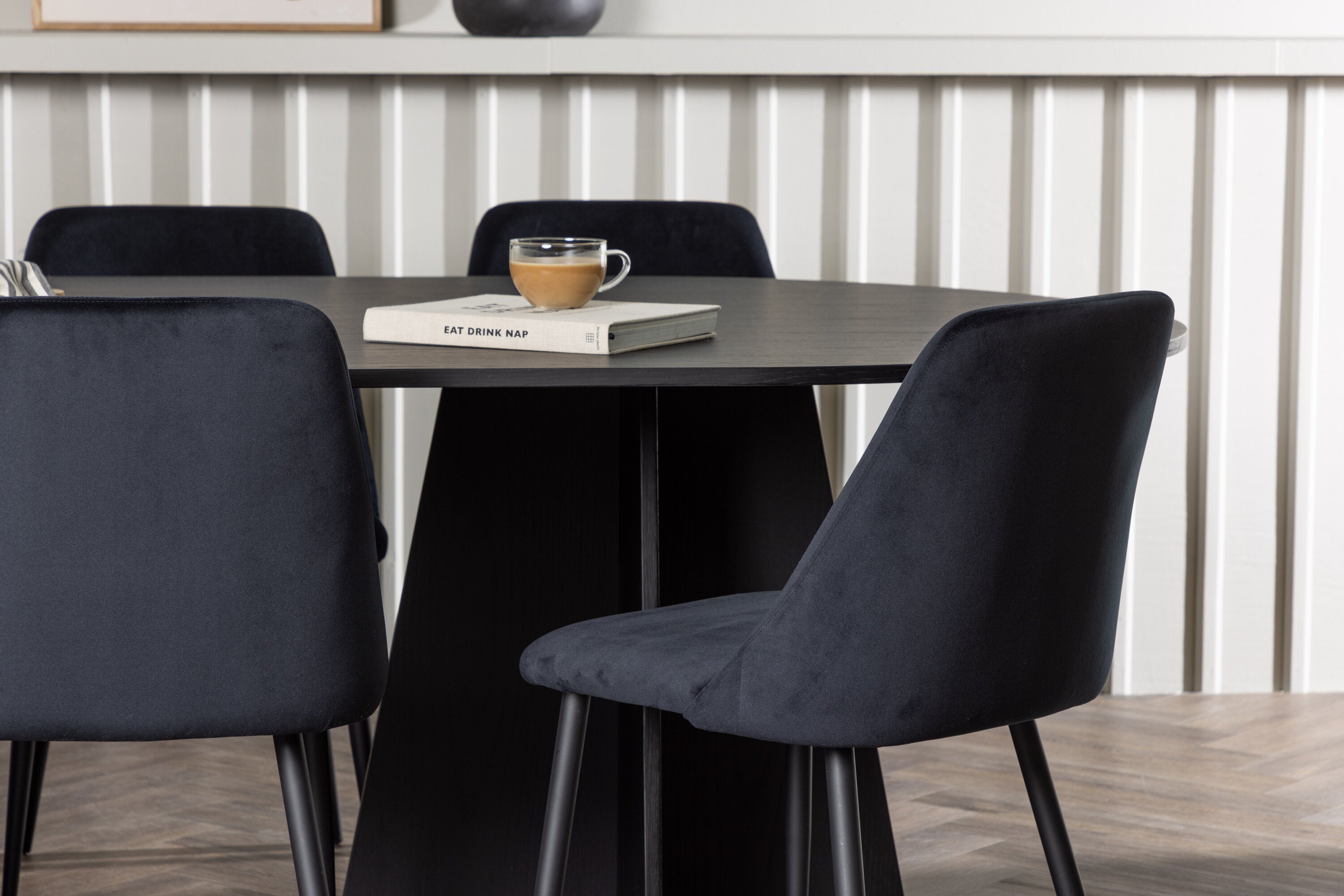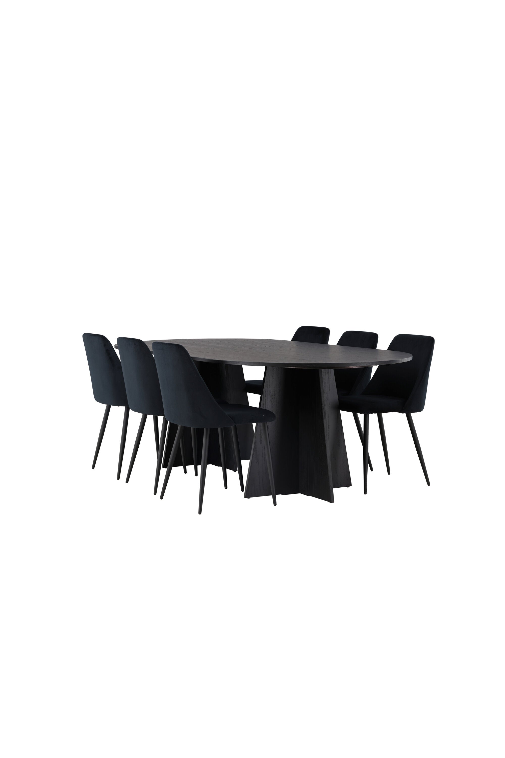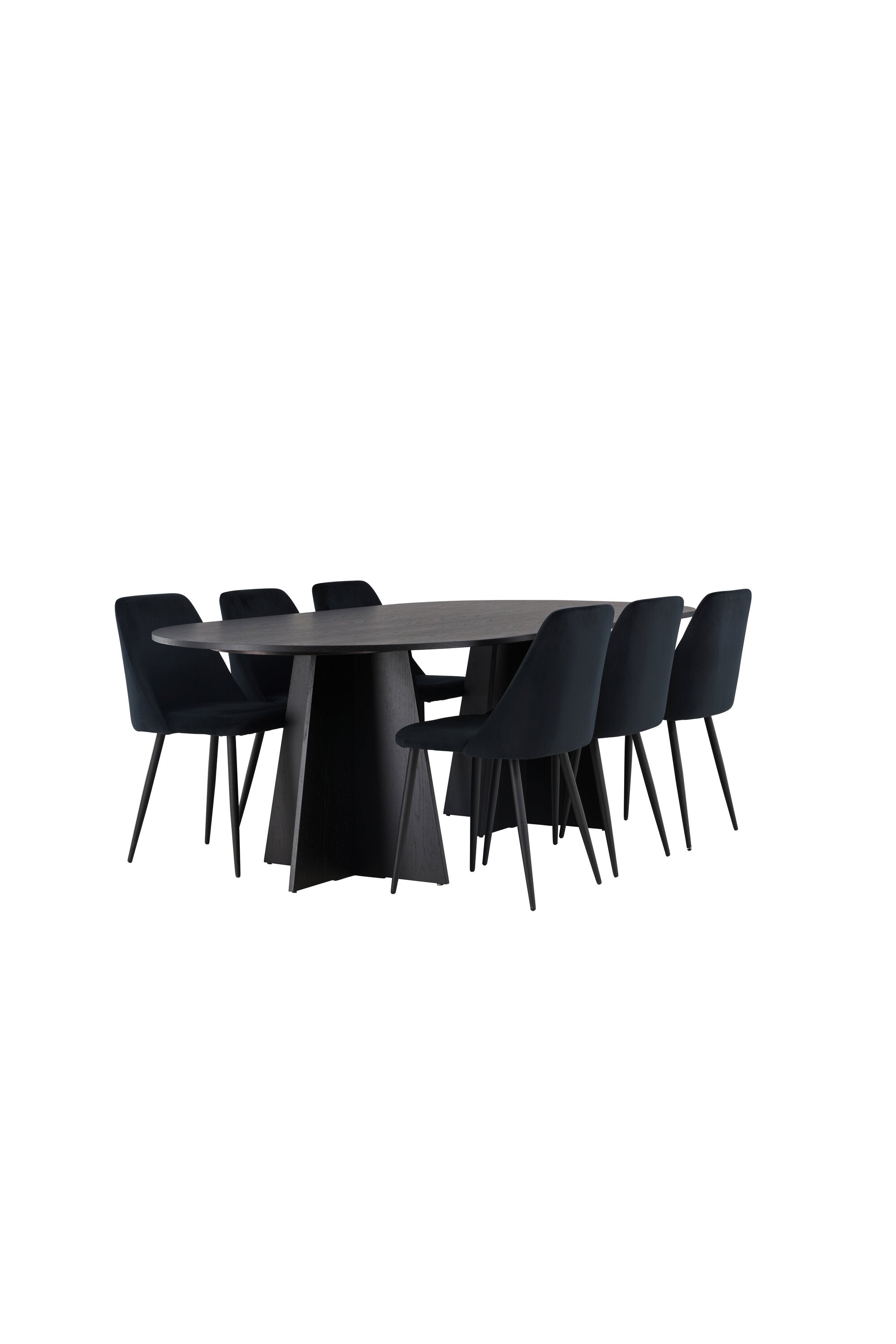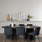 Bootcut oválný jídelní stůl - černá / černá Fanéer + noční jídelní židle - černá / černá sametová _6