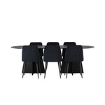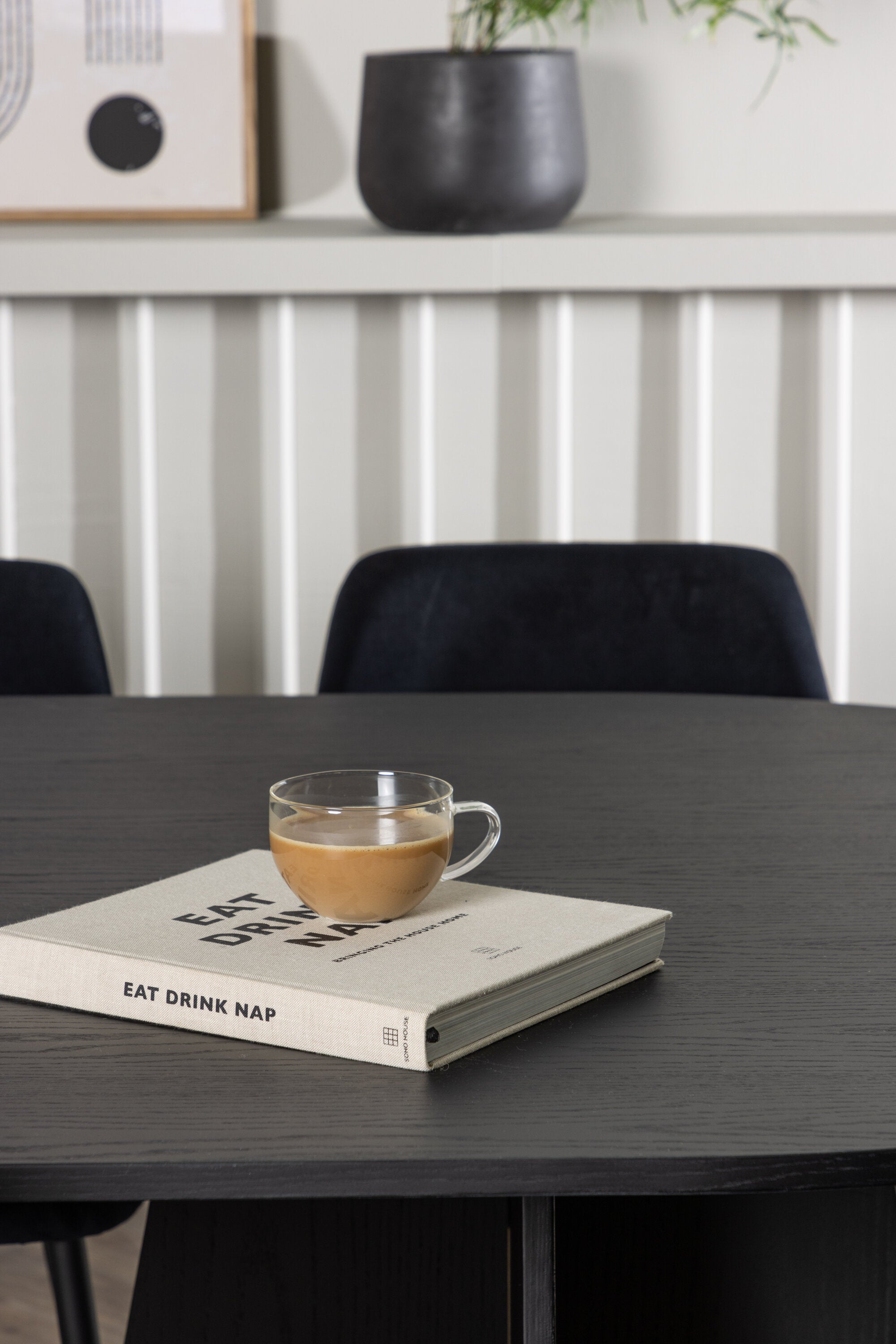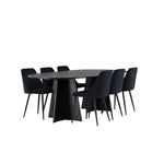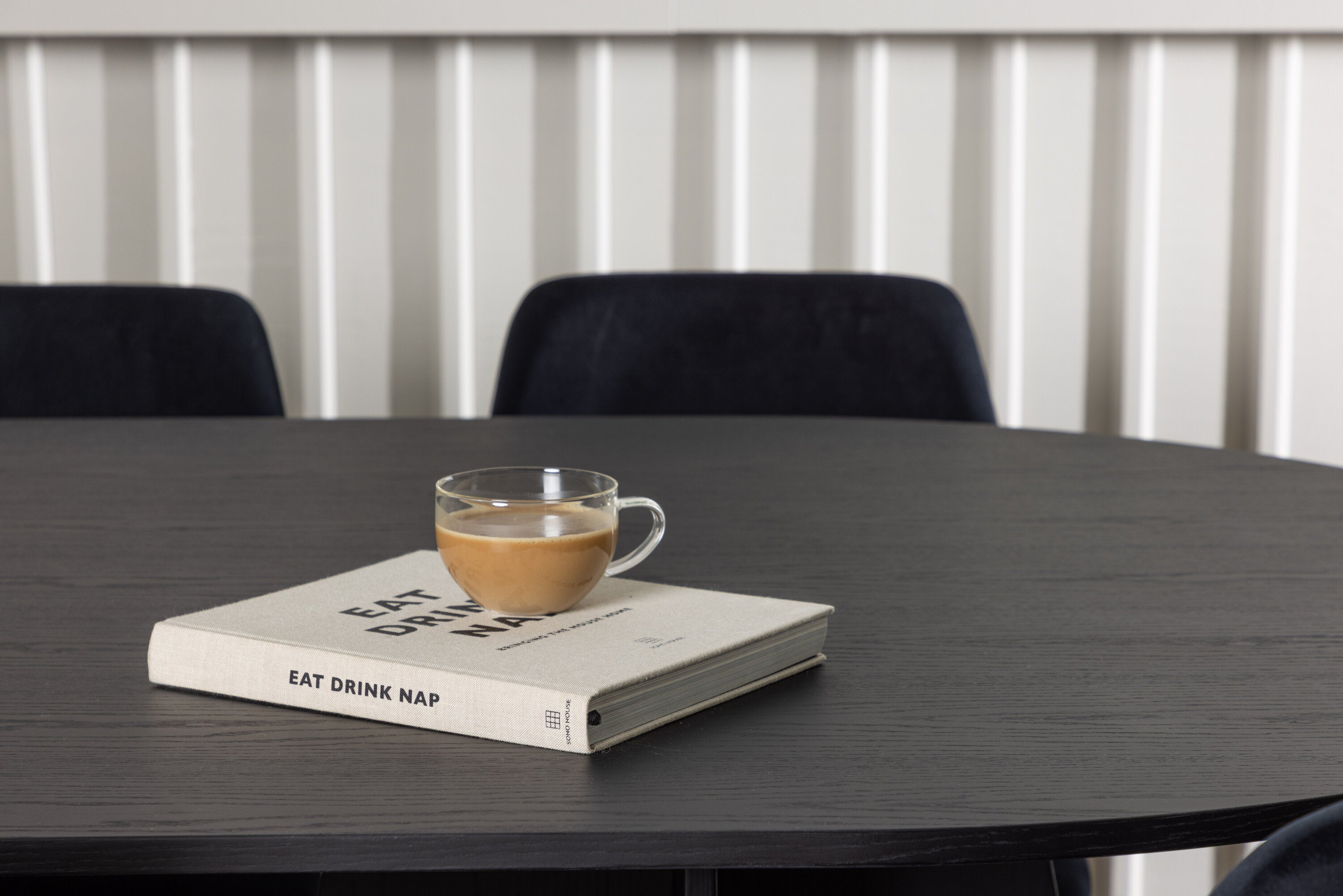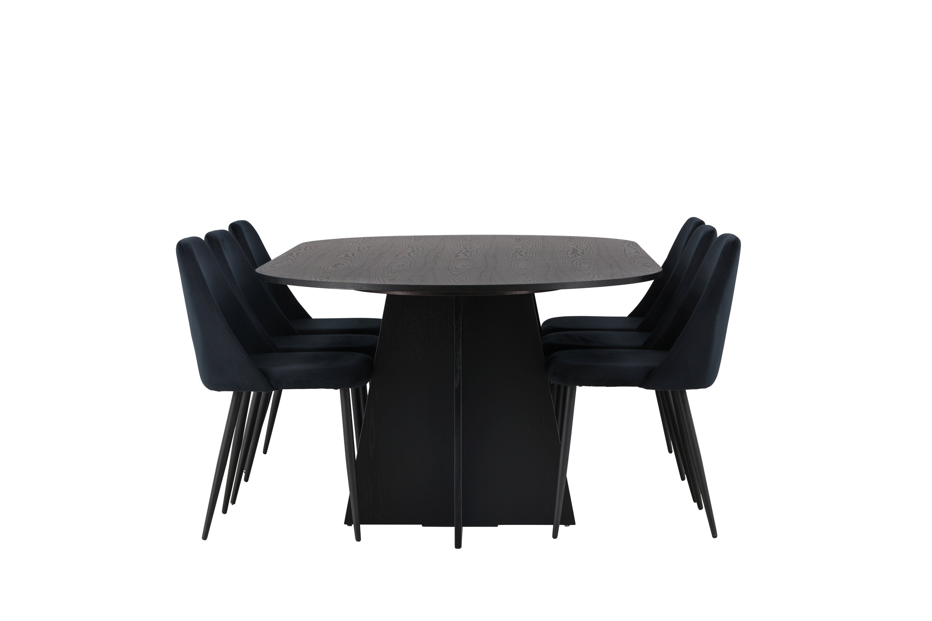 Bootcut oválný jídelní stůl - černá / černá Fanéer + noční jídelní židle - černá / černá sametová _6