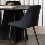 Zde jsou v dokonalé kombinaci černé jídelní židle ze série Night. S celočalouněnými sedadly v sametově černé látce nabízejí jídelní židle Night pohodlí, ve kterém budete rádi setrvávat při dlouhých a lahodných jídlech. Odpovídající černé nohy židle poskytují elegantní a soudržnou estetiku celému ohnisku. Každá židle navíc vytváří luxusní třpyt v místnosti a přispívá k příjemné atmosféře pro vaše hosty.