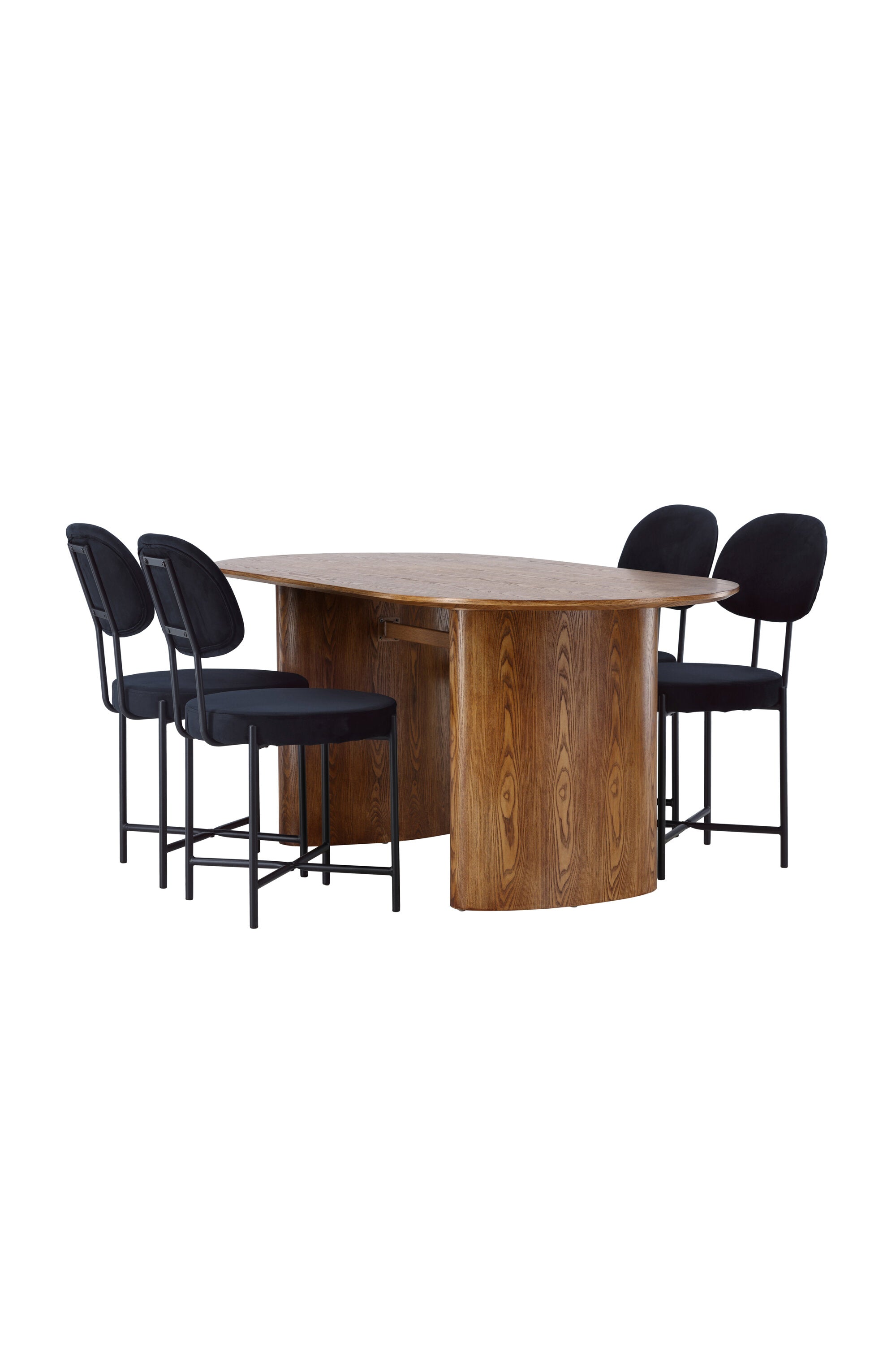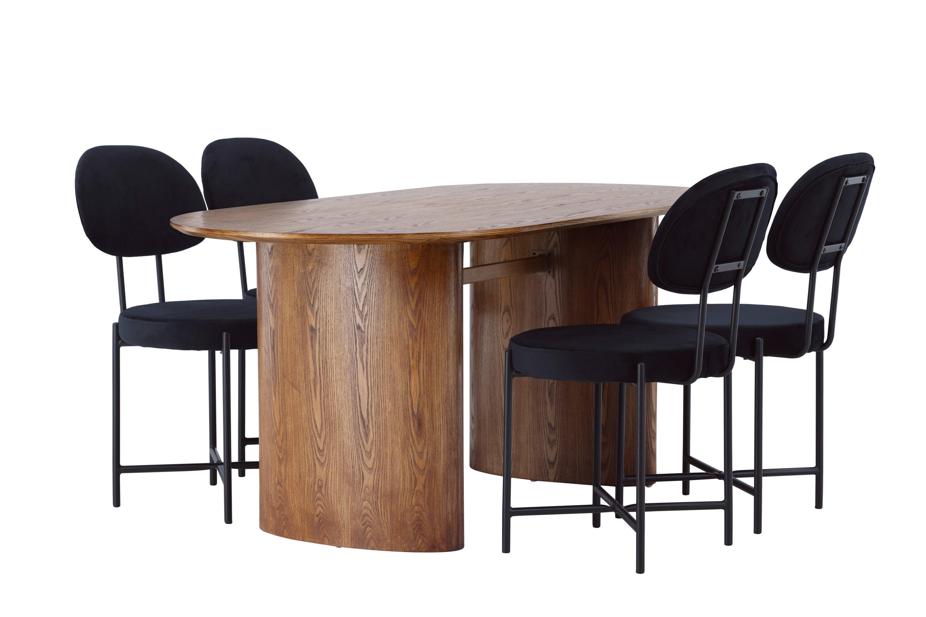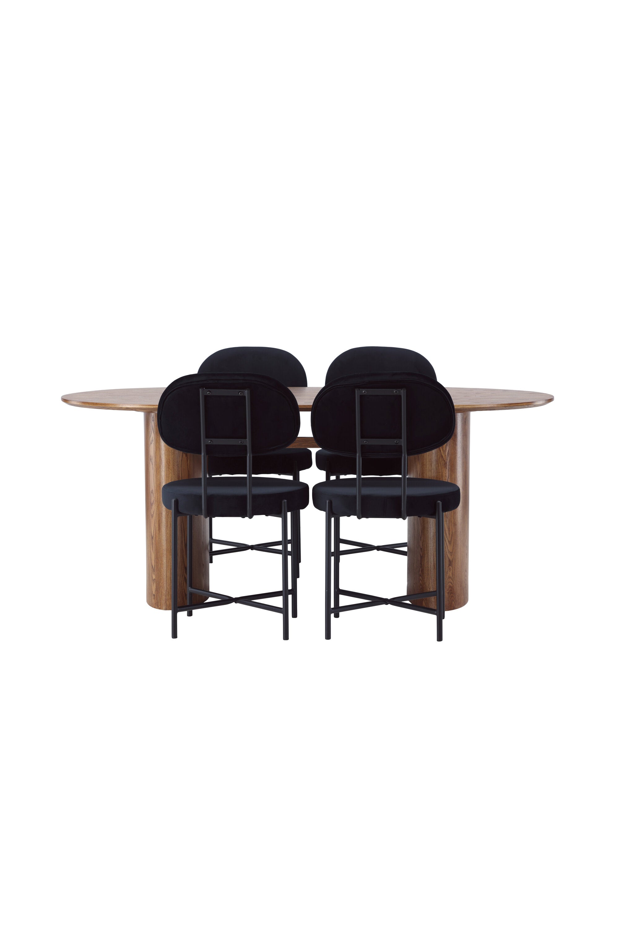 Isolde Jídelní stůl 140*75 - Nature / Nature MDF + Jídelní židle Stella - Black / Black Velvet _4