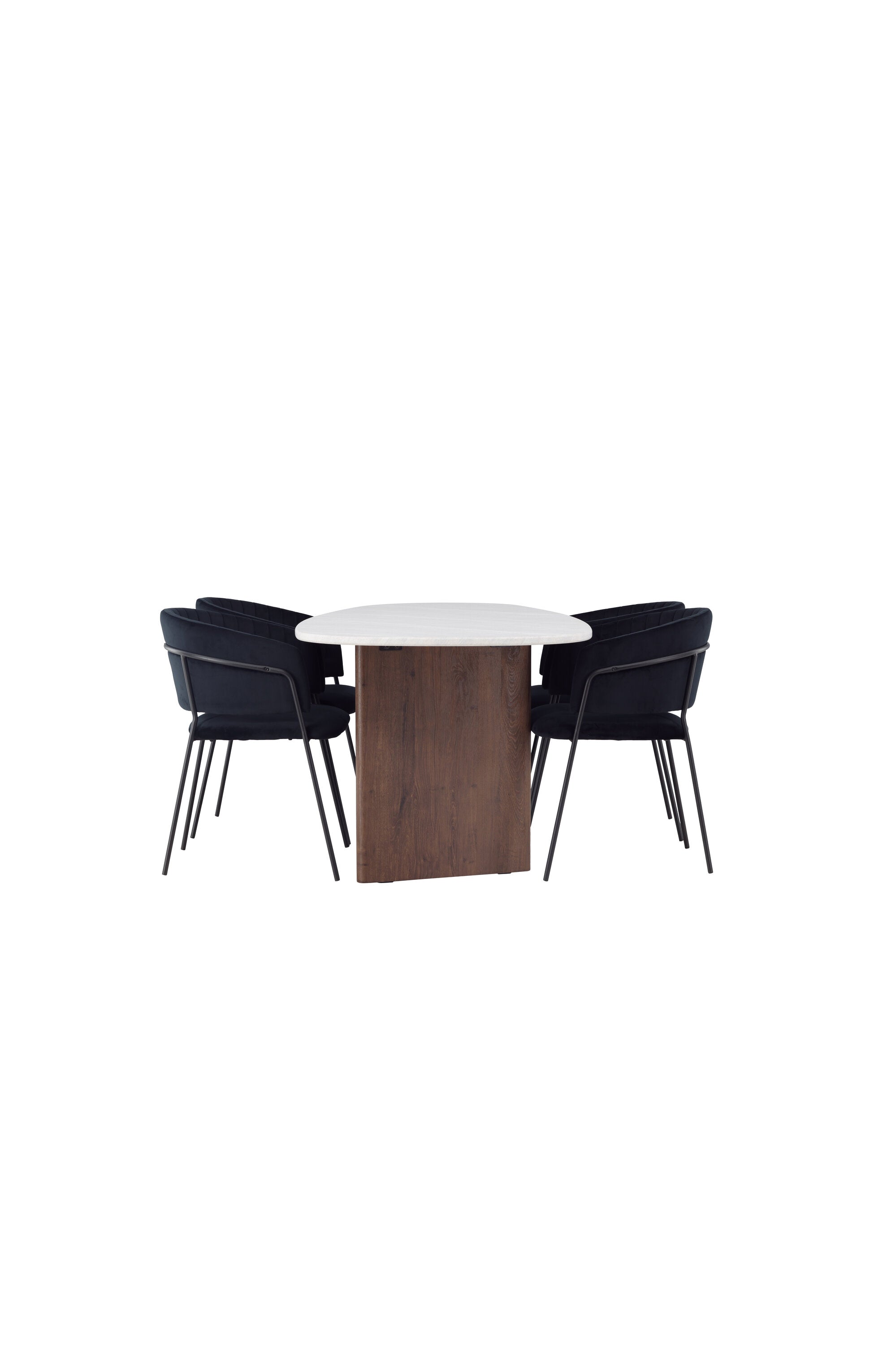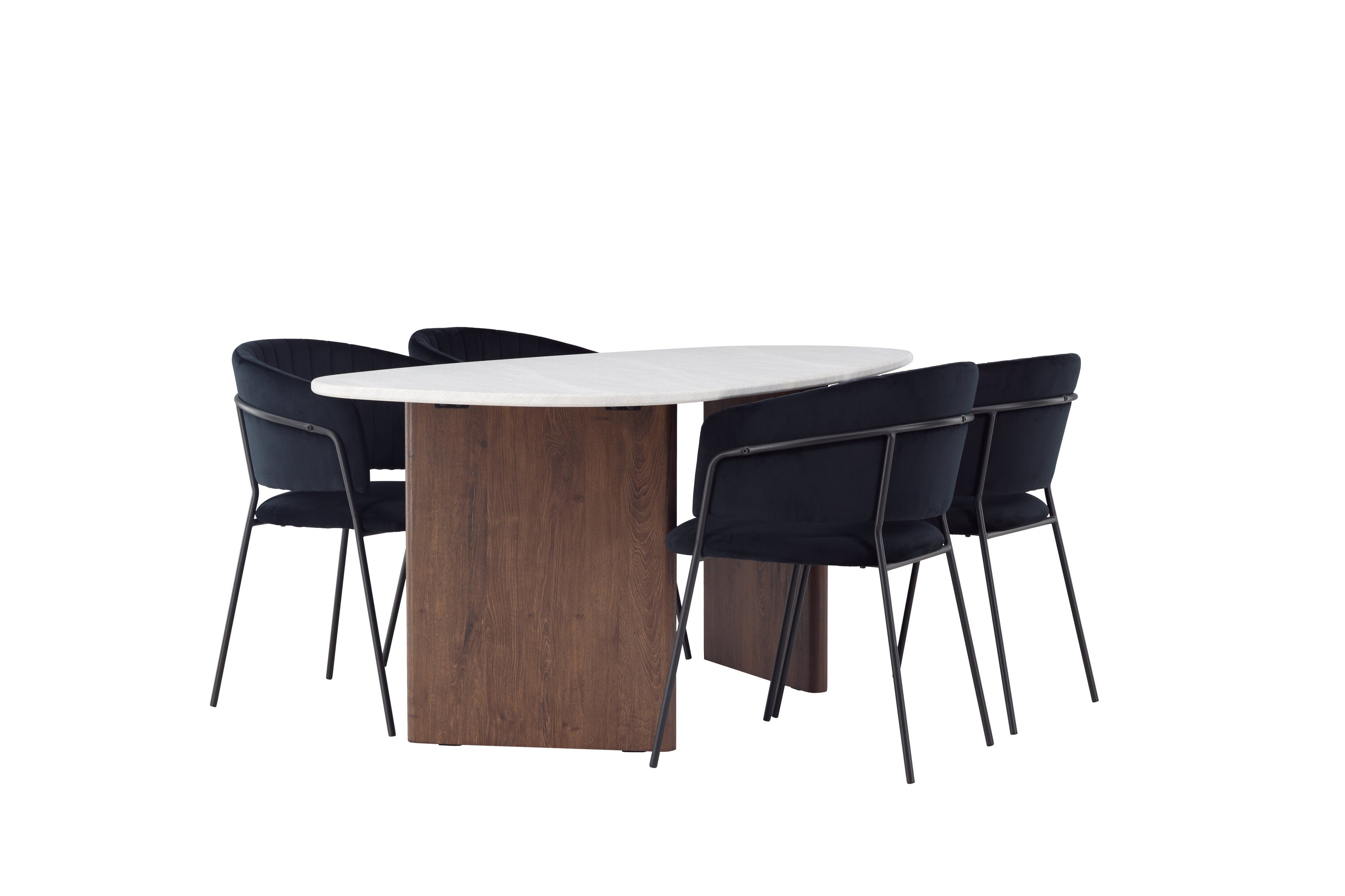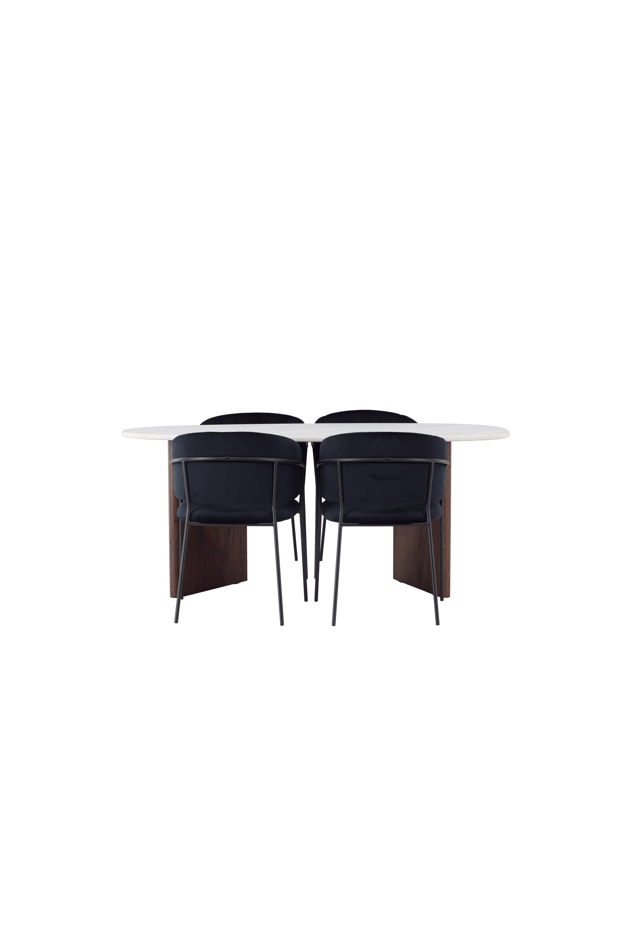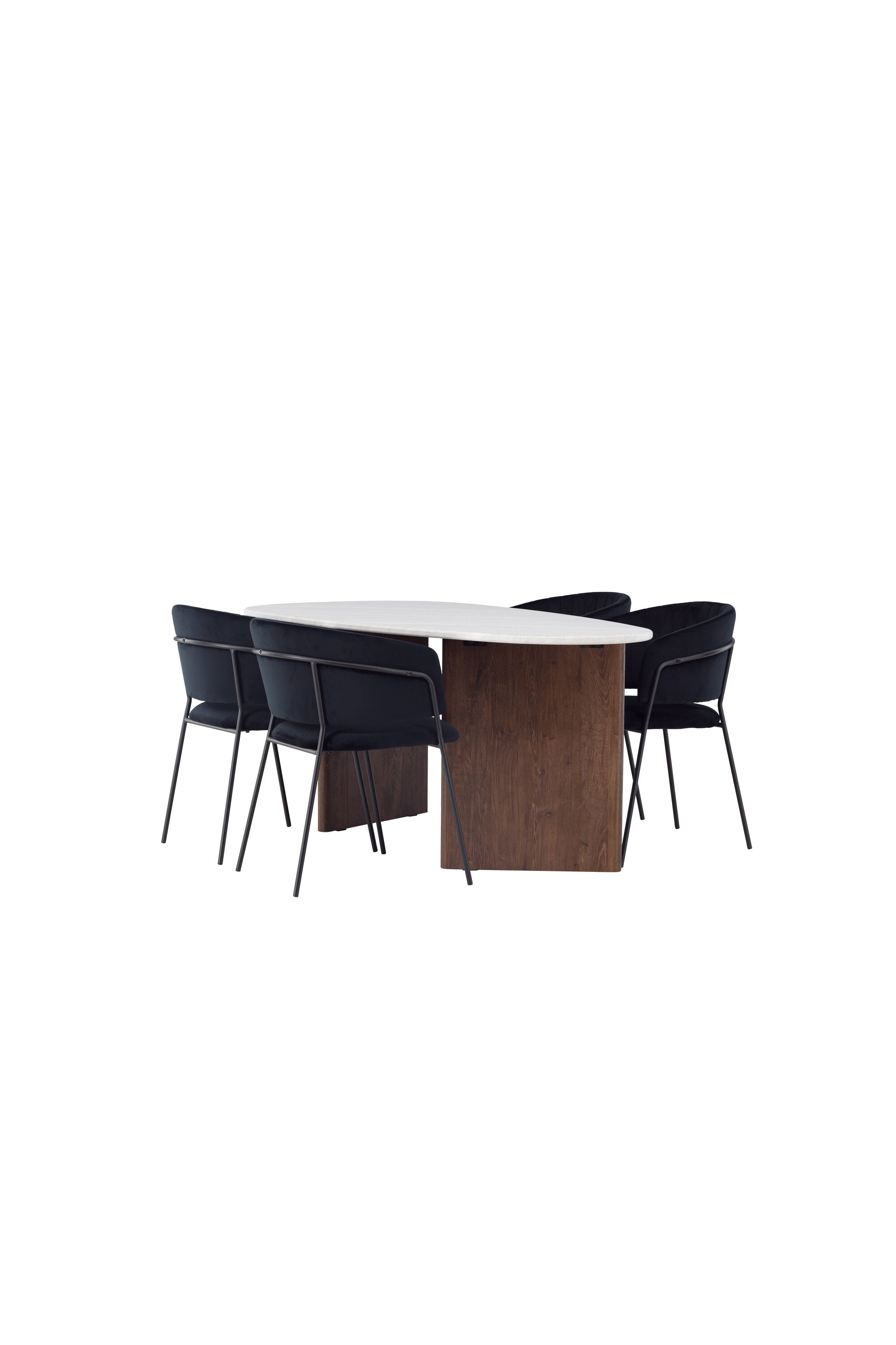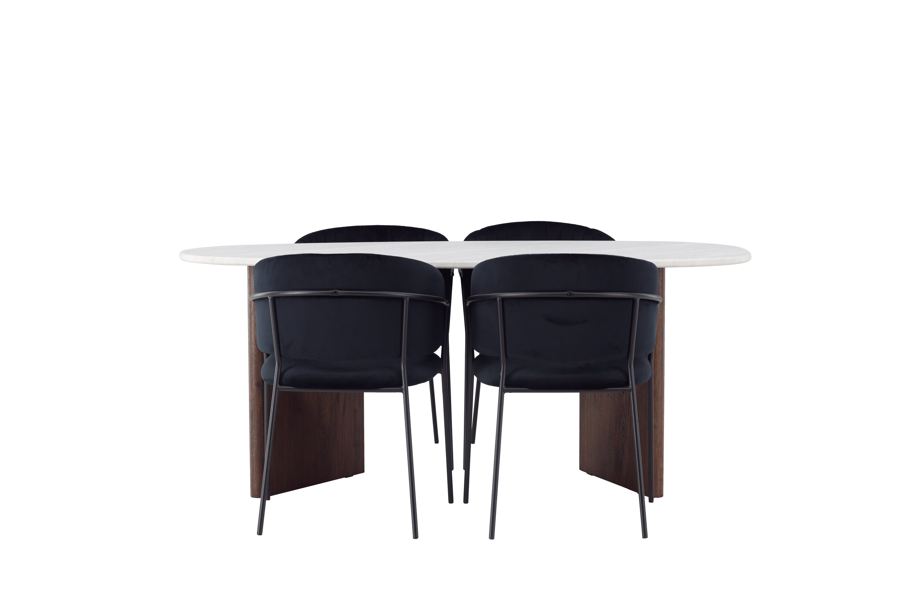 Jídelní stůl Grönvik 180*75 - Mocca / Offwhite Concretelook MDF + Jídelní židle Selma - Černá / Black Velvet _4