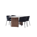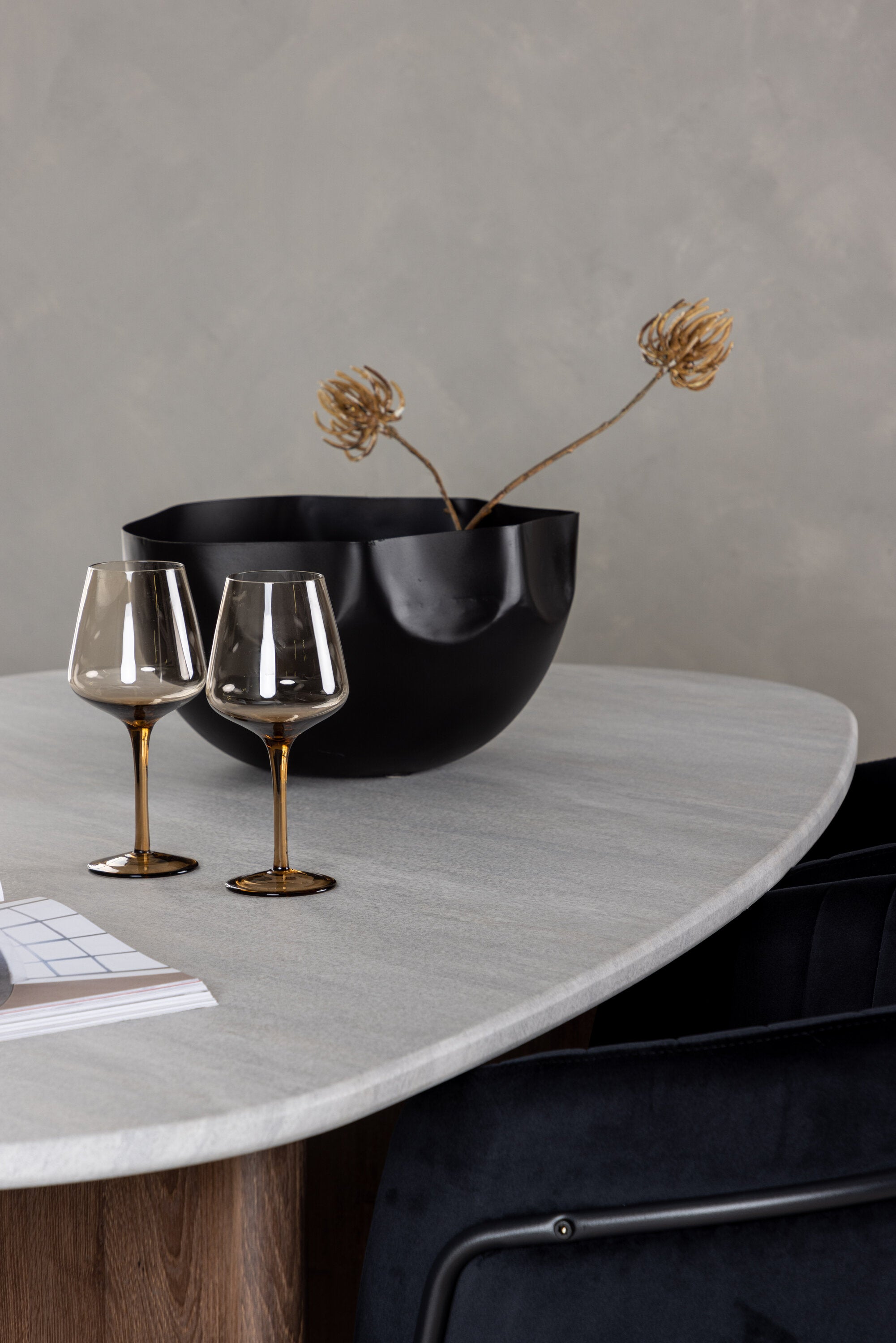 Dovolte nám představit kouzelnou jídelní skupinu, která kombinuje styl s pohodlím tím nejlepším možným způsobem! Náš oválný jídelní stůl Grönvik má nepravidelnou desku ze světle šedé MDF s mramorovým vzhledem. Konstrukce stolu se skládá ze dvou tenkých dřevěných panelů v moderním tmavě hnědém odstínu, který podporuje krásnou horní plochu. Tyto prvky vytvářejí dokonalou rovnováhu mezi elegancí a přirozeností a dodávají jídelní skupině jedinečný a exkluzivní nádech. Rozměry stolu: 180x75cm.