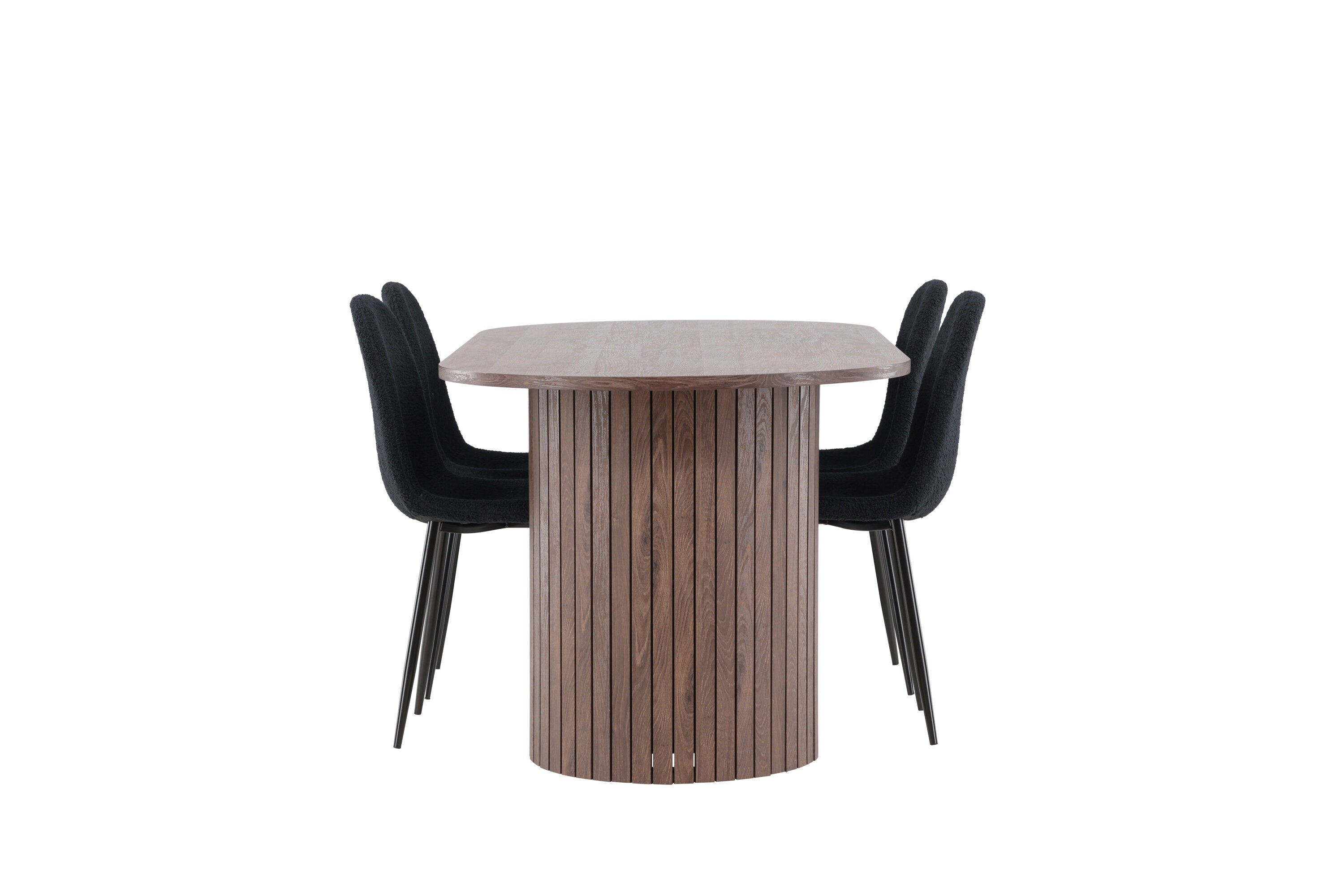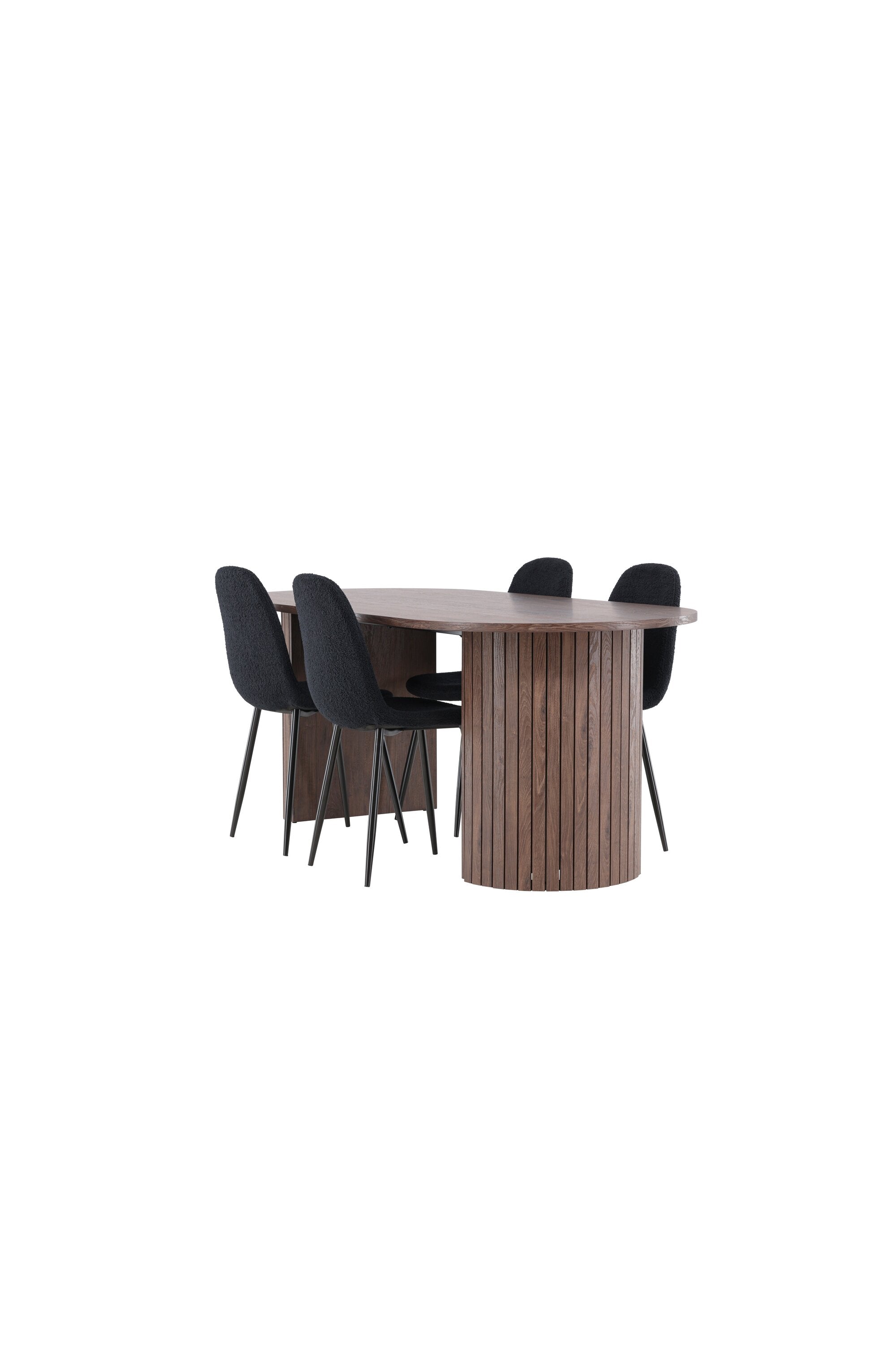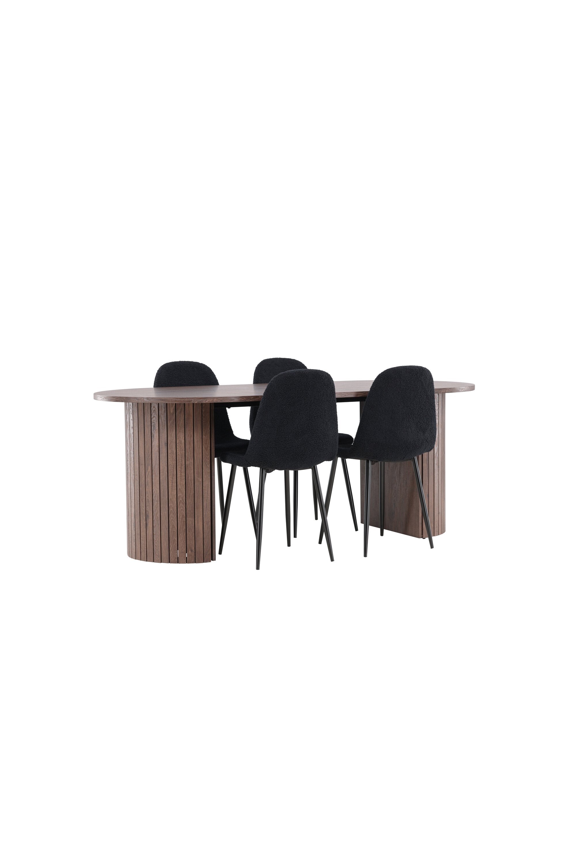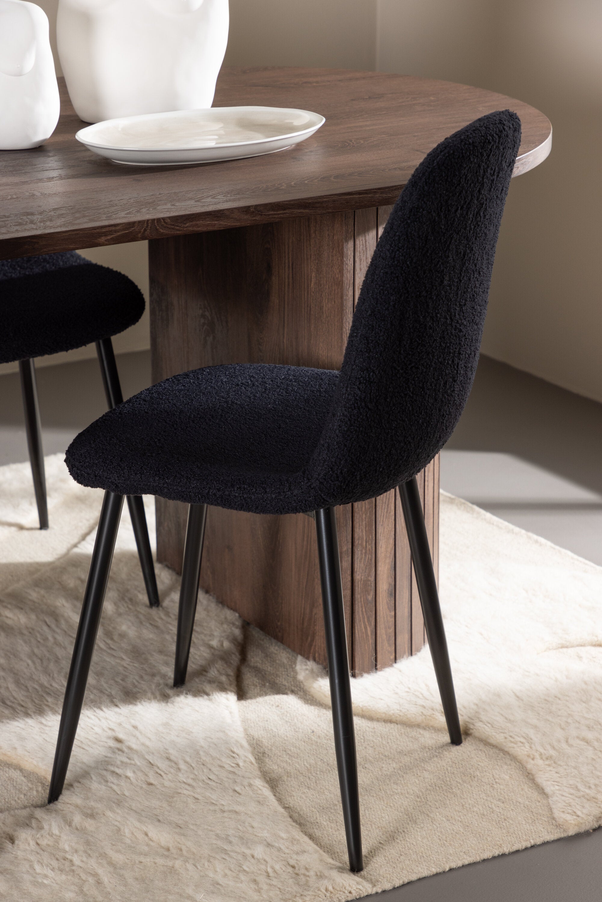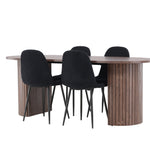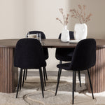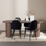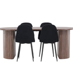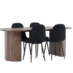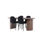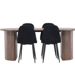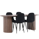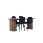 Objevte jídelní židli Polar a jídelní stůl Härön – dokonalou kombinaci moderní elegance a komunity pro vaše jídelní uspořádání. Židle má certifikaci FSC® (FSC®C177288), což znamená, že se skládá ze dřeva z odpovědného lesnictví, lesnictví, které bere ohled na lidi a životní prostředí. Jídelní židle Polar nabízí stylový a moderní nádech. Tmavě černá barva křesla a polyesterový plyšový materiál poskytují exkluzivní pocit a nabízejí pohodlné sezení na všech vašich večeřích a setkáních. Jeho moderní design a čisté linie poskytují nadčasovou estetiku, která doplňuje všechny styly interiéru. Nohy jídelní židle Polar jsou vyrobeny z černé oceli, poskytují pevnou a robustní konstrukci a zároveň přispívají k jejímu elegantnímu vzhledu. Díky své jednoduchosti a všestrannosti bude Polar vítaným doplňkem vašeho domova. Jídelní stůl Härön s velkorysými rozměry 200x90 cm je ideálním místem pro setkání rodiny a přátel při příjemné večeři a dlouhých rozhovorech. Stůl je dodáván v elegantní mokka barvě, která dodá vašemu pokoji zemitý a neutrální nádech. Deska stolu je vyrobena z MDF a podepřena pevnými ocelovými nohami, které zajišťují stabilitu při všech jídlech a setkáních. Vytvořte atmosféru přátelství a pospolitosti s jídelním stolem Härön, kde se každé jídlo stane výjimečným okamžikem, na který si budete pamatovat. Jídelní židle Polar a jídelní stůl Härön společně tvoří elegantní a funkční jídelní set, který bude srdcem vašeho domova, kde se utužují vztahy a sdílí radost.