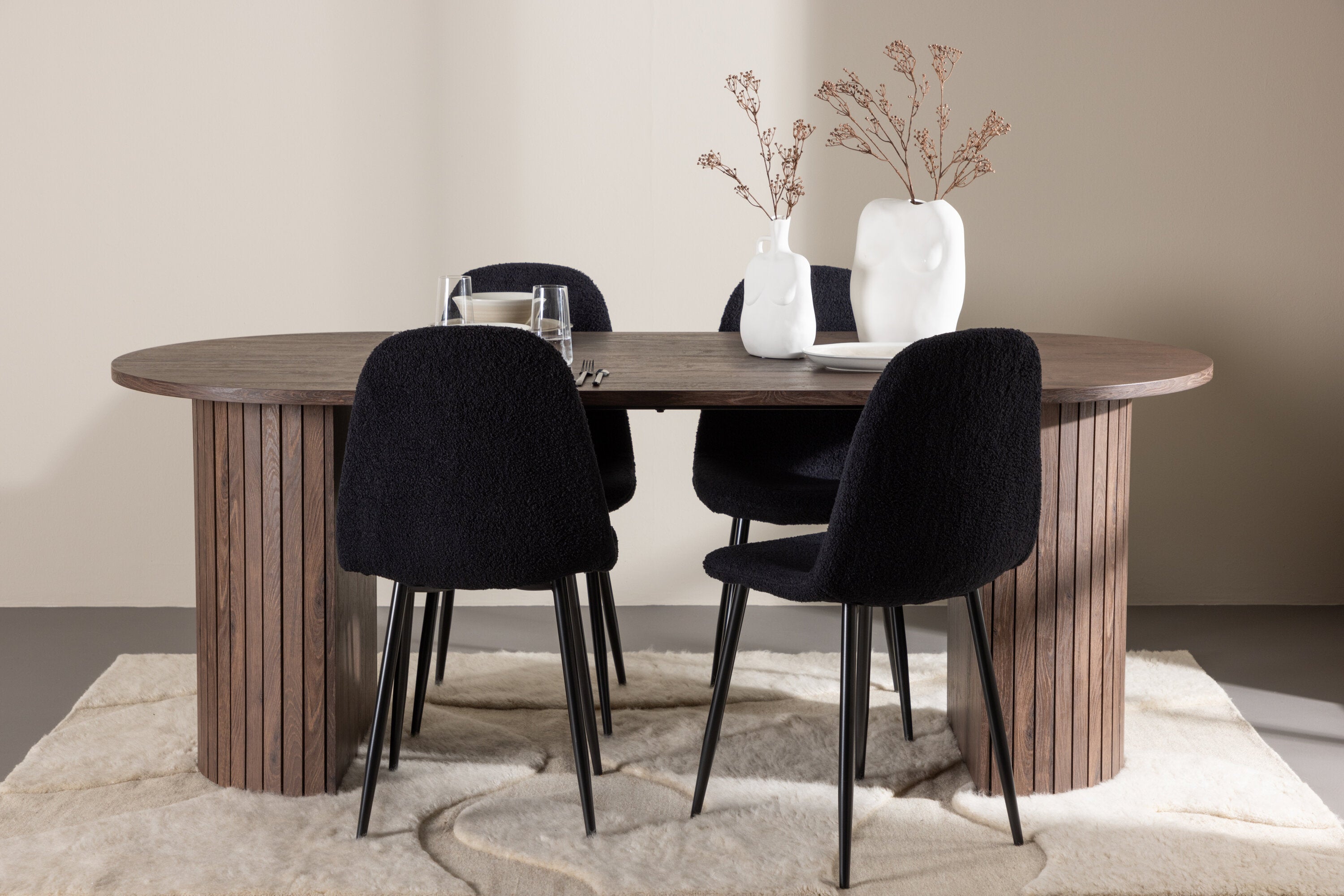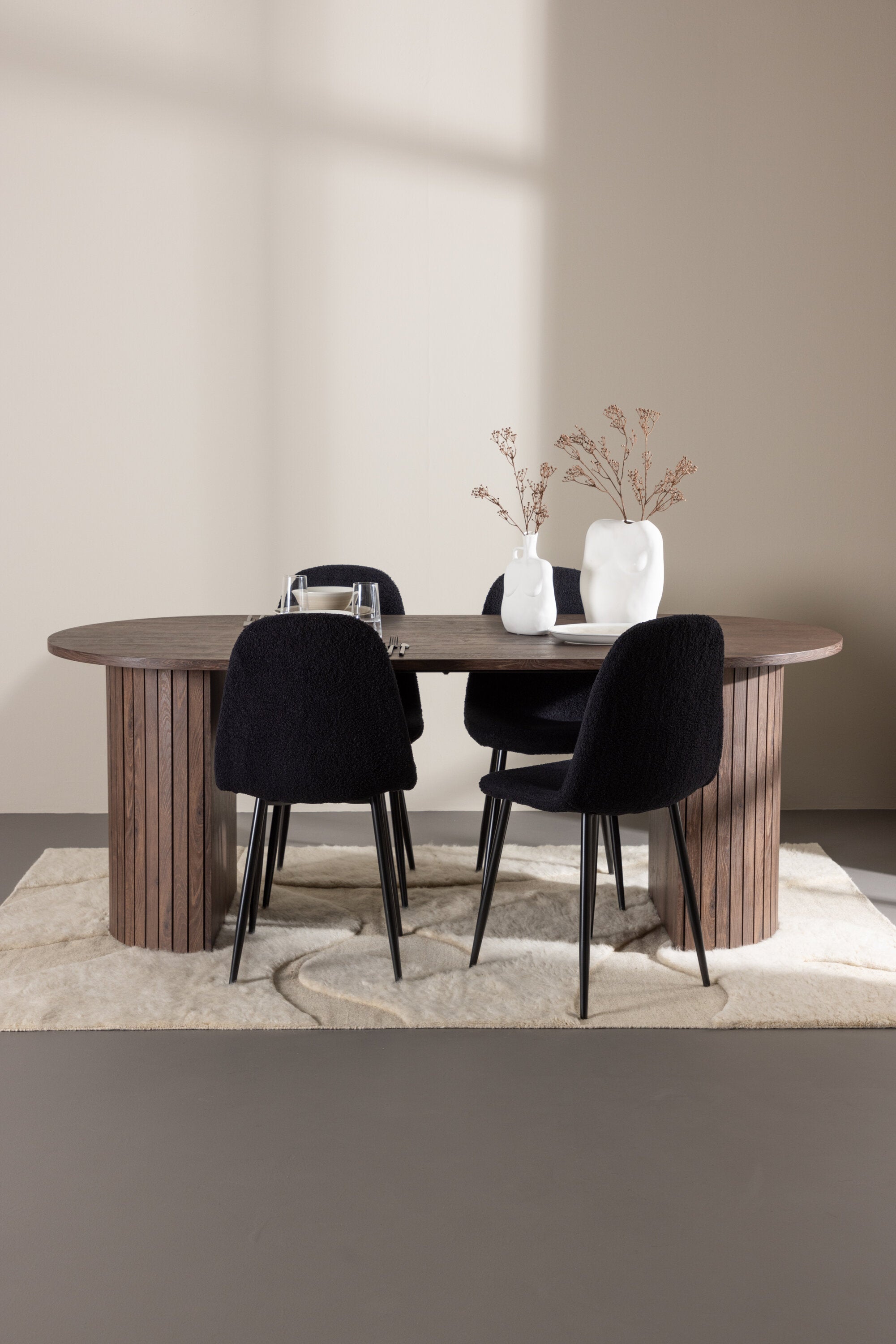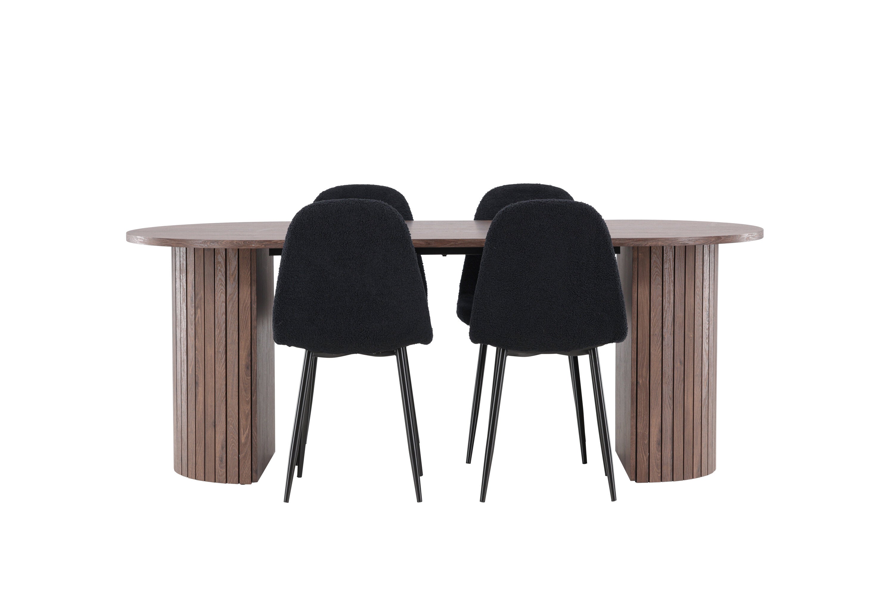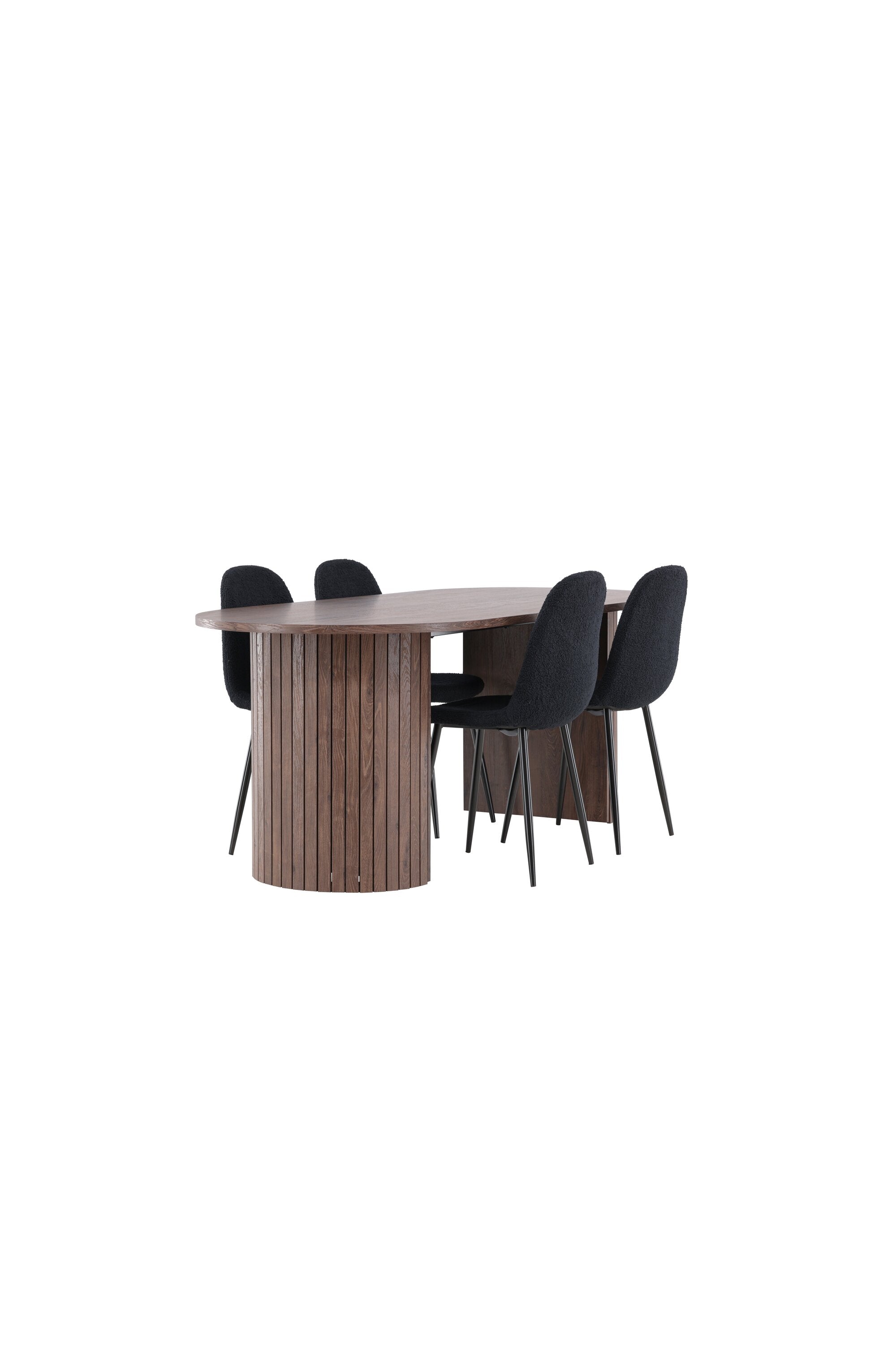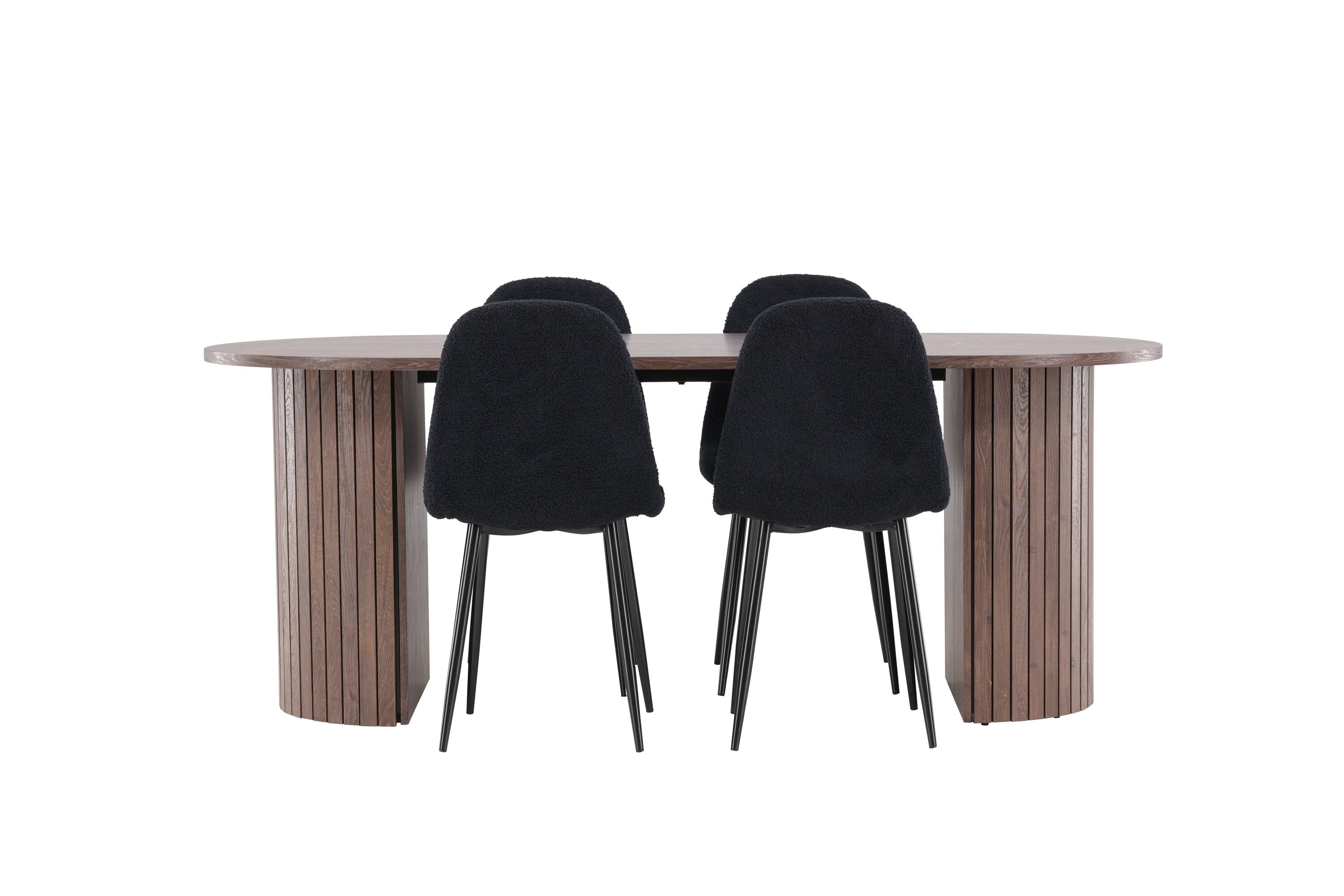 Objevte jídelní židli Polar a jídelní stůl Härön – dokonalou kombinaci moderní elegance a komunity pro vaše jídelní uspořádání. Židle má certifikaci FSC® (FSC®C177288), což znamená, že se skládá ze dřeva z odpovědného lesnictví, lesnictví, které bere ohled na lidi a životní prostředí. Jídelní židle Polar nabízí stylový a moderní nádech. Tmavě černá barva křesla a polyesterový plyšový materiál poskytují exkluzivní pocit a nabízejí pohodlné sezení na všech vašich večeřích a setkáních. Jeho moderní design a čisté linie poskytují nadčasovou estetiku, která doplňuje všechny styly interiéru. Nohy jídelní židle Polar jsou vyrobeny z černé oceli, poskytují pevnou a robustní konstrukci a zároveň přispívají k jejímu elegantnímu vzhledu. Díky své jednoduchosti a všestrannosti bude Polar vítaným doplňkem vašeho domova. Jídelní stůl Härön s velkorysými rozměry 200x90 cm je ideálním místem pro setkání rodiny a přátel při příjemné večeři a dlouhých rozhovorech. Stůl je dodáván v elegantní mokka barvě, která dodá vašemu pokoji zemitý a neutrální nádech. Deska stolu je vyrobena z MDF a podepřena pevnými ocelovými nohami, které zajišťují stabilitu při všech jídlech a setkáních. Vytvořte atmosféru přátelství a pospolitosti s jídelním stolem Härön, kde se každé jídlo stane výjimečným okamžikem, na který si budete pamatovat. Jídelní židle Polar a jídelní stůl Härön společně tvoří elegantní a funkční jídelní set, který bude srdcem vašeho domova, kde se utužují vztahy a sdílí radost.