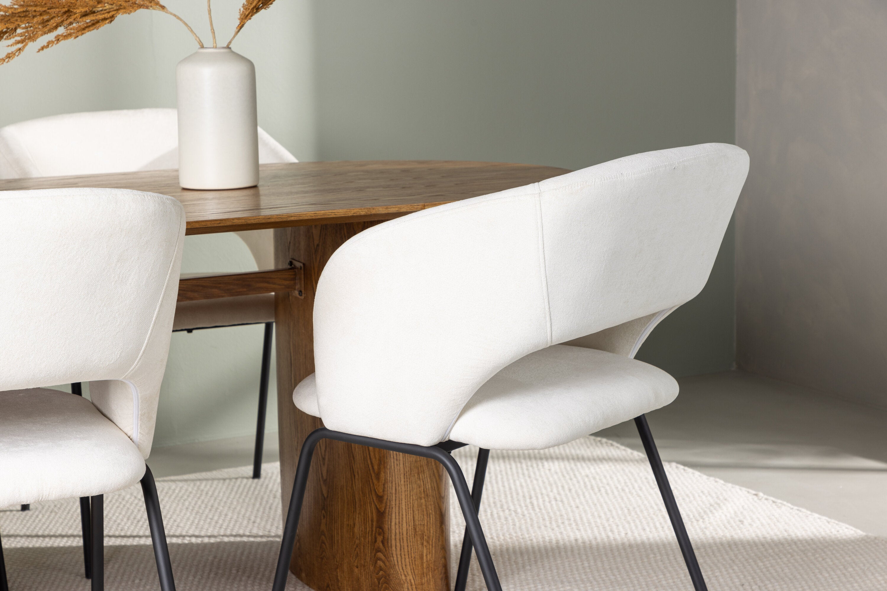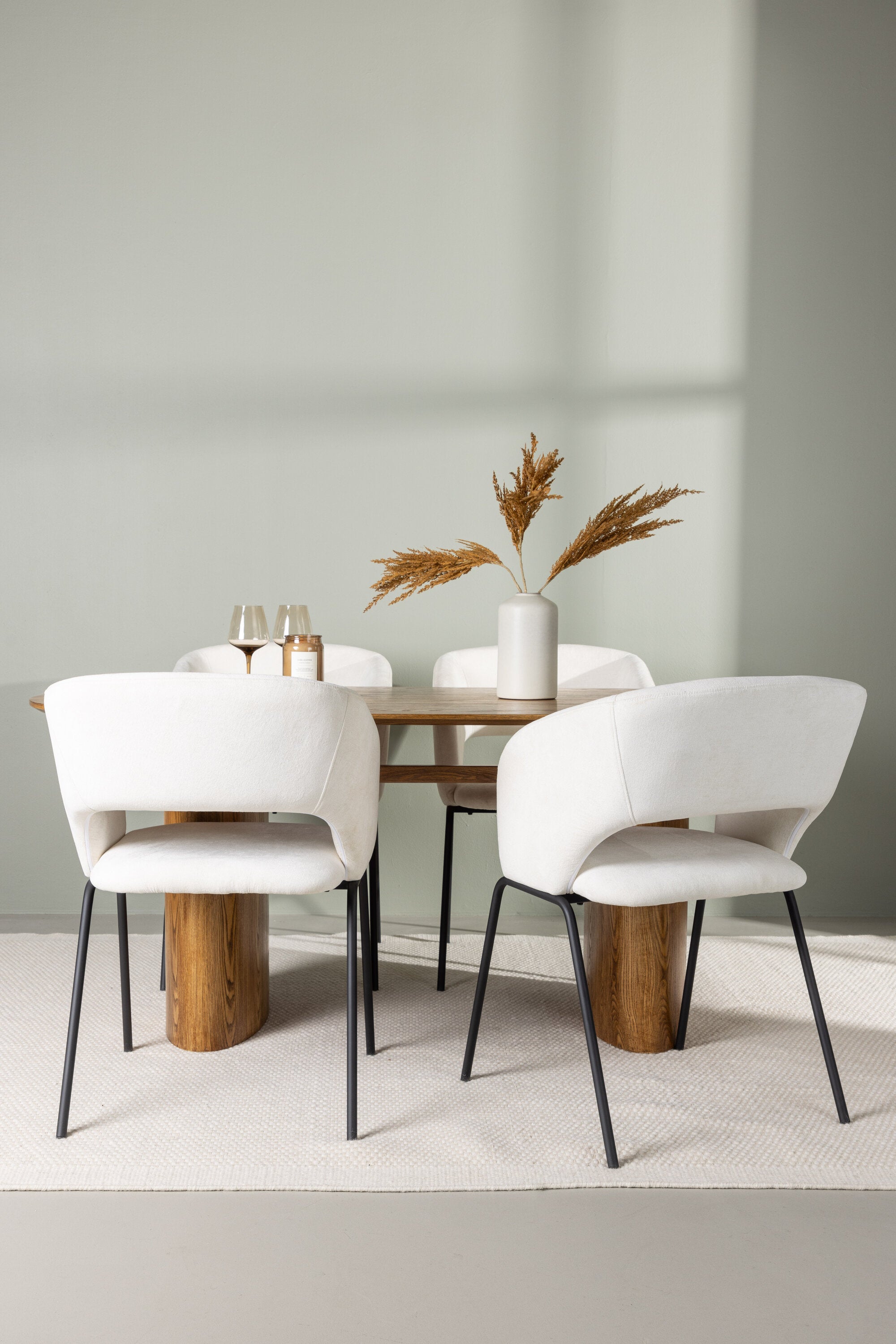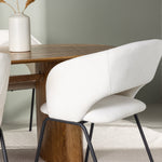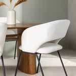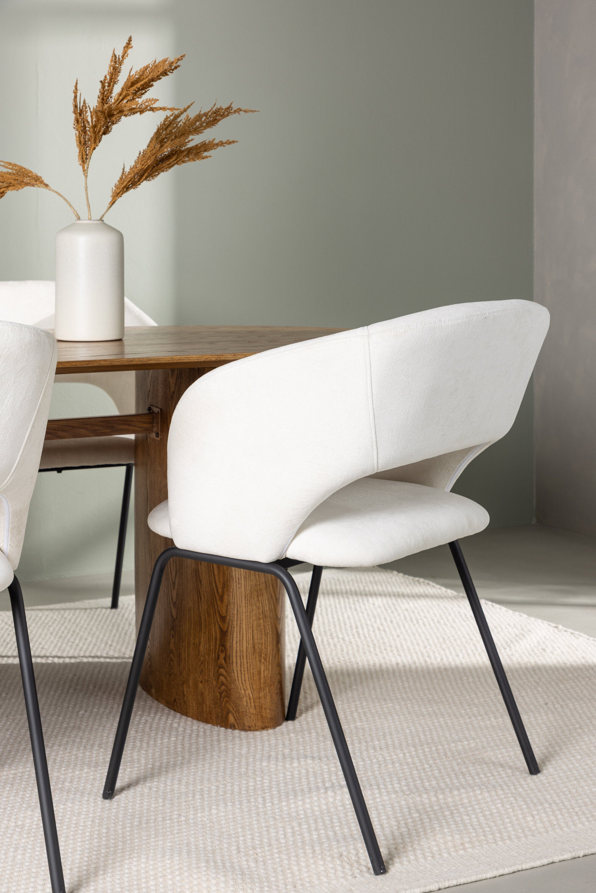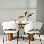 Společně s našimi moderními jídelními židlemi ze série Day se jídelní set stává kompletním. Tyto židle jsou výsledkem promyšleného designu s měkkými tvary a minimalistickou strukturou, která vytváří nadčasový styl. Sedák je celočalouněný bílou lněnou látkou a opěradlo je otevřené, takže působí vzdušně a lehce. Štíhlé černé ocelové nohy židle nabízejí elegantní kontrast k bílému sedáku.