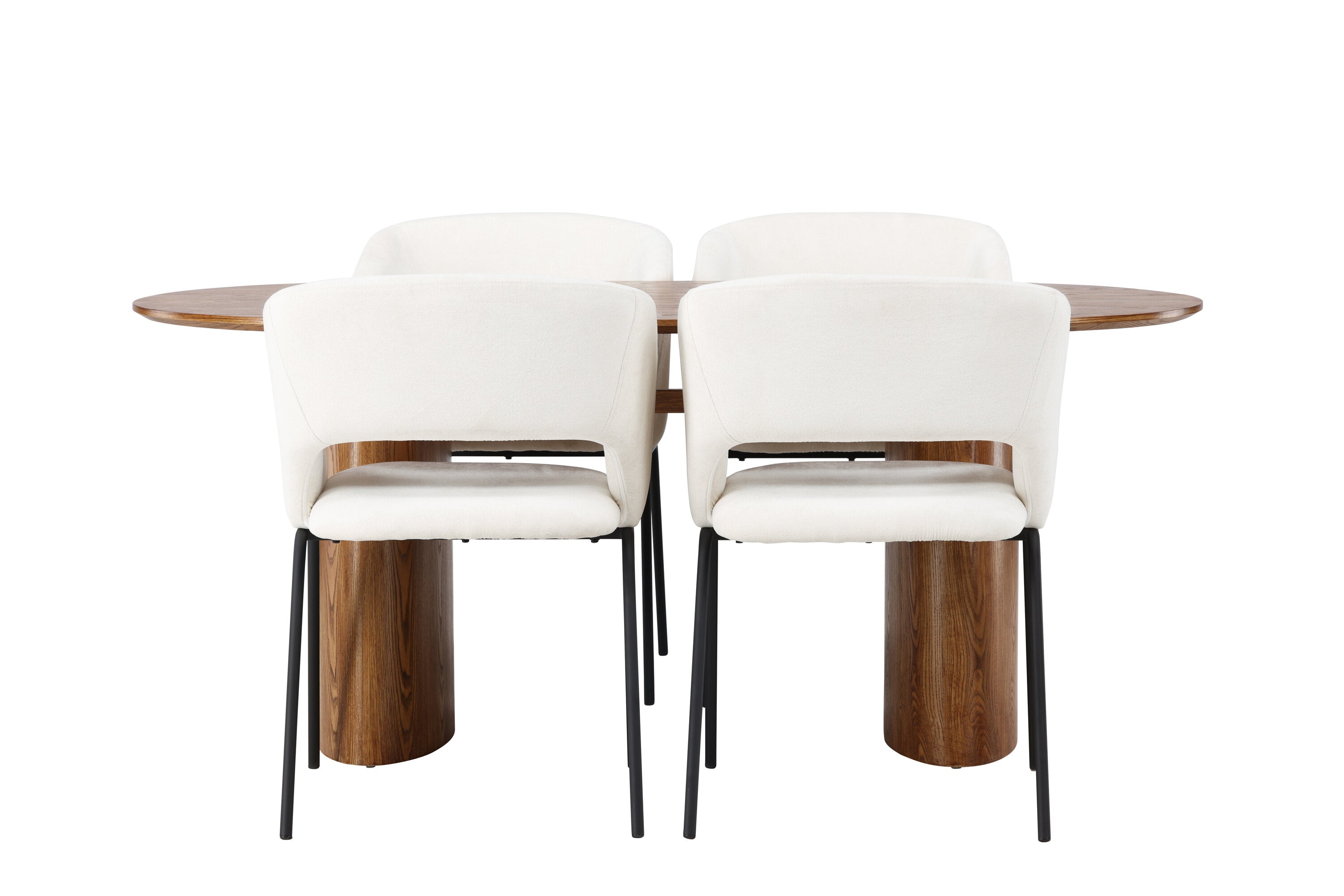 Jídelní stůl Isolda 140*75 - přírodní / přírodní MDF + denní jídelní židle - matná černá / bílé prádlo _4